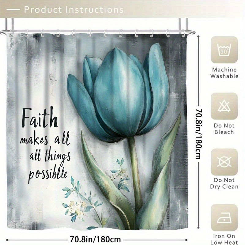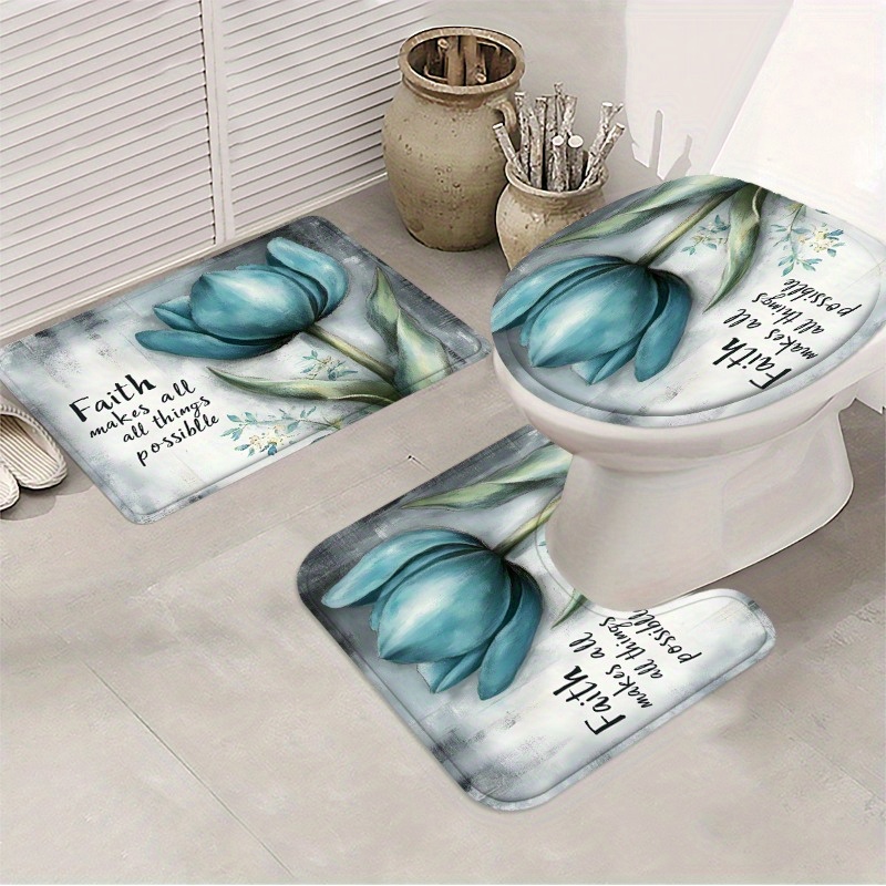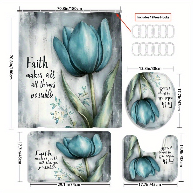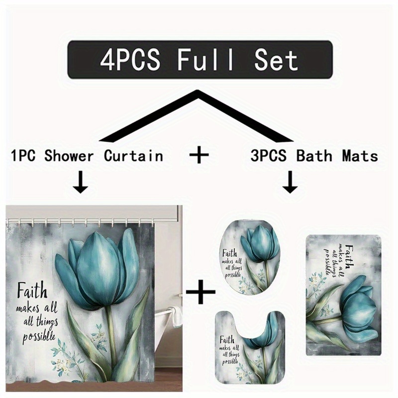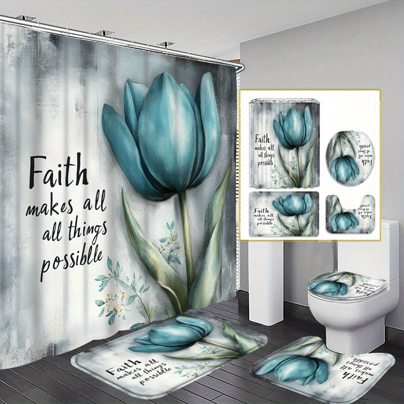 1/3/4pcs Faith Shower Curtain Set with Bath Rug, U-Pad & Lid Cover - High Qualit