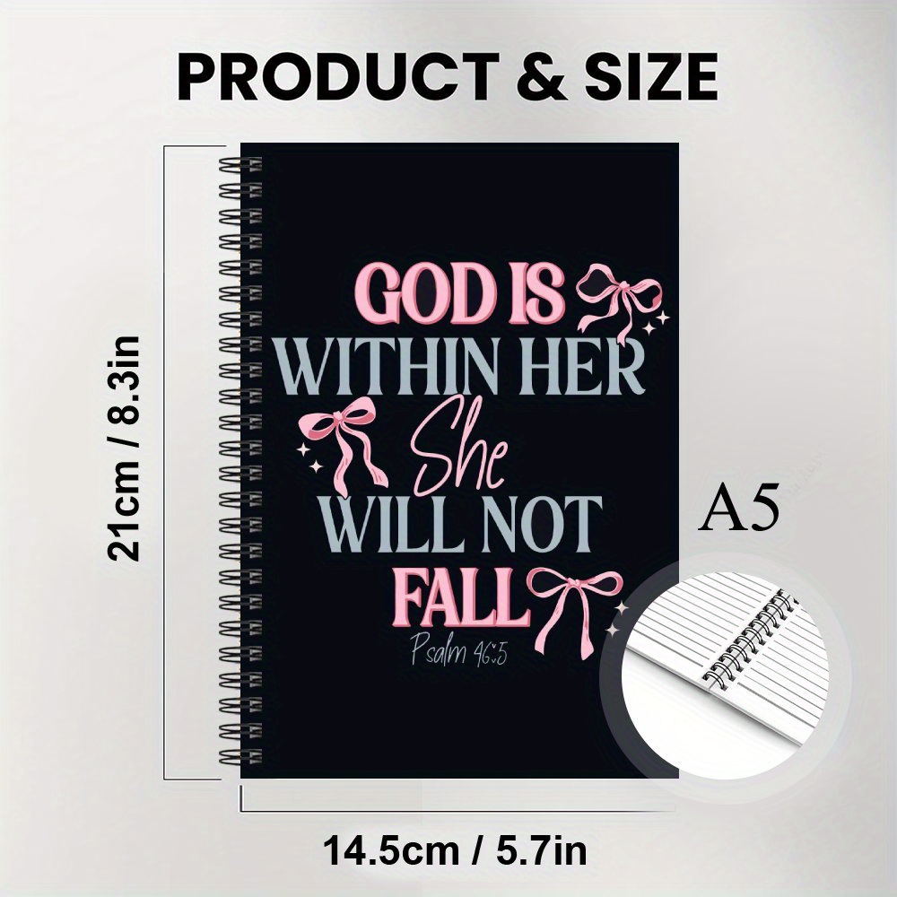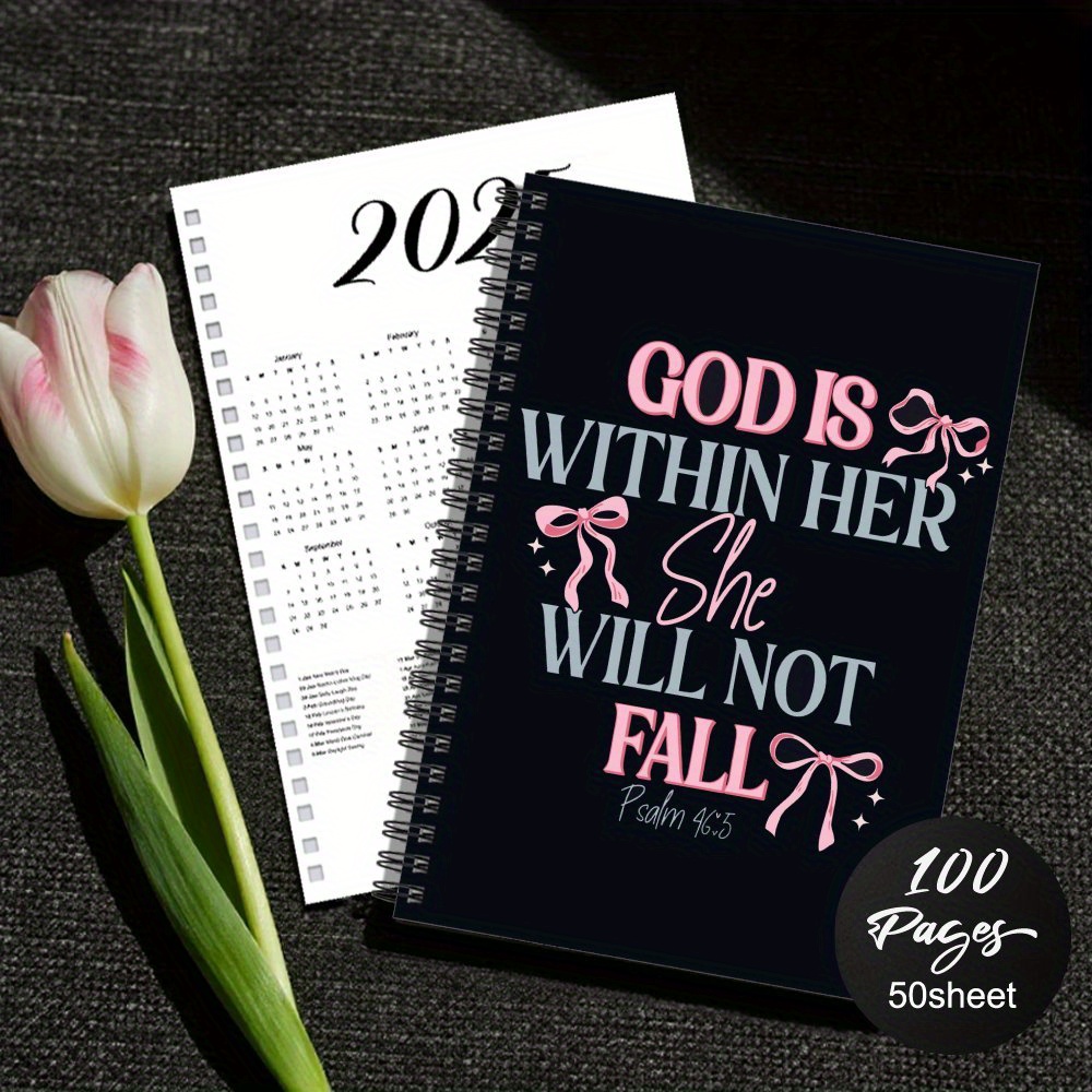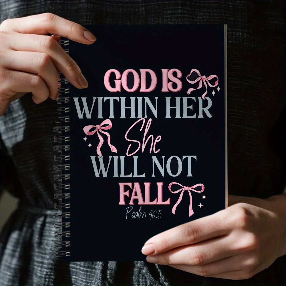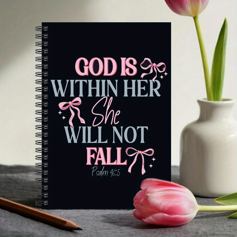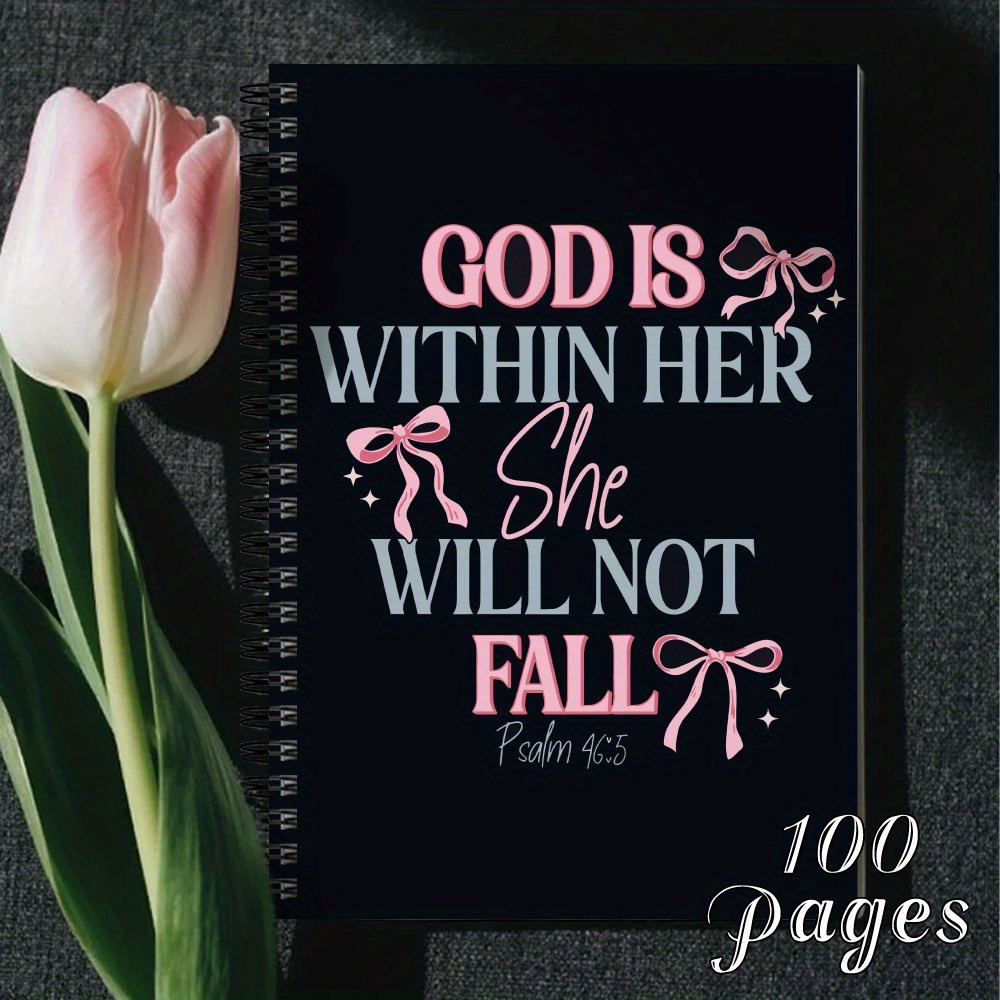 1 Christian Bible Verse Spiral Notebook, Pink Bow and Design - Inspirational Jou
