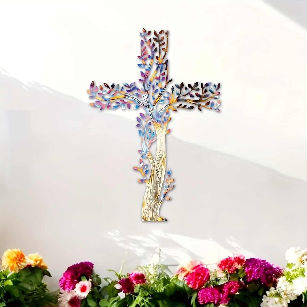 1 Colorful Metal Cross Wall Decor | Iron Art Deco Wall Hanging, Ideal for Home a