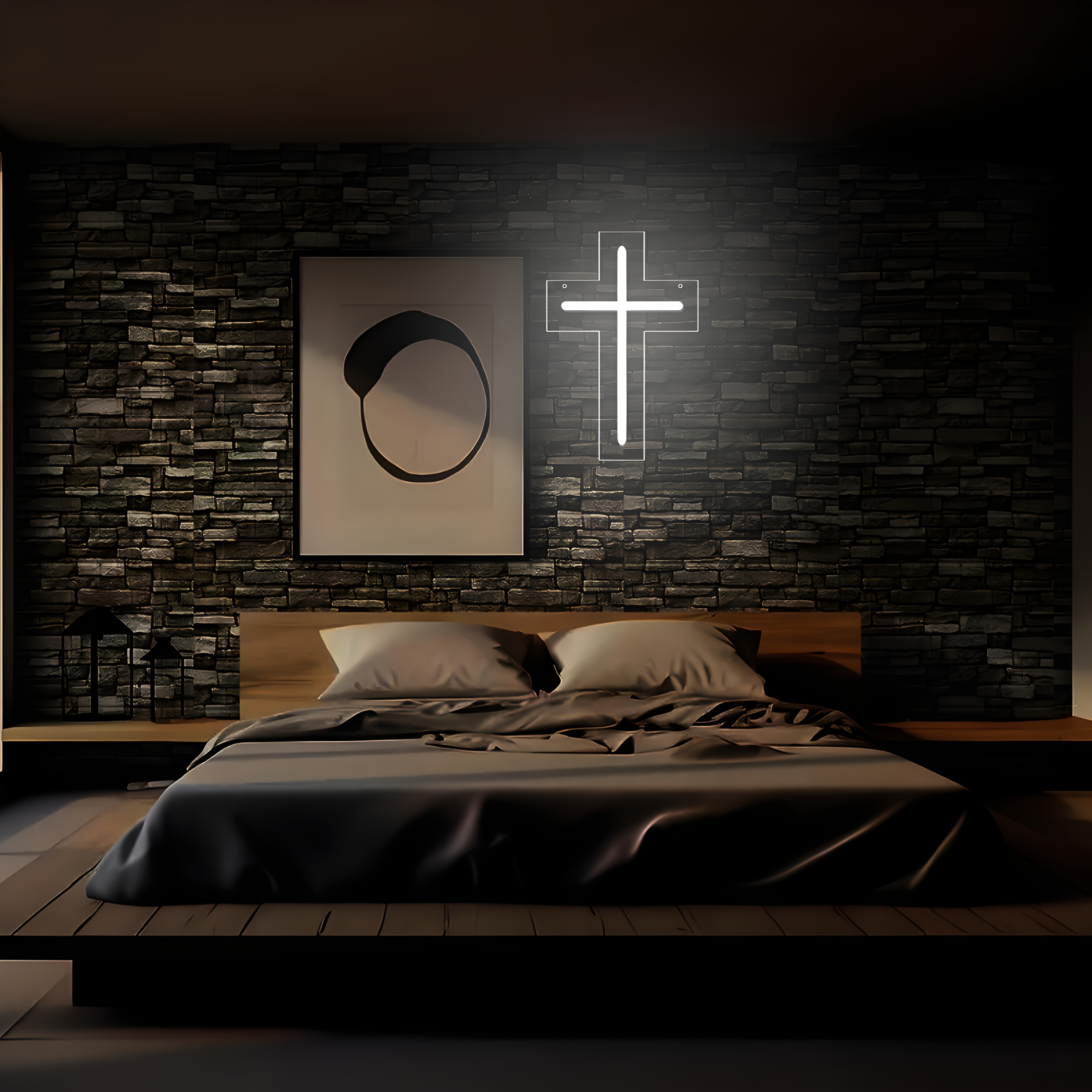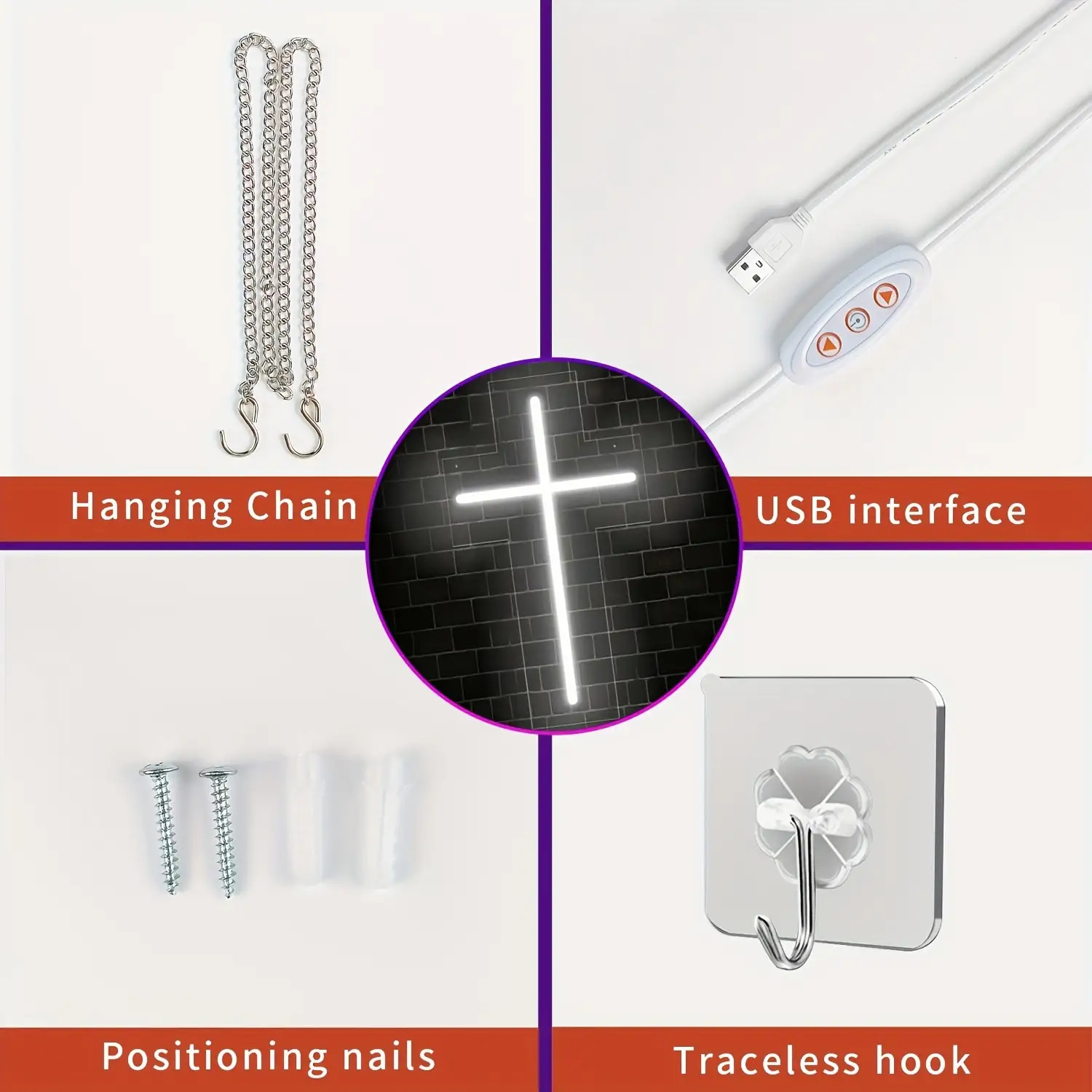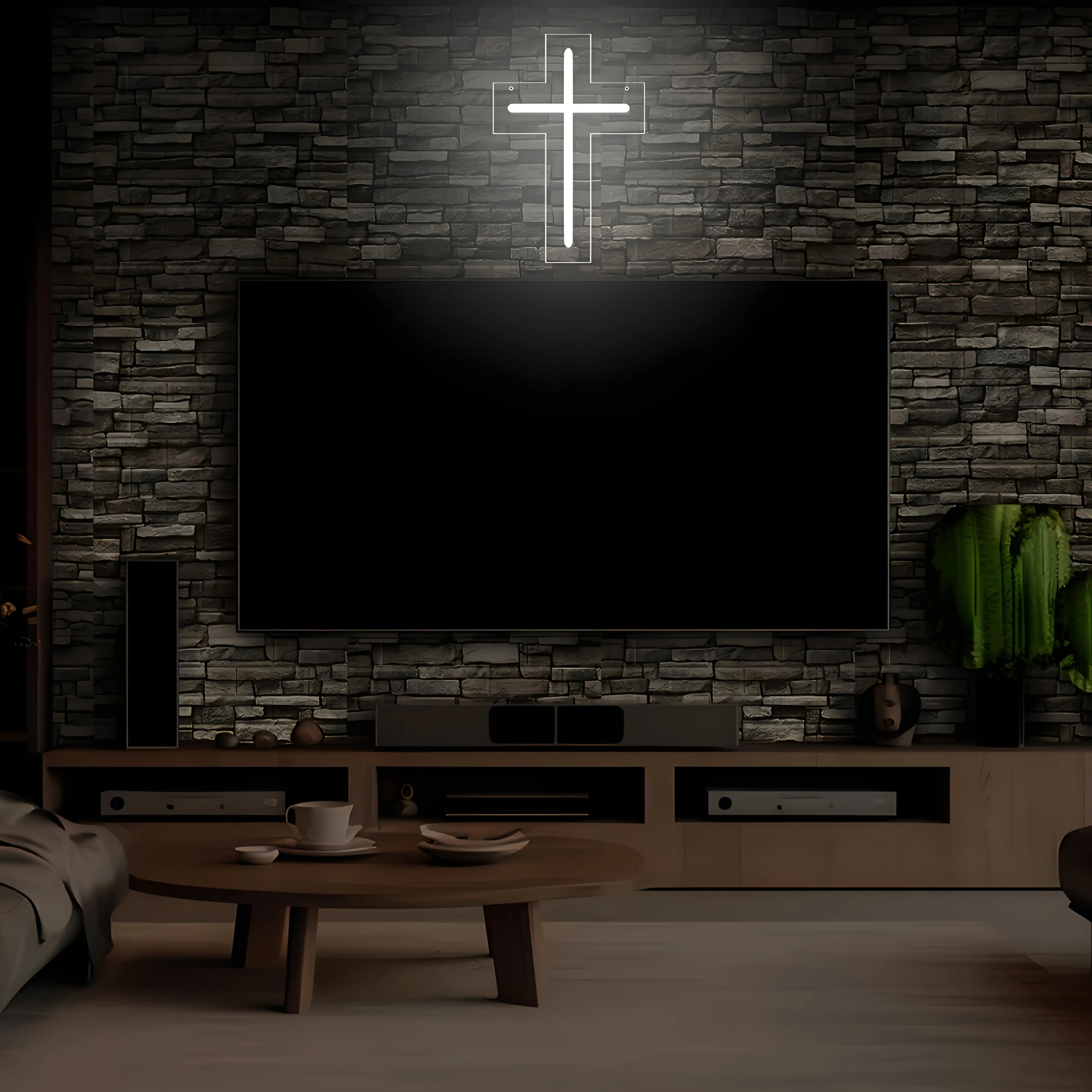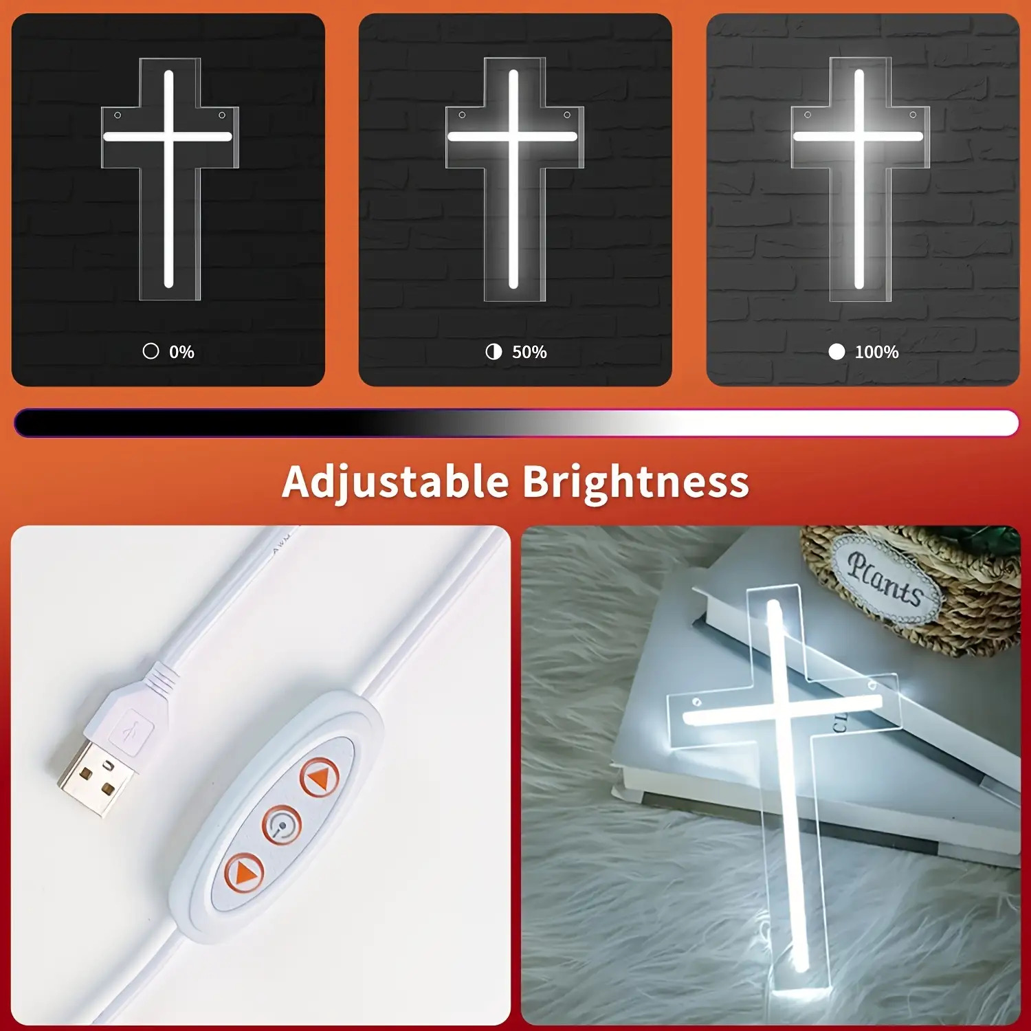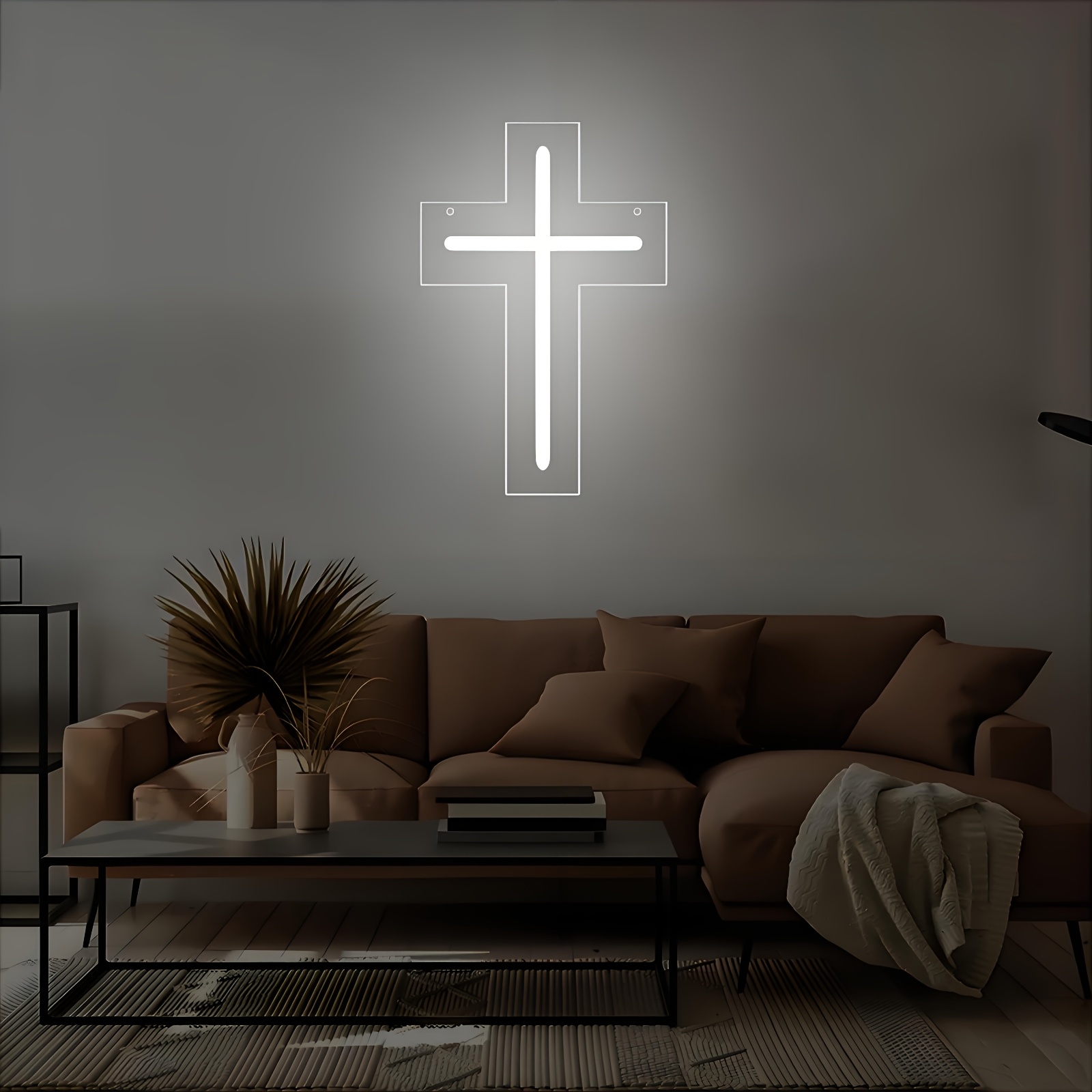 1 Modern LED Cross Neon Sign - USB-Powered with Adjustable Brightness, Warm Ligh