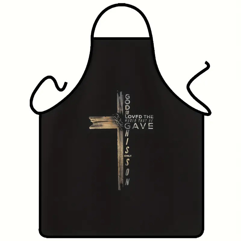 1pc Black Apron with "God Loves the Outcasts" Print - Sleeveless Polyester Kitch