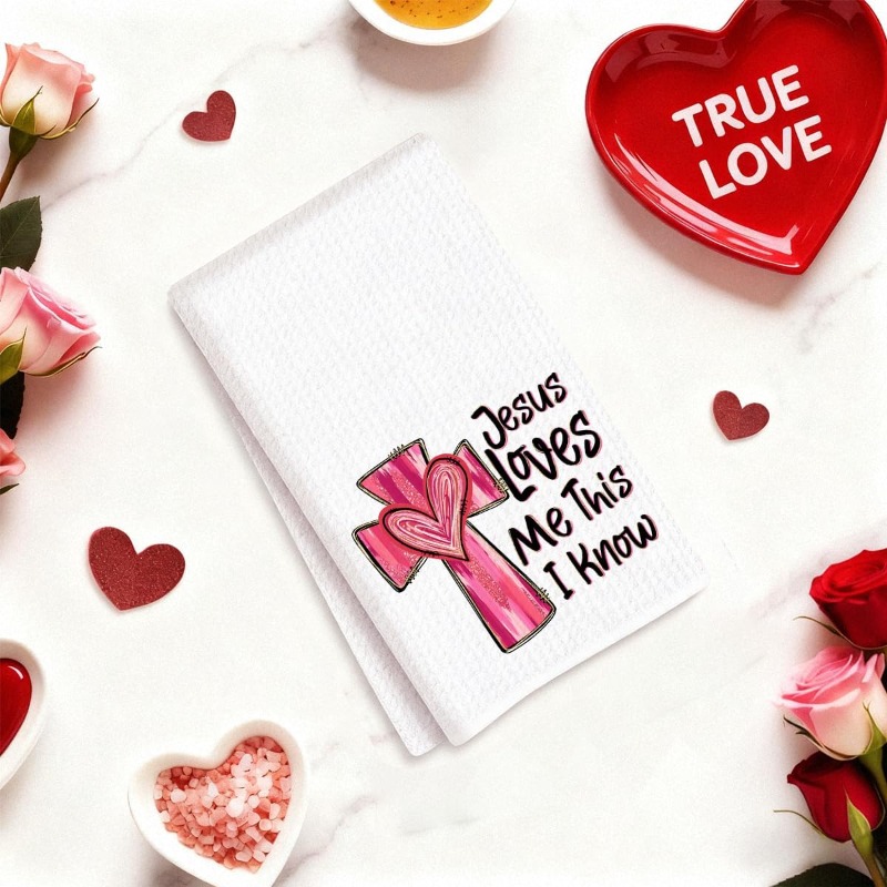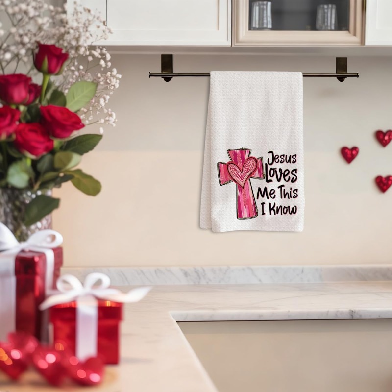 1pc Christian Bible Verse Kitchen Towel Suitable for - Jesus Cross Heart, Decora