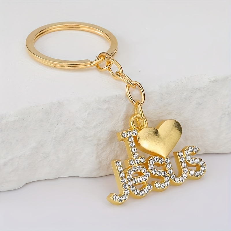 1pc Christian Keychain & Heart Design - White & Golden Accent, Durable Zinc Allo
