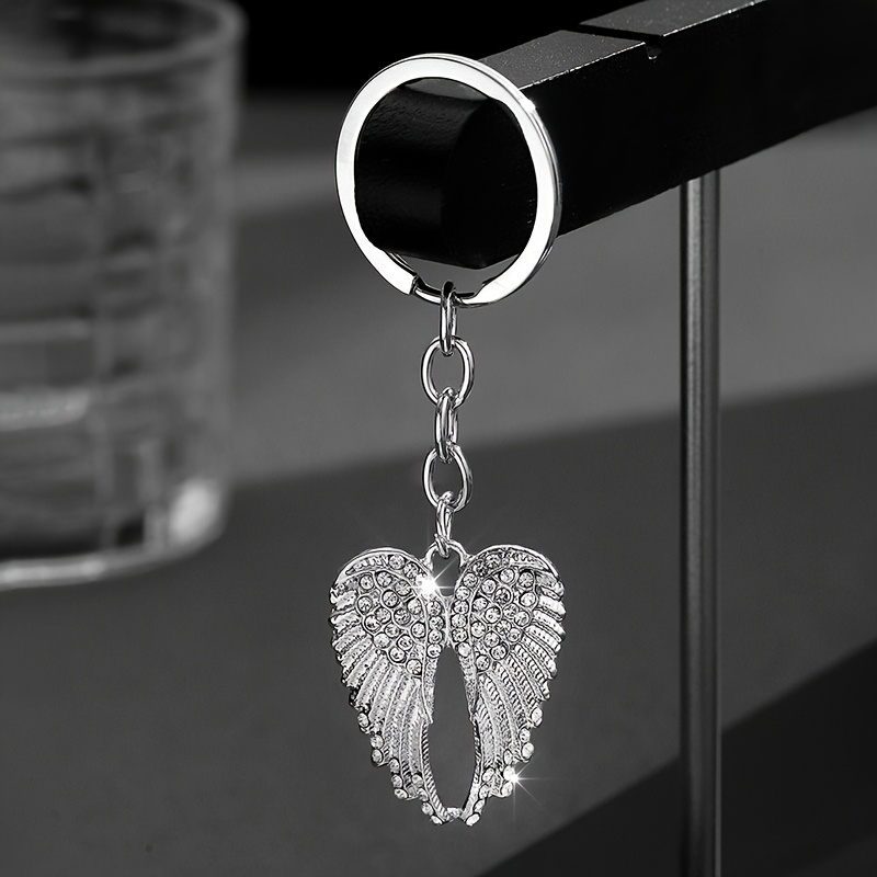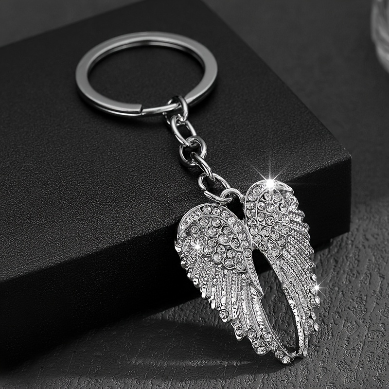 1pc Funky Angel Wing Keychain - Sparkling -Studded Design, Durable Metal Key Rin