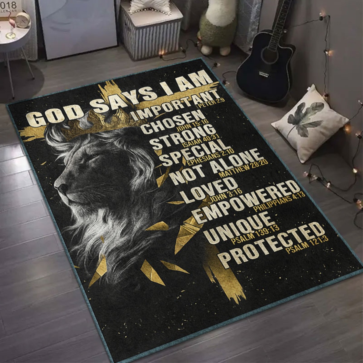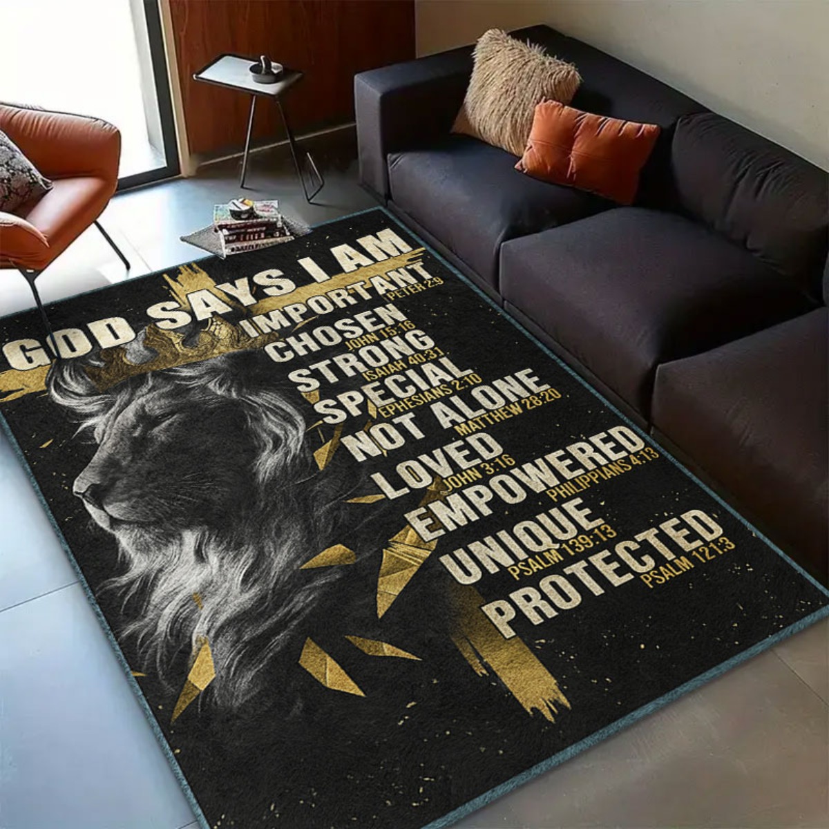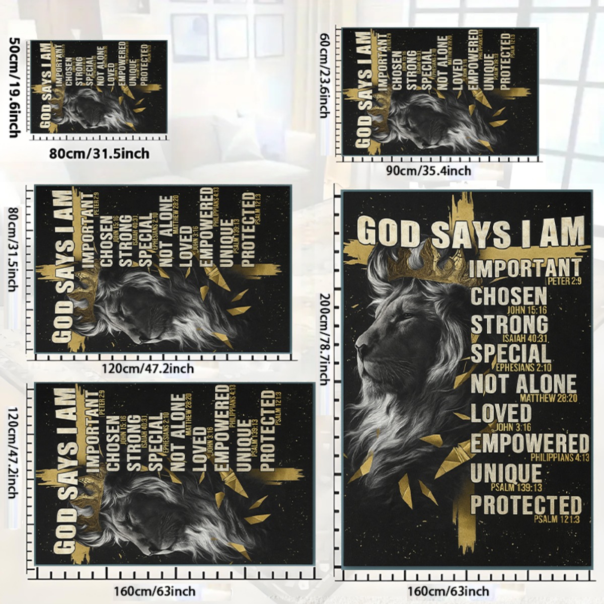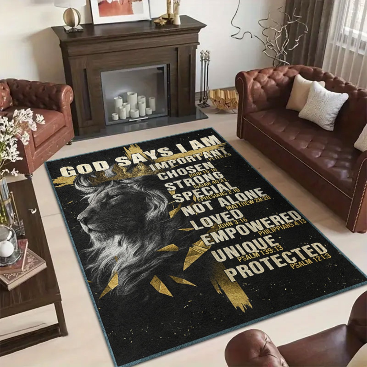 1pc God Declares My Significance Lion Cross Rug - Uplifting Christian Present Fe