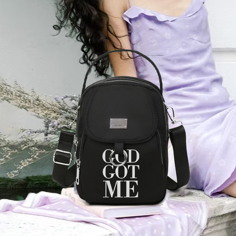 1pc God Got Me Backpack - Lightweight Crossbody Bag with Adjustable Straps, Zipp