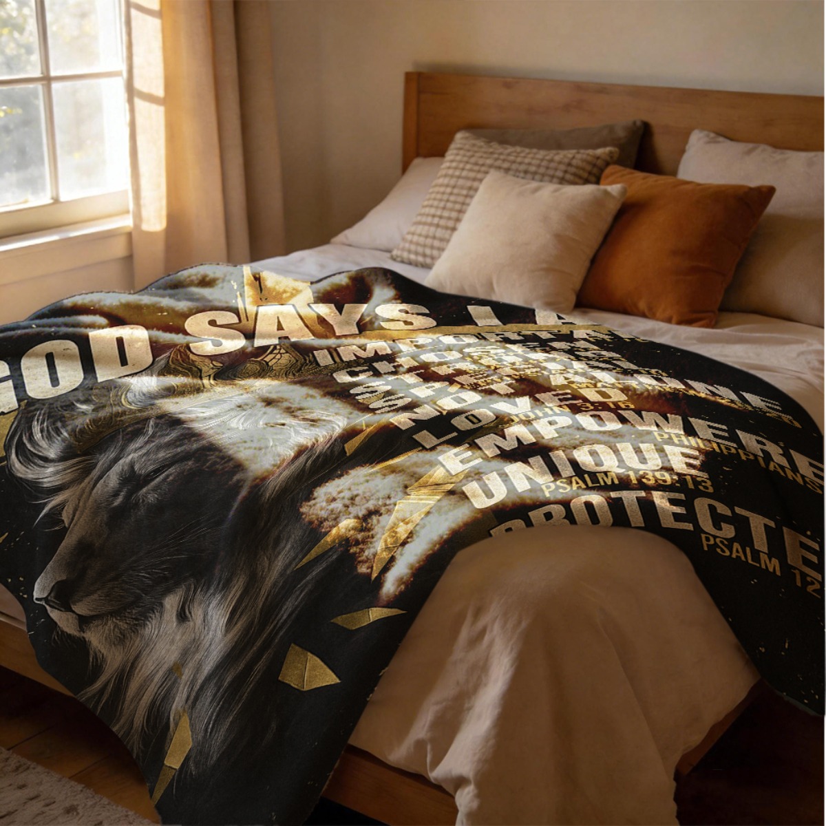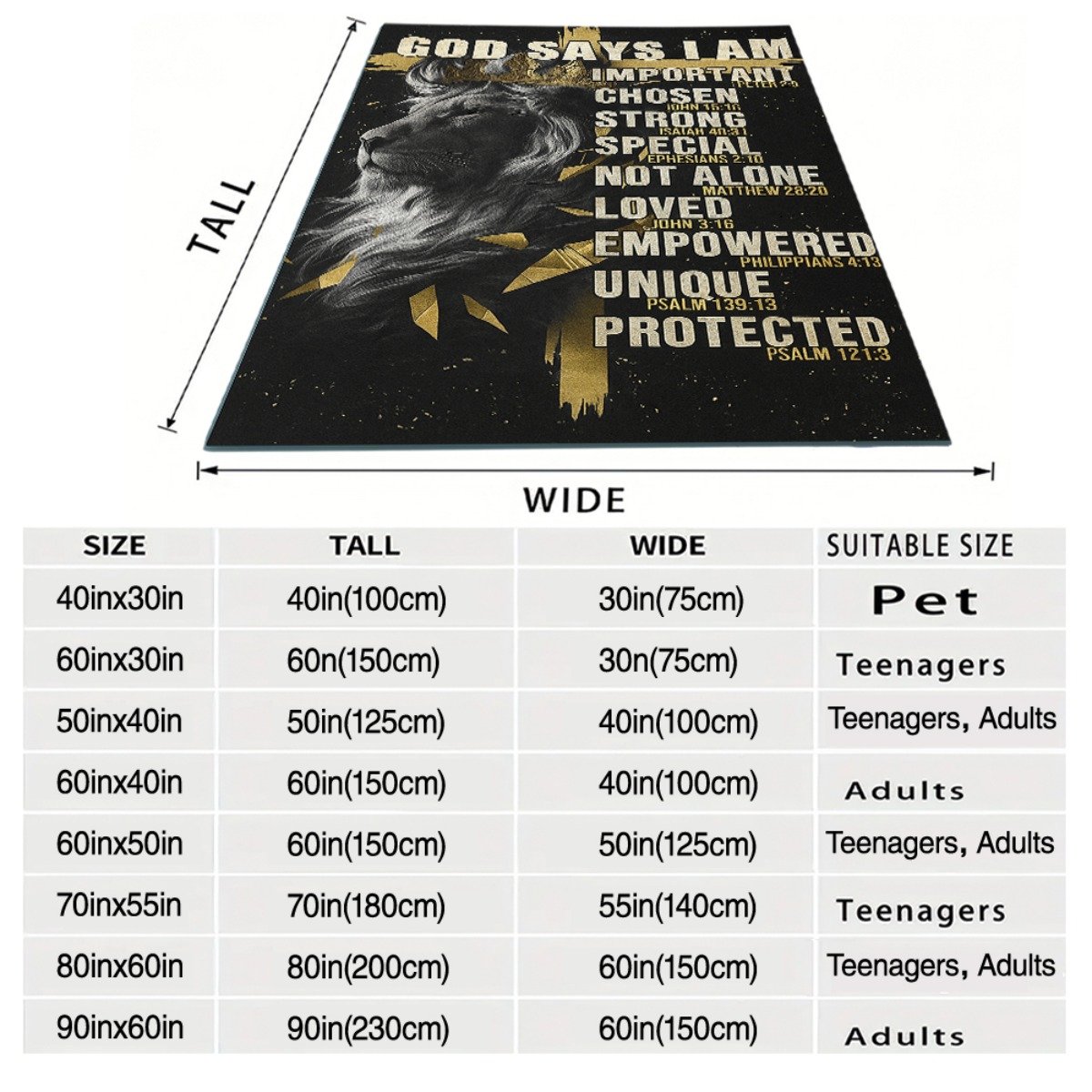 1pc God Says I Am Important Lion of Judah Christian Blanket - French Style Bible