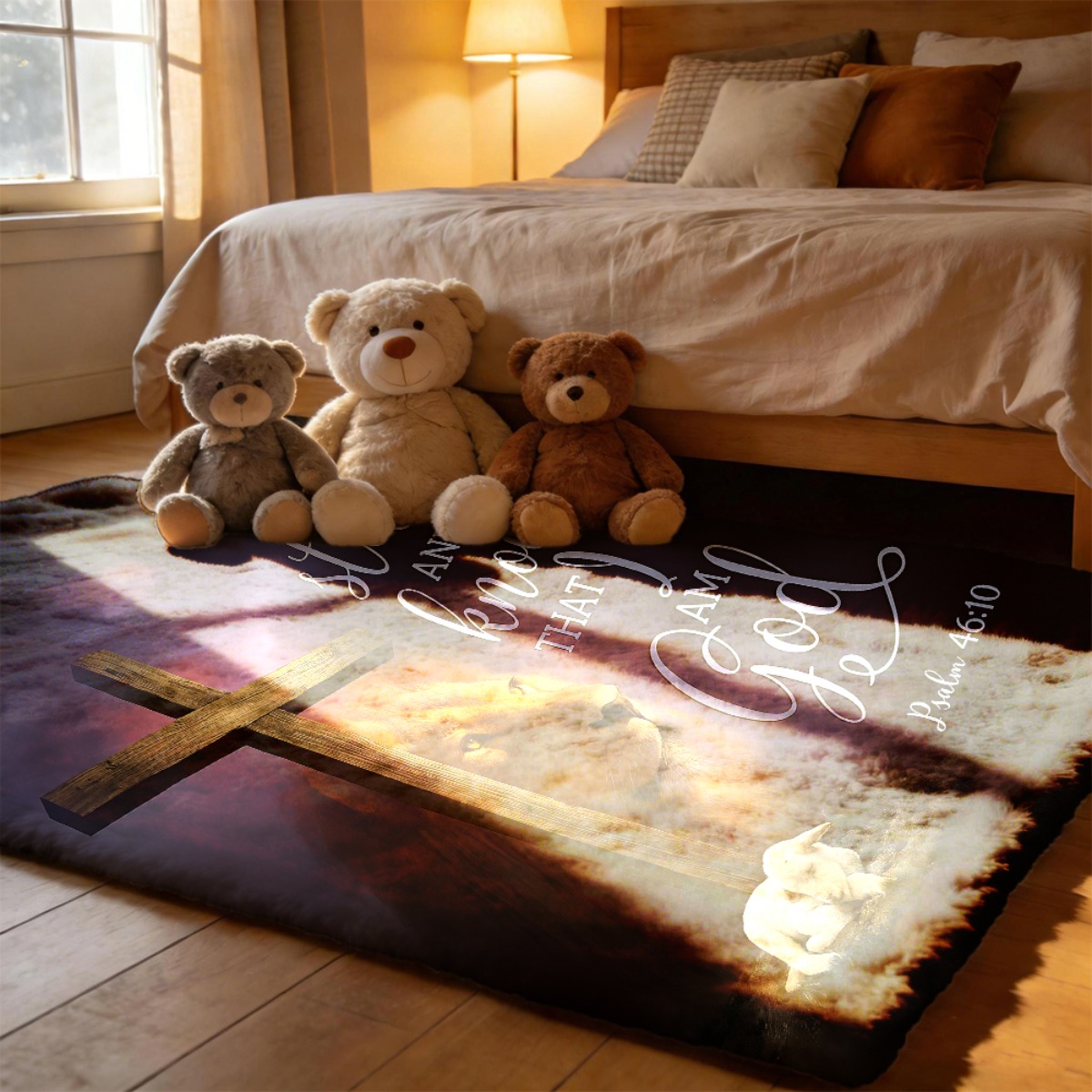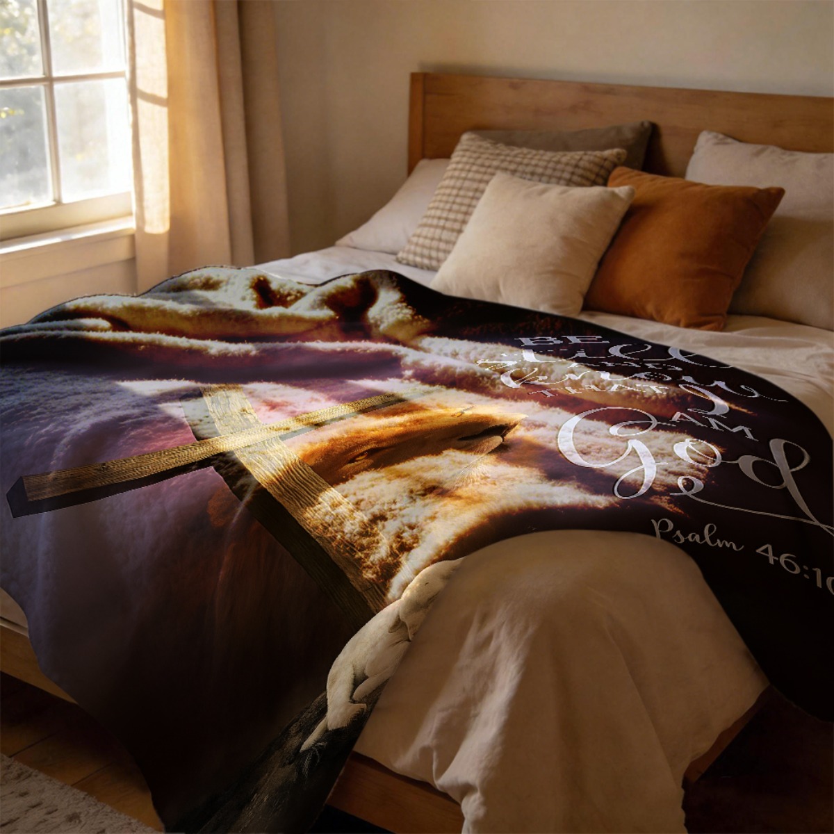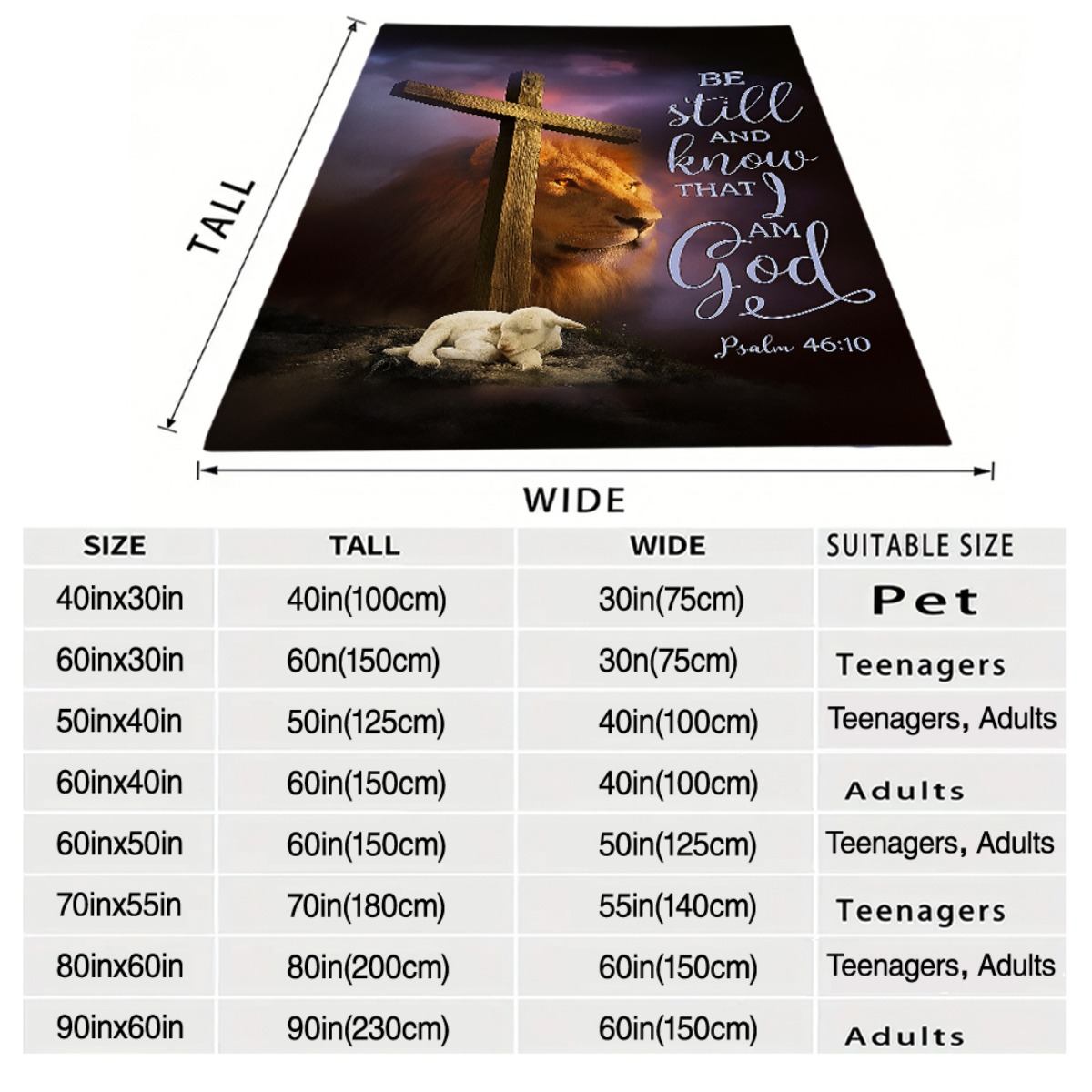 1pc Inspirational Christian Flannel Throw Blanket with Cross & Lamb Design | Sof