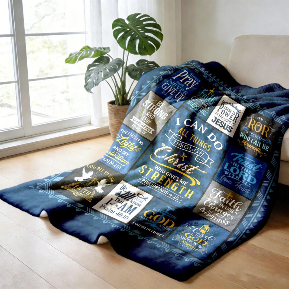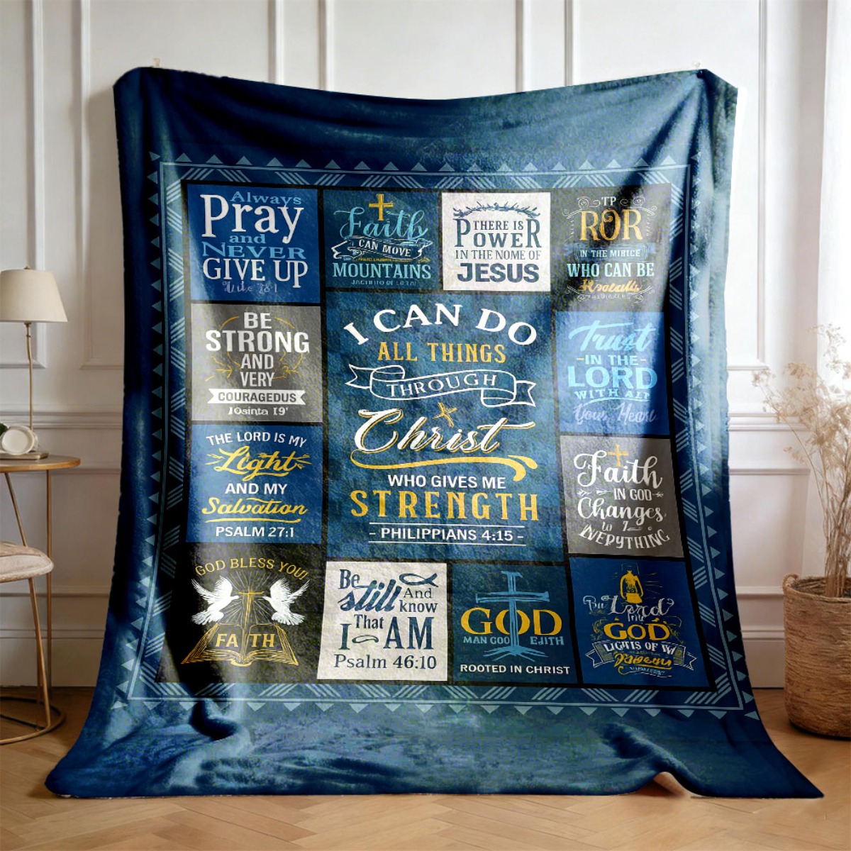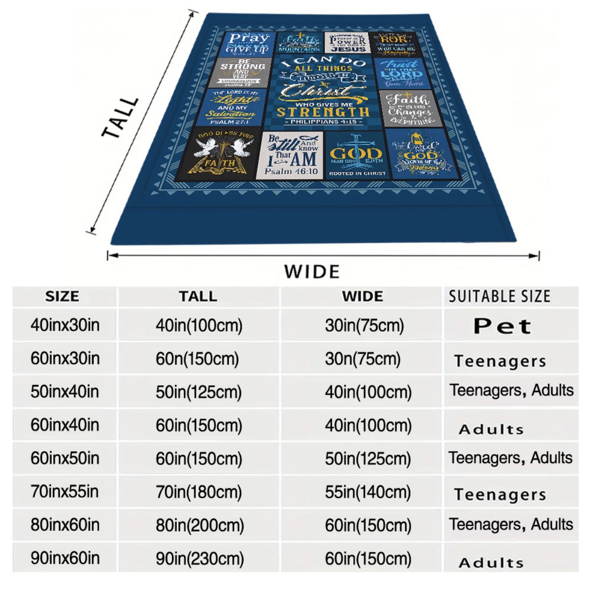 1pc Men's Inspirational Christian Flannel Blanket - Soft Blue Geometric Design w