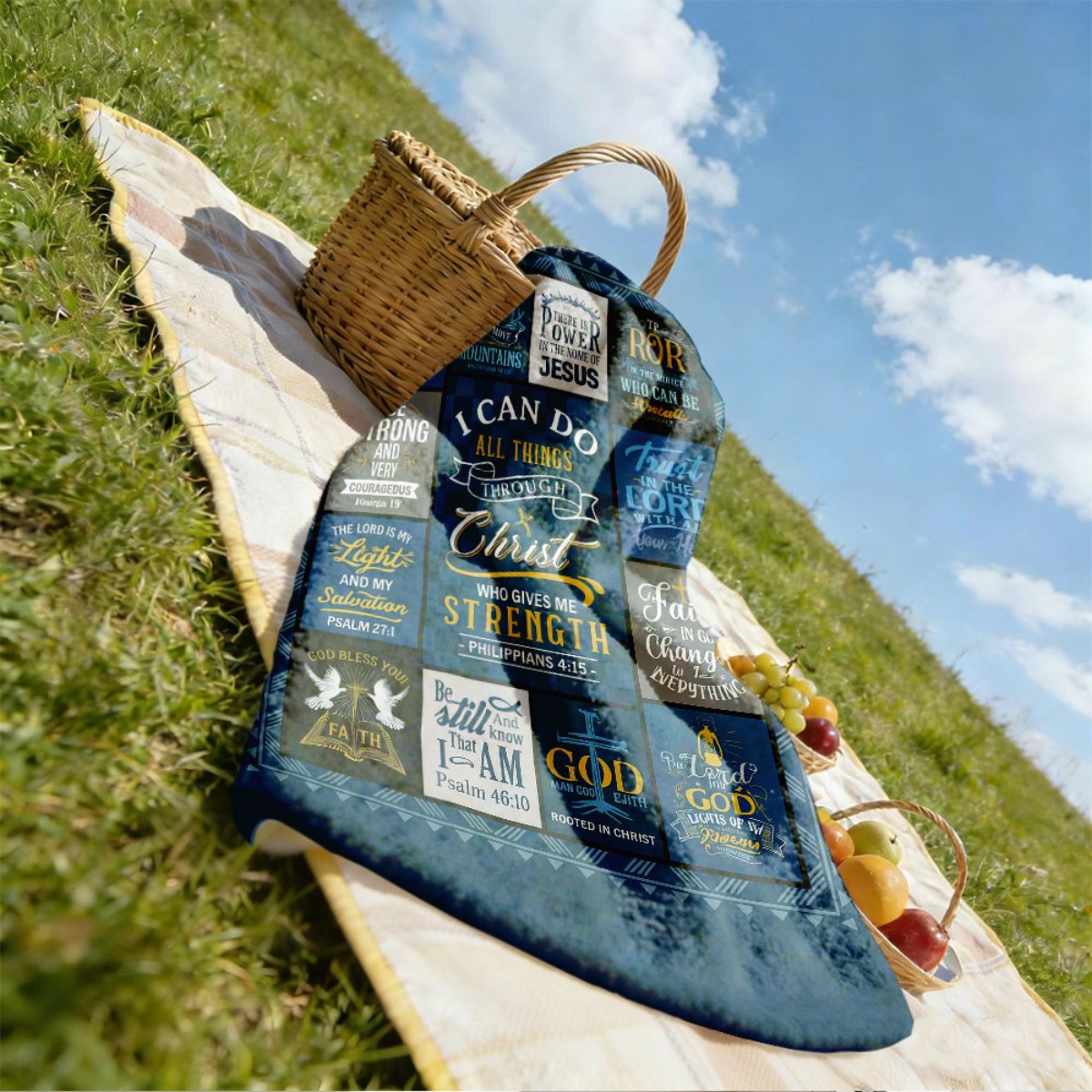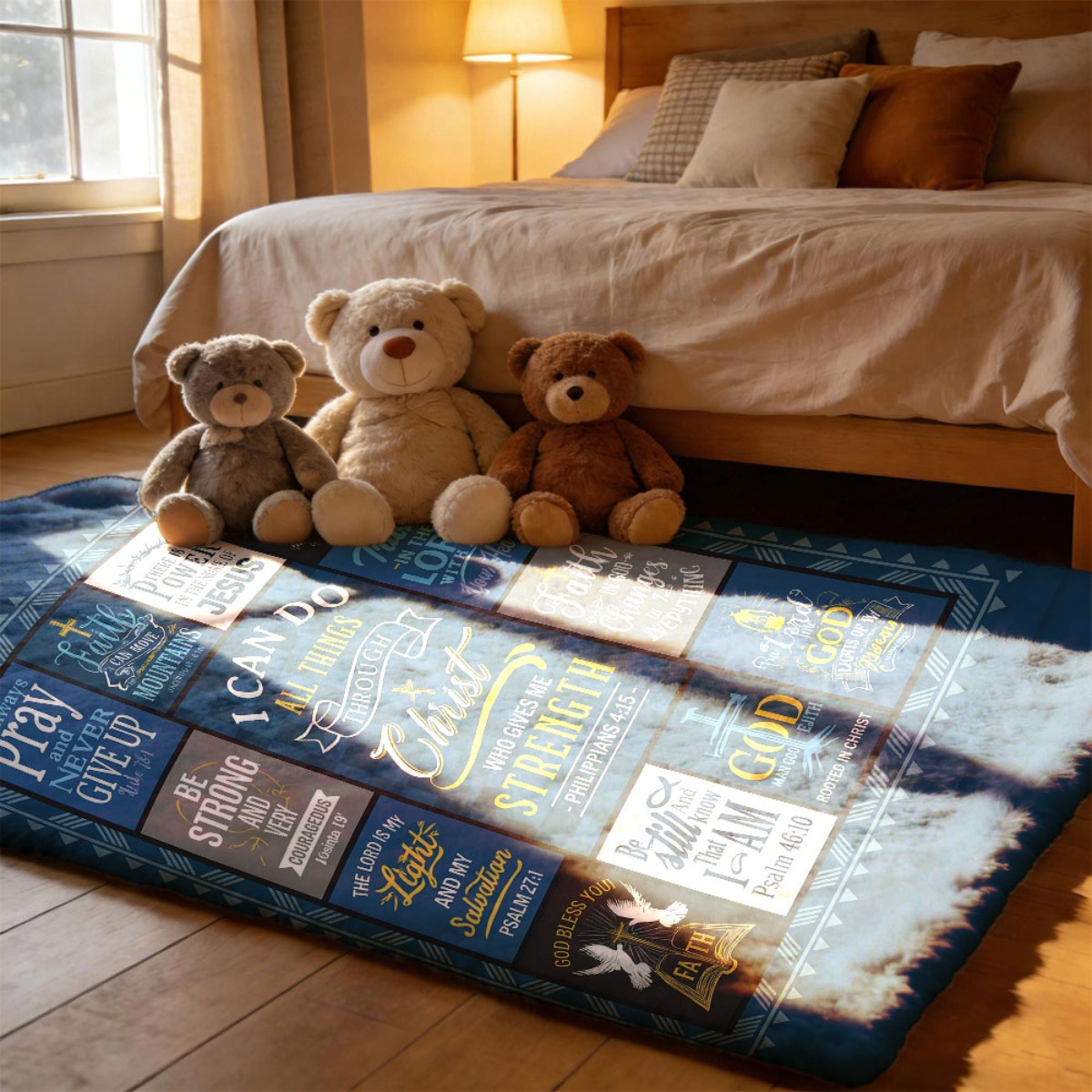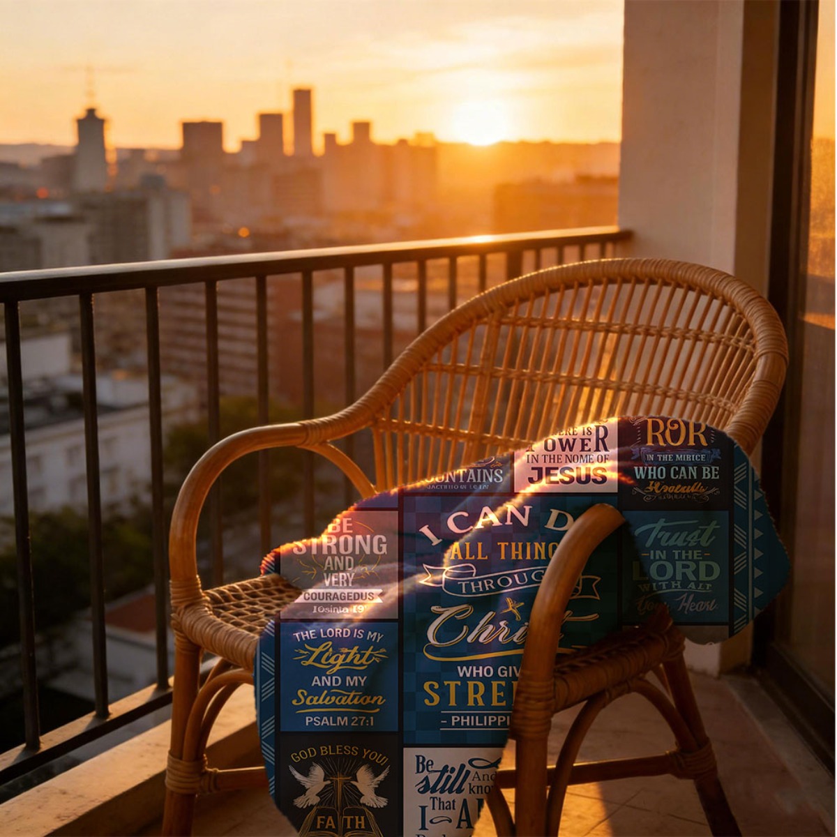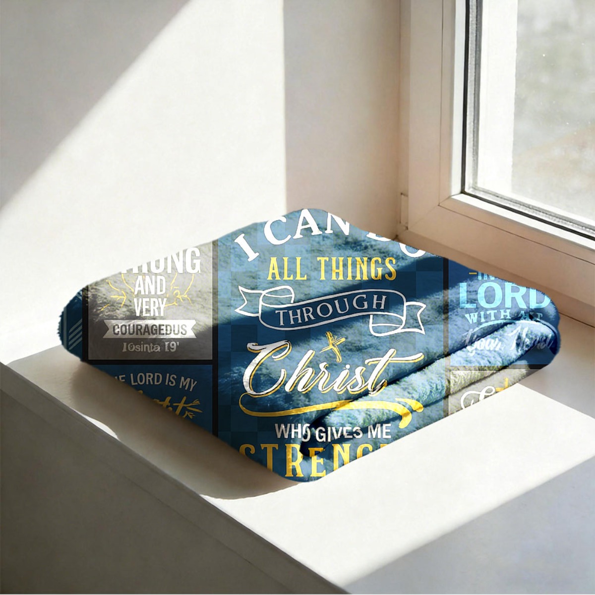 1pc Men's Inspirational Christian Flannel Blanket - Soft Blue Geometric Design w
