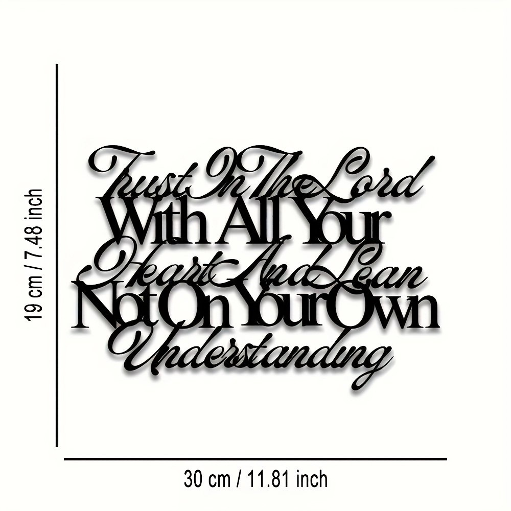 SPECIFICATIONSItem ID: CK4626023Origin: Fujian,ChinaStyle: Art deco1pc Metal Wall Art - "Trust in the Lord with All Your Heart and Lean Not on Your$7.59PriceModel*POTT07051Quantity*Add to CartBuy Now