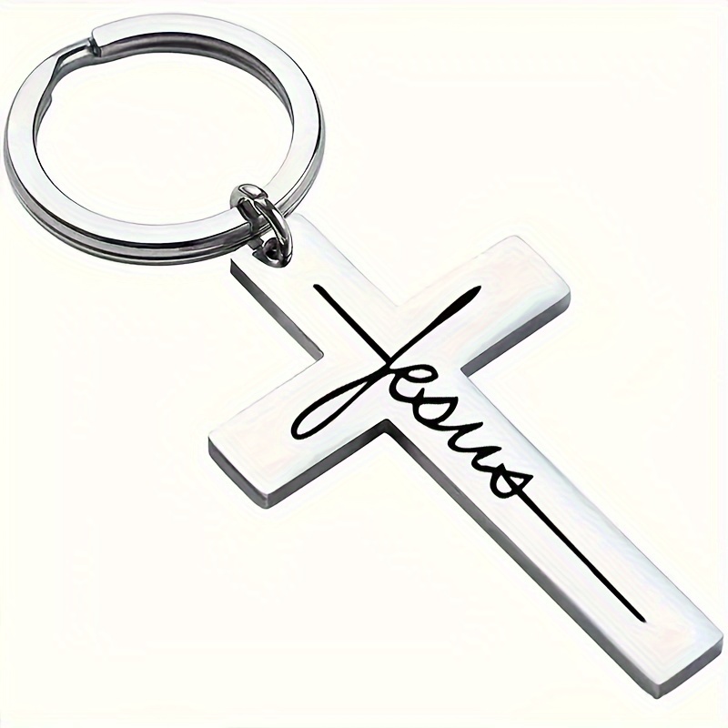 1pc Religious Cross Keychain, Funky Stainless Steel Pendant, Faith Accessory, Id