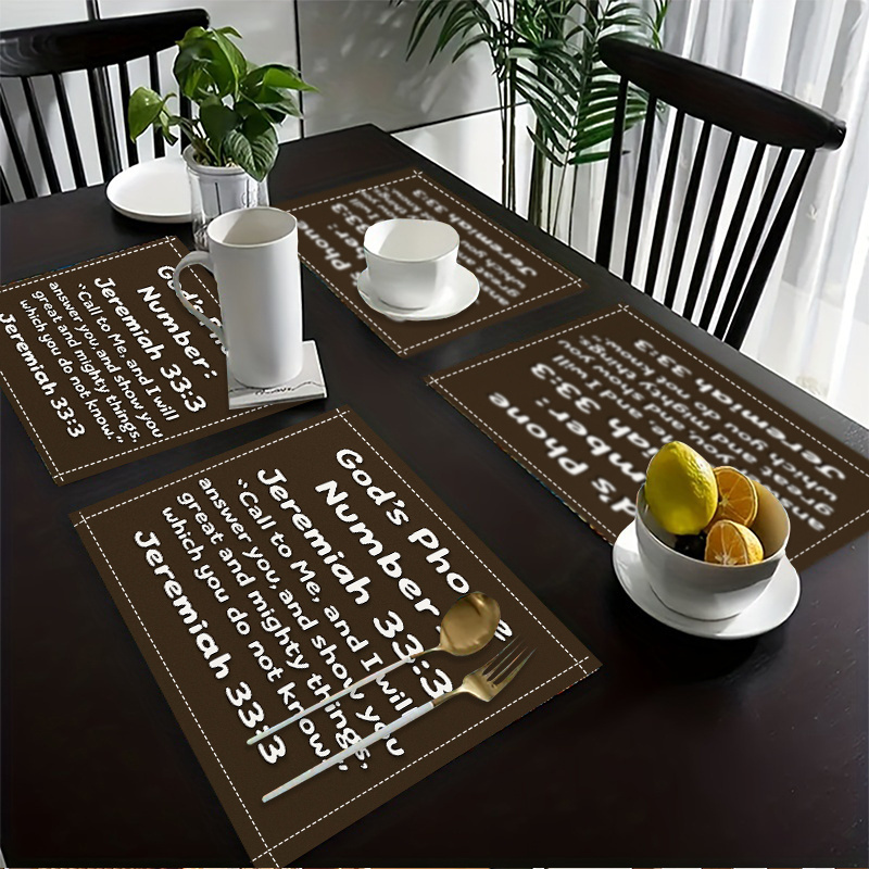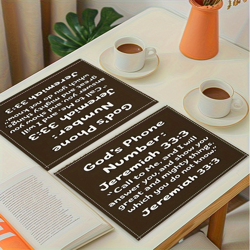 2/4/6pcs Bible Quote Table Mats - Inspirational Christian Religious Decor with S