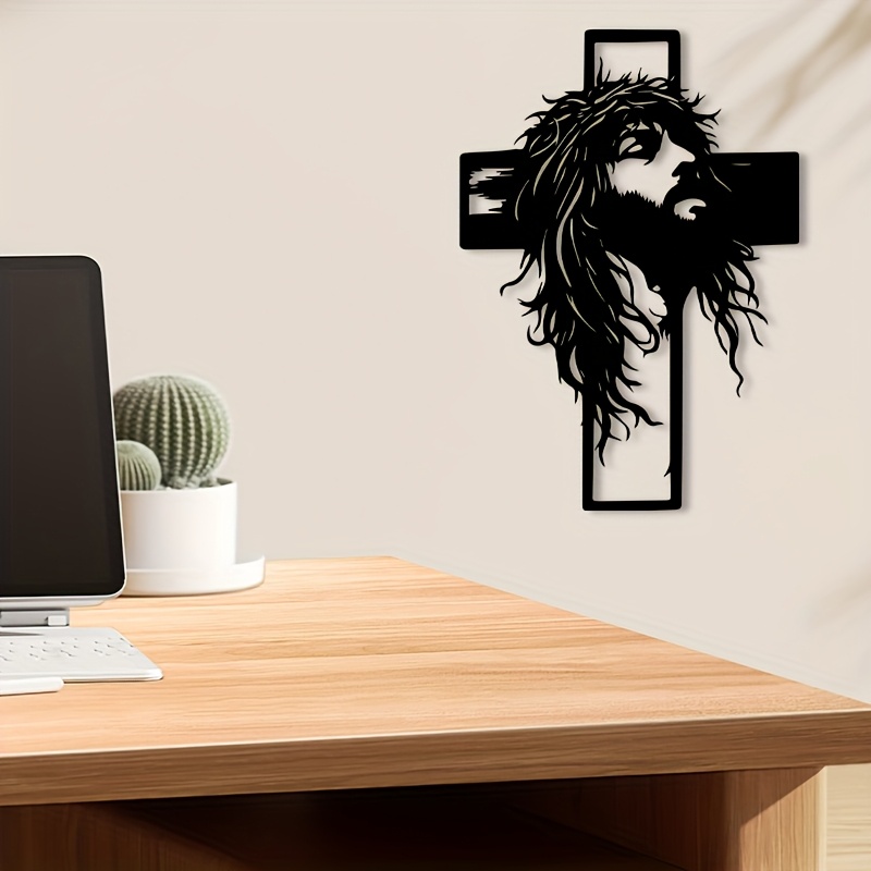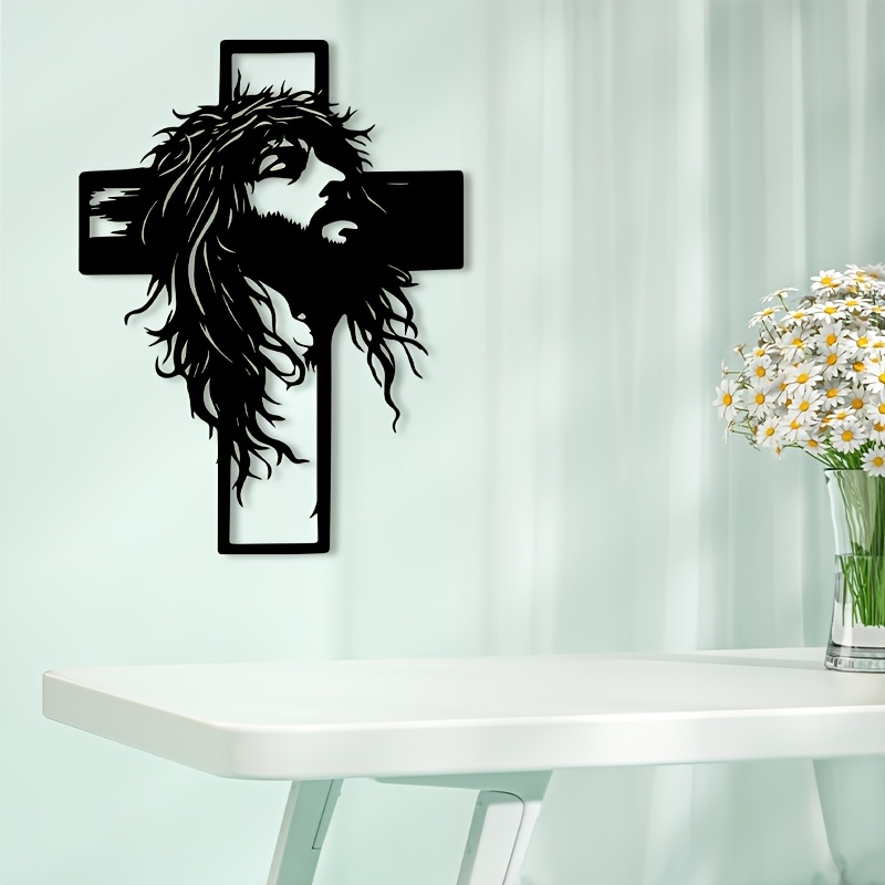 2D Flat, 1pc Jesus Christ Metal Wall Plaque - Powder-Coated Religious Cross Stat
