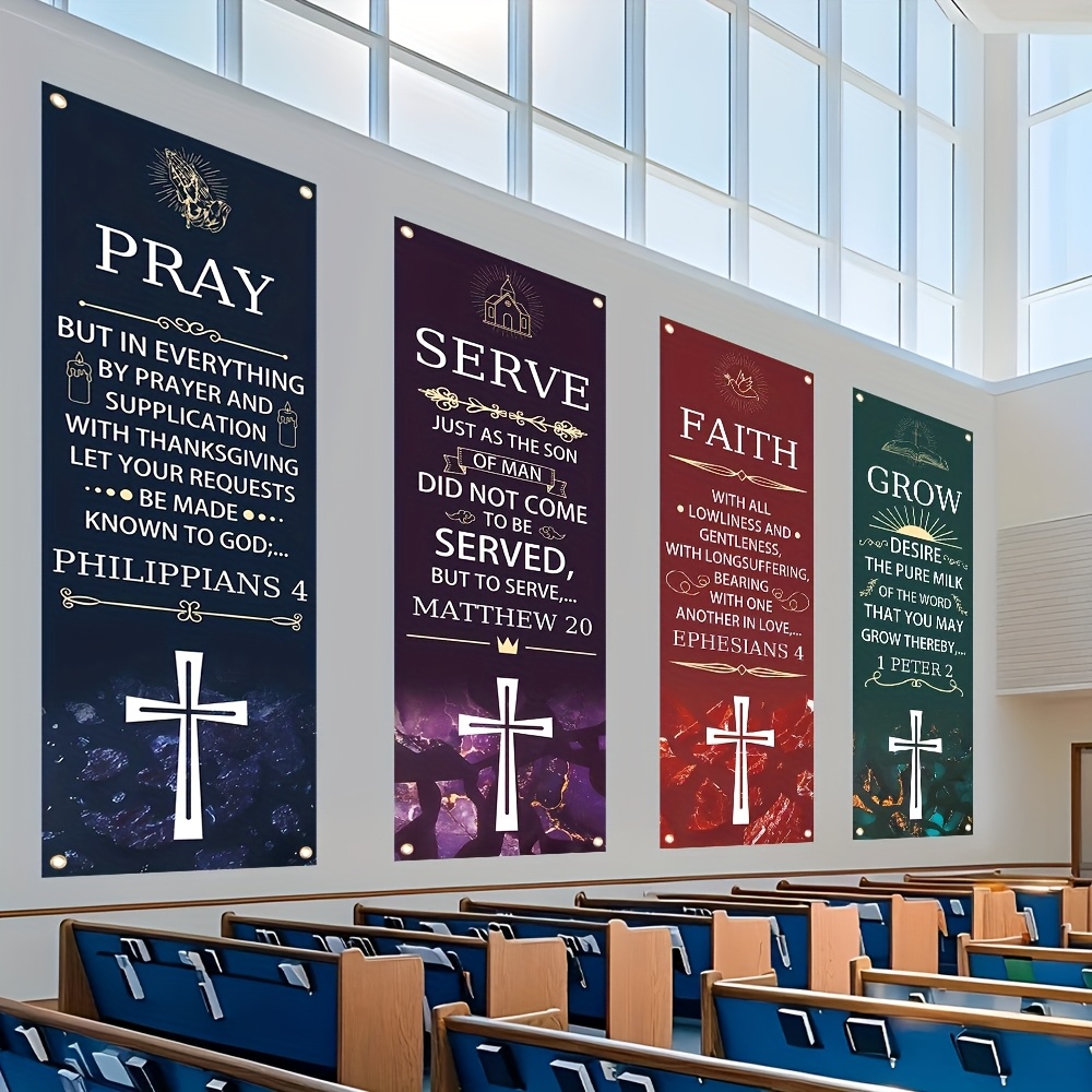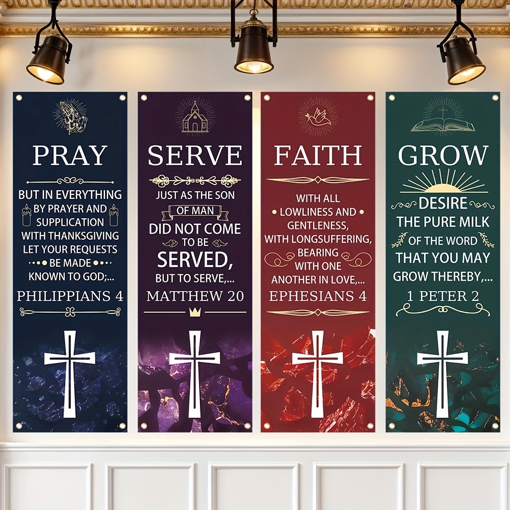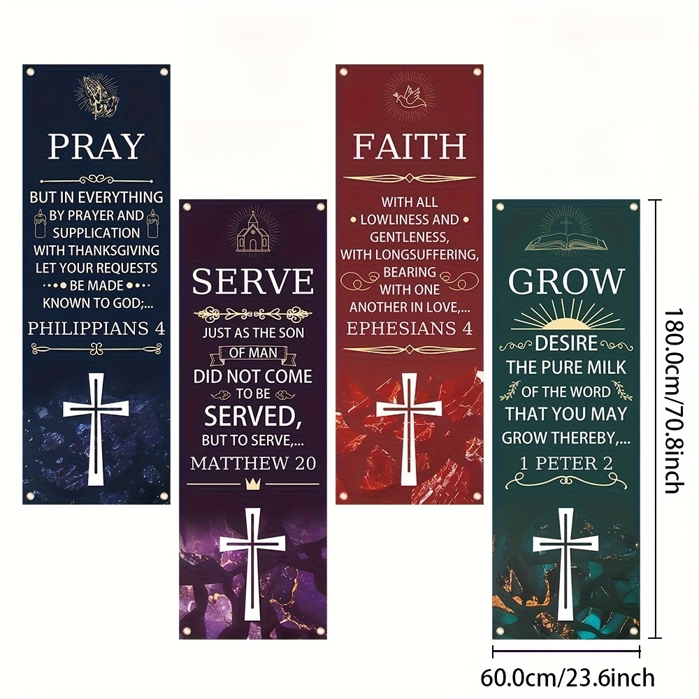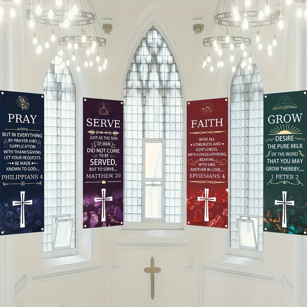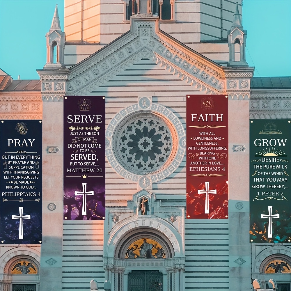 2D Flat, 2D Flat Banner, 4pcs Easter Church Banner with Bible Verses - Christian