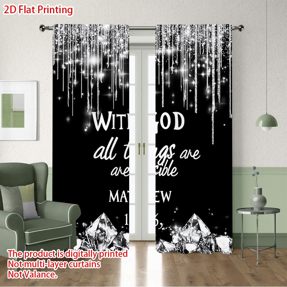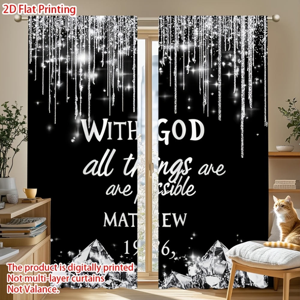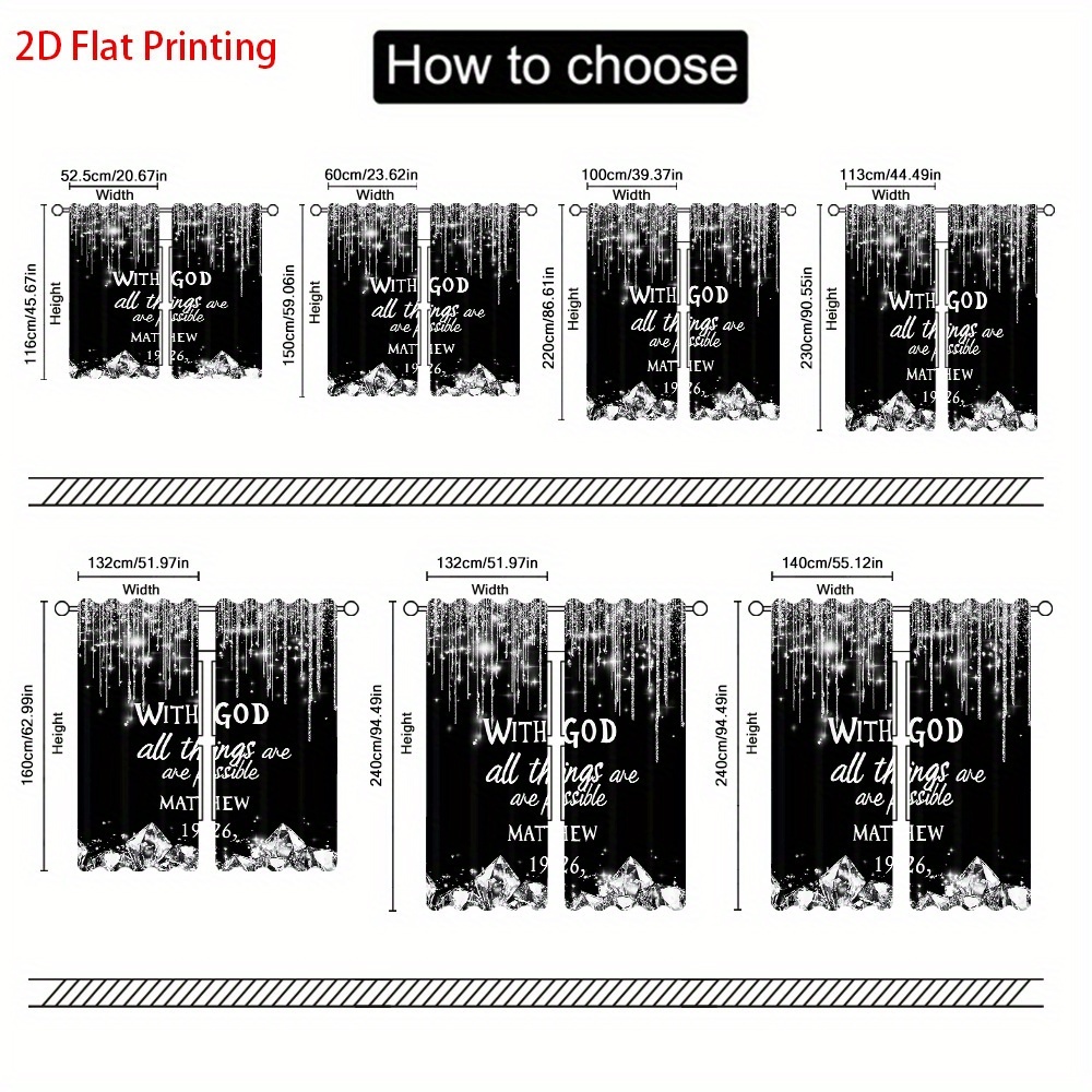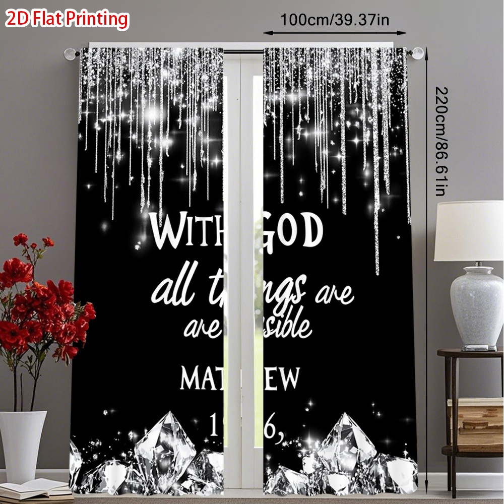 2D Flat, 2pcs Christian Faith Window Curtains - Semi-Blackout Light Filtering Dr