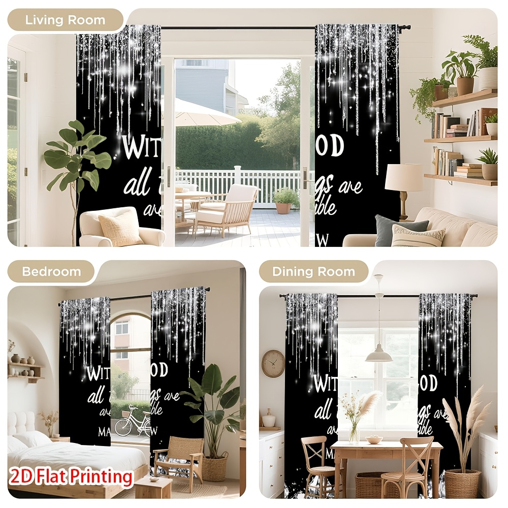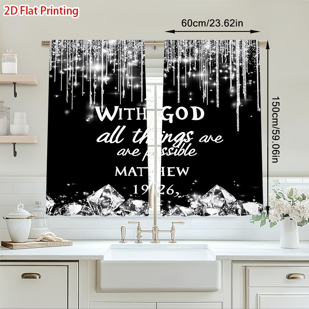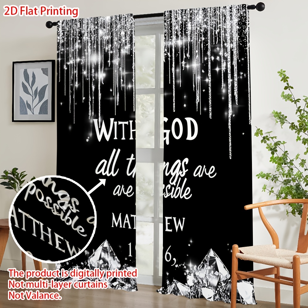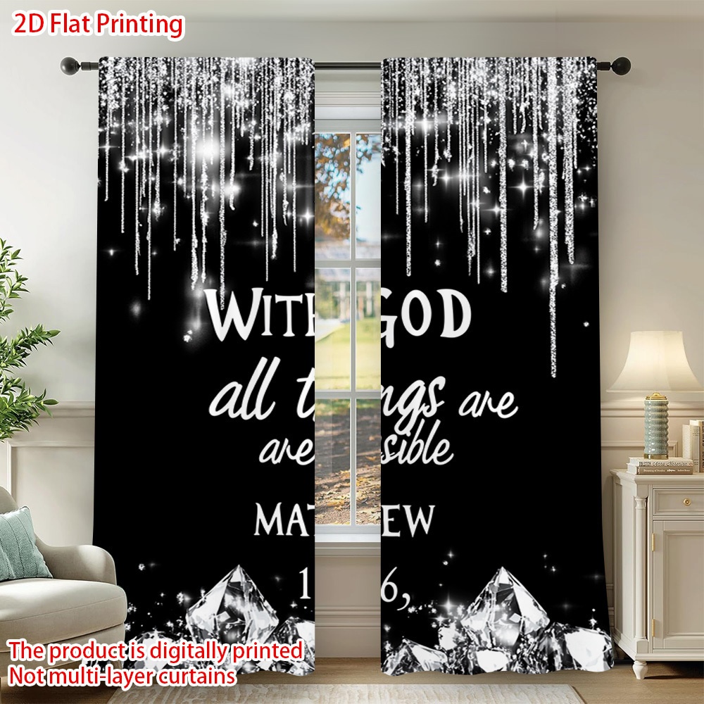 2D Flat, 2pcs Christian Faith Window Curtains - Semi-Blackout Light Filtering Dr