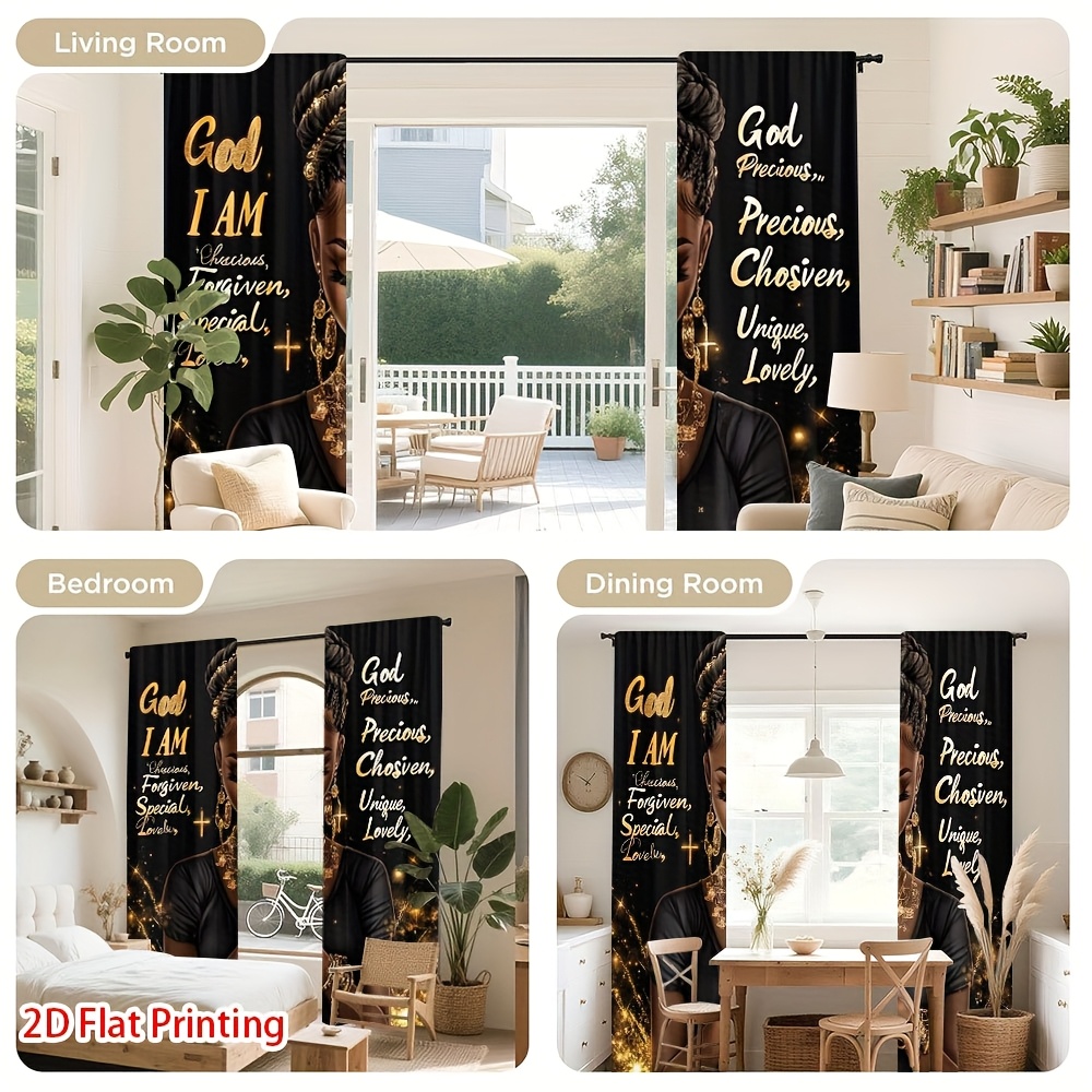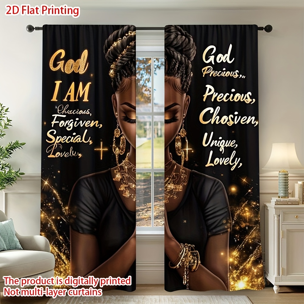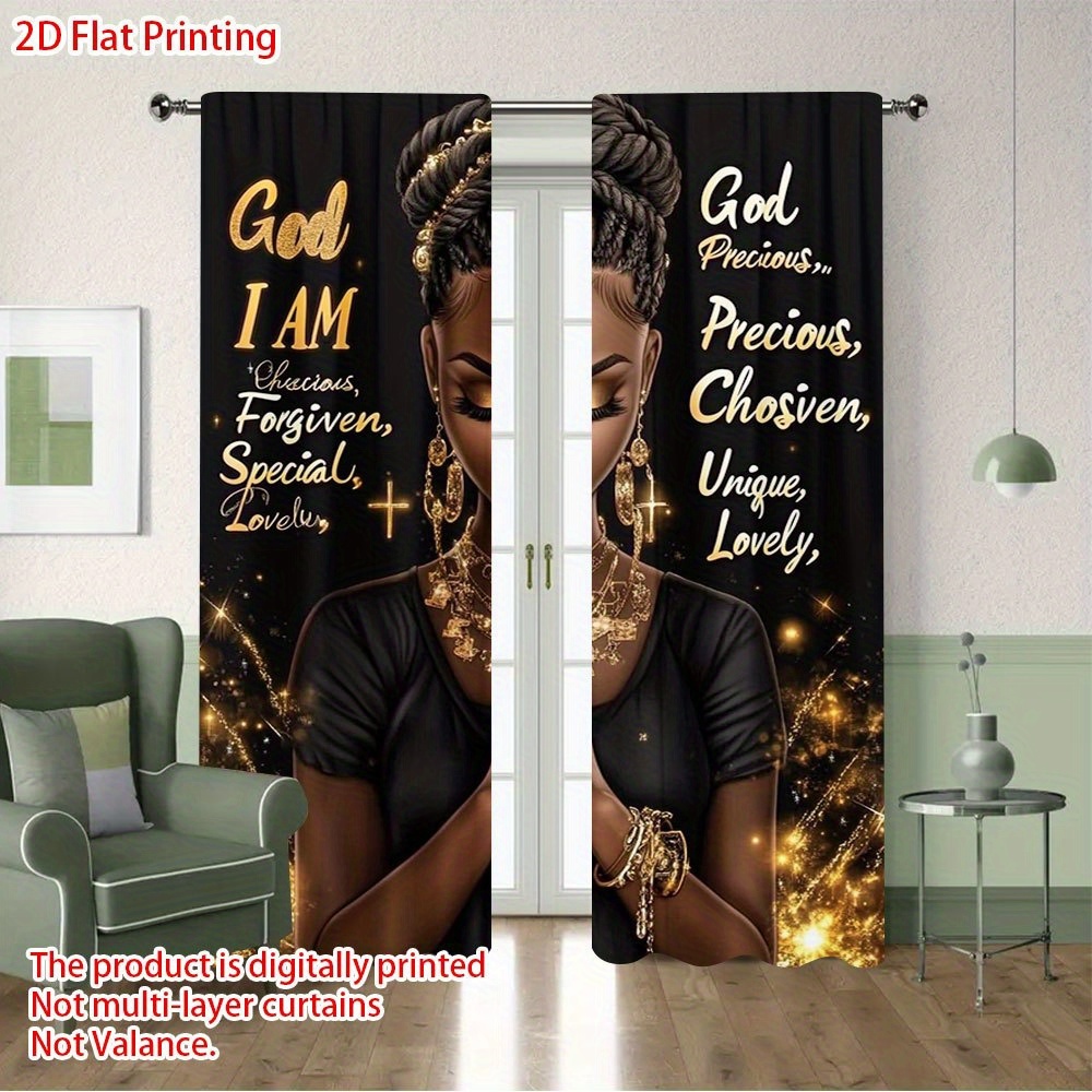 2D Flat - Set of 2 Flat Printed Curtains Featuring The Phrase 'God Says I Am Ble
