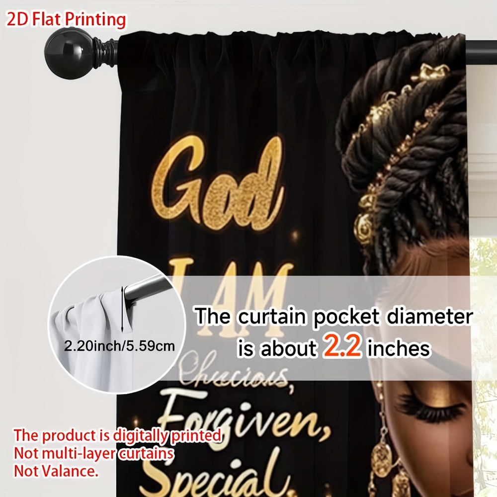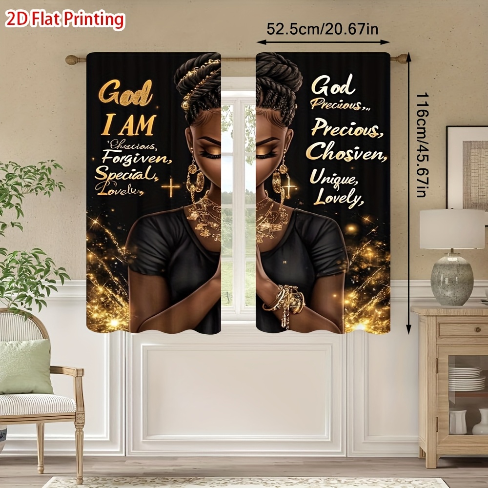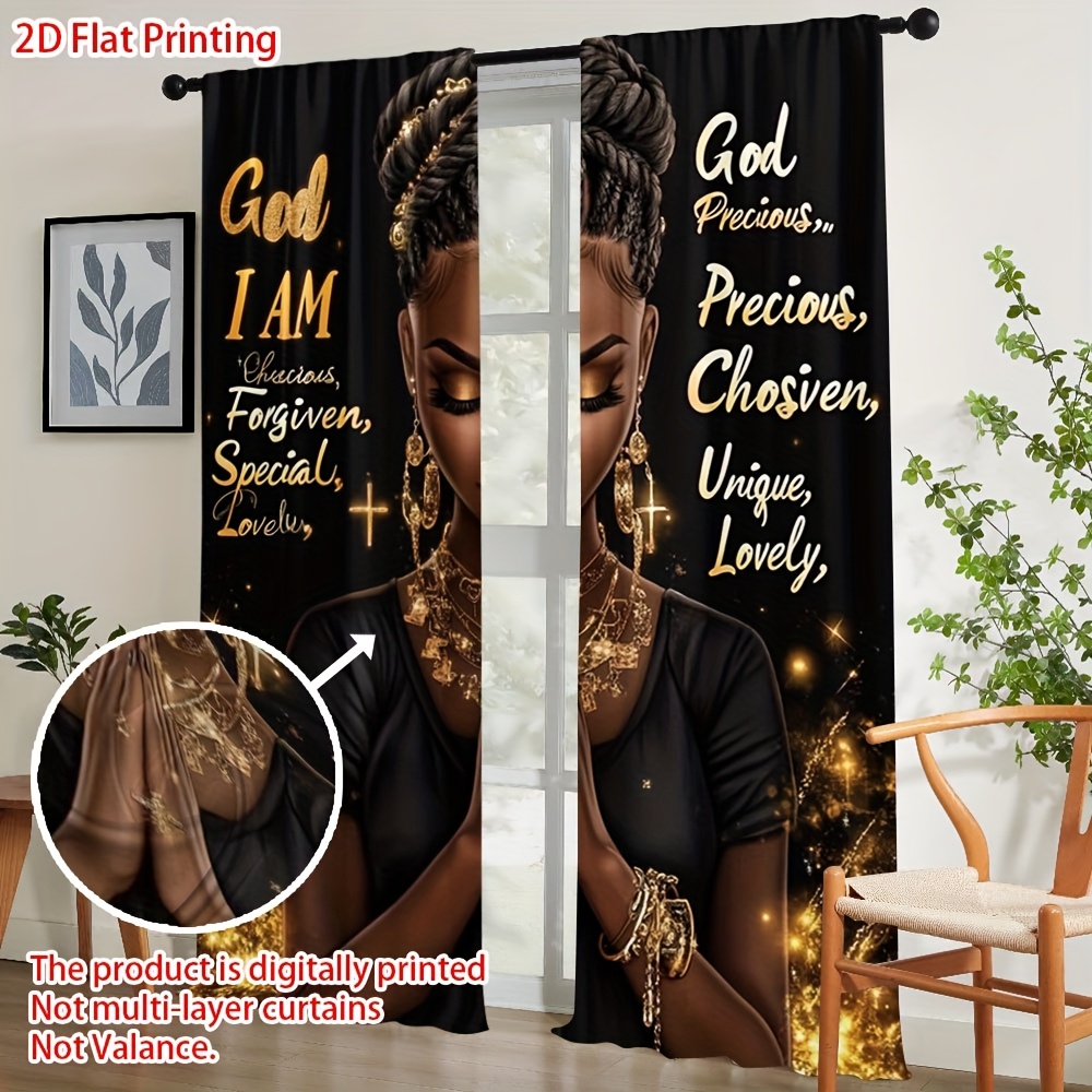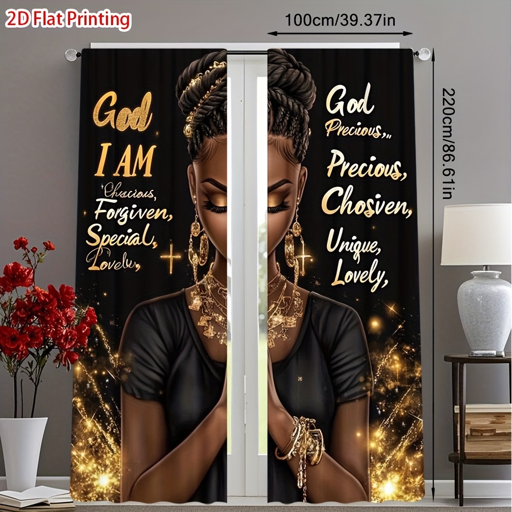 2D Flat - Set of 2 Flat Printed Curtains Featuring The Phrase 'God Says I Am Ble