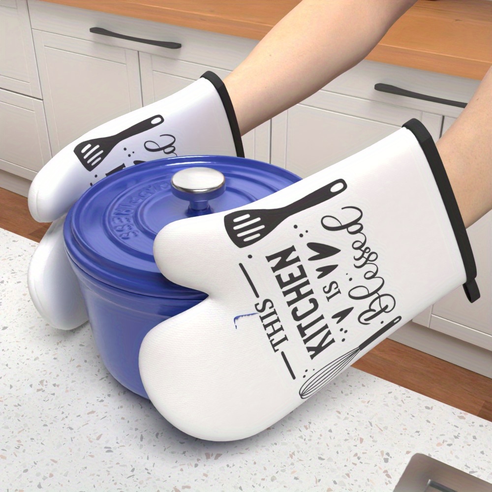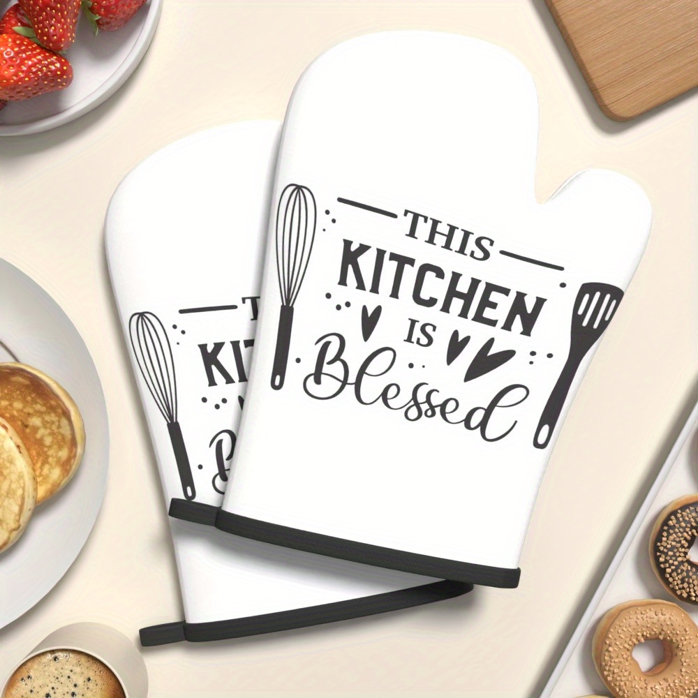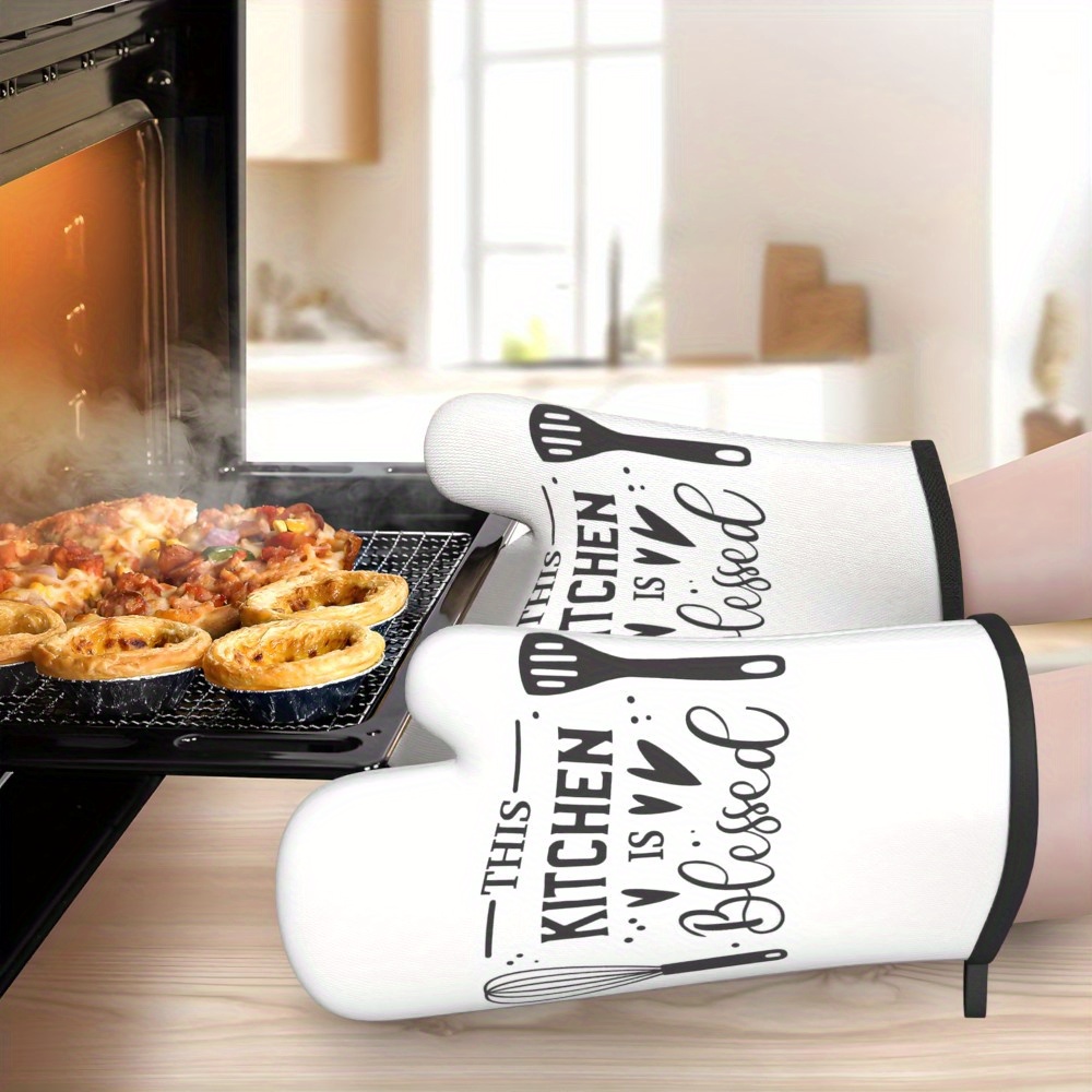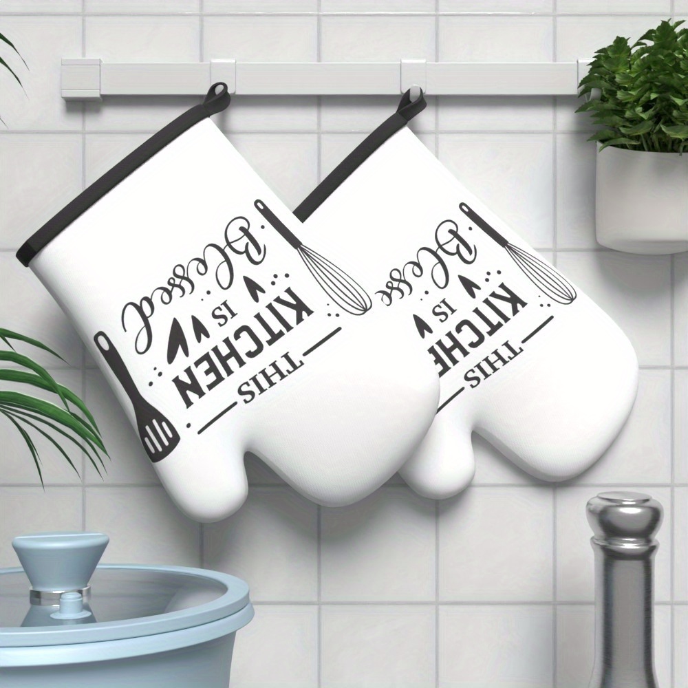 2pcs 26.92*17.02 cm Heat Resistant Kitchen Oven Gloves plaid simple slogan white