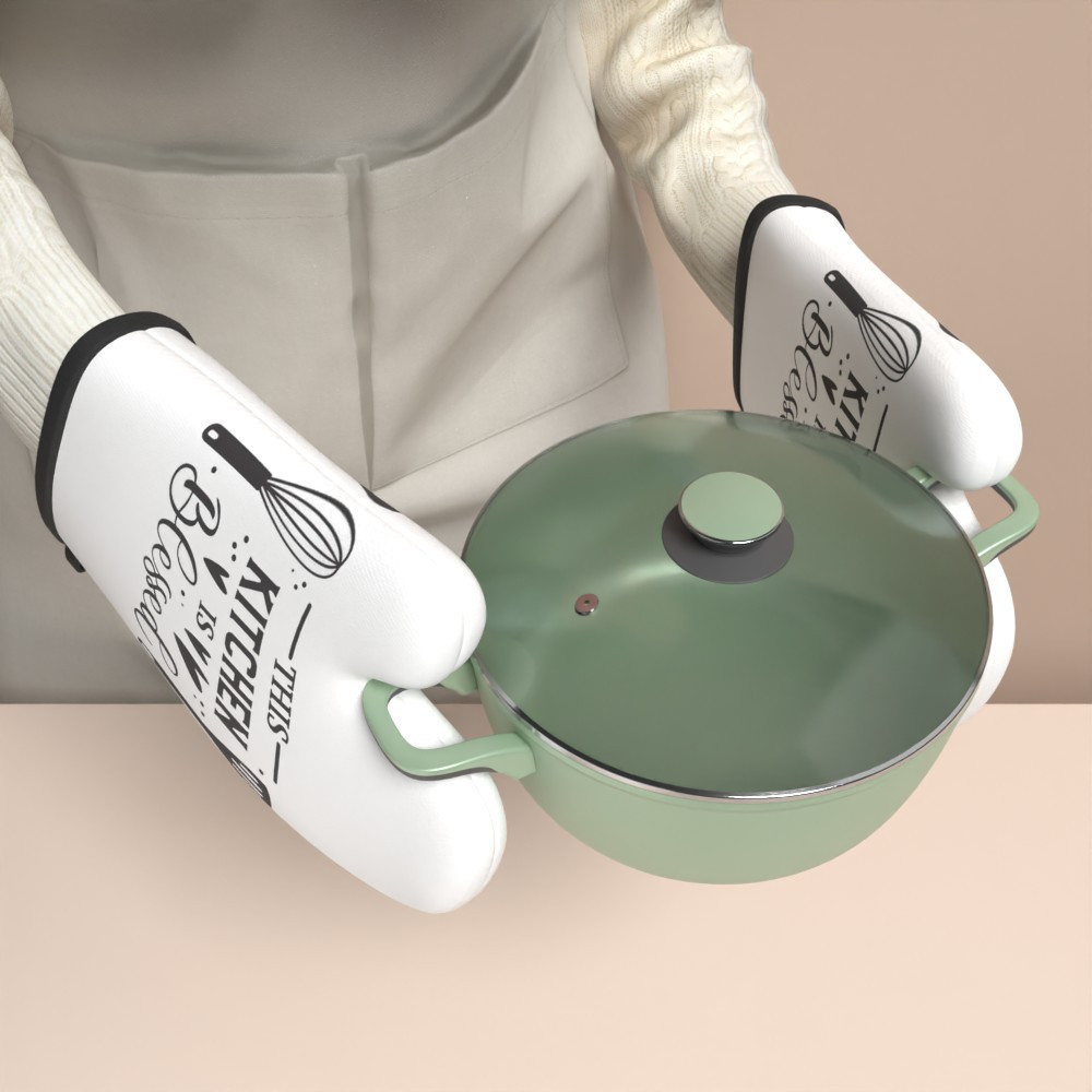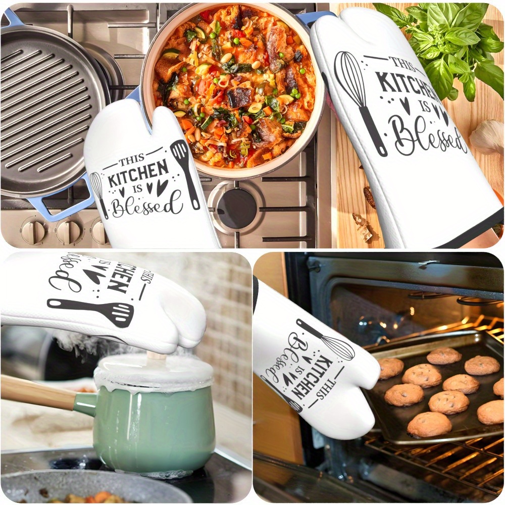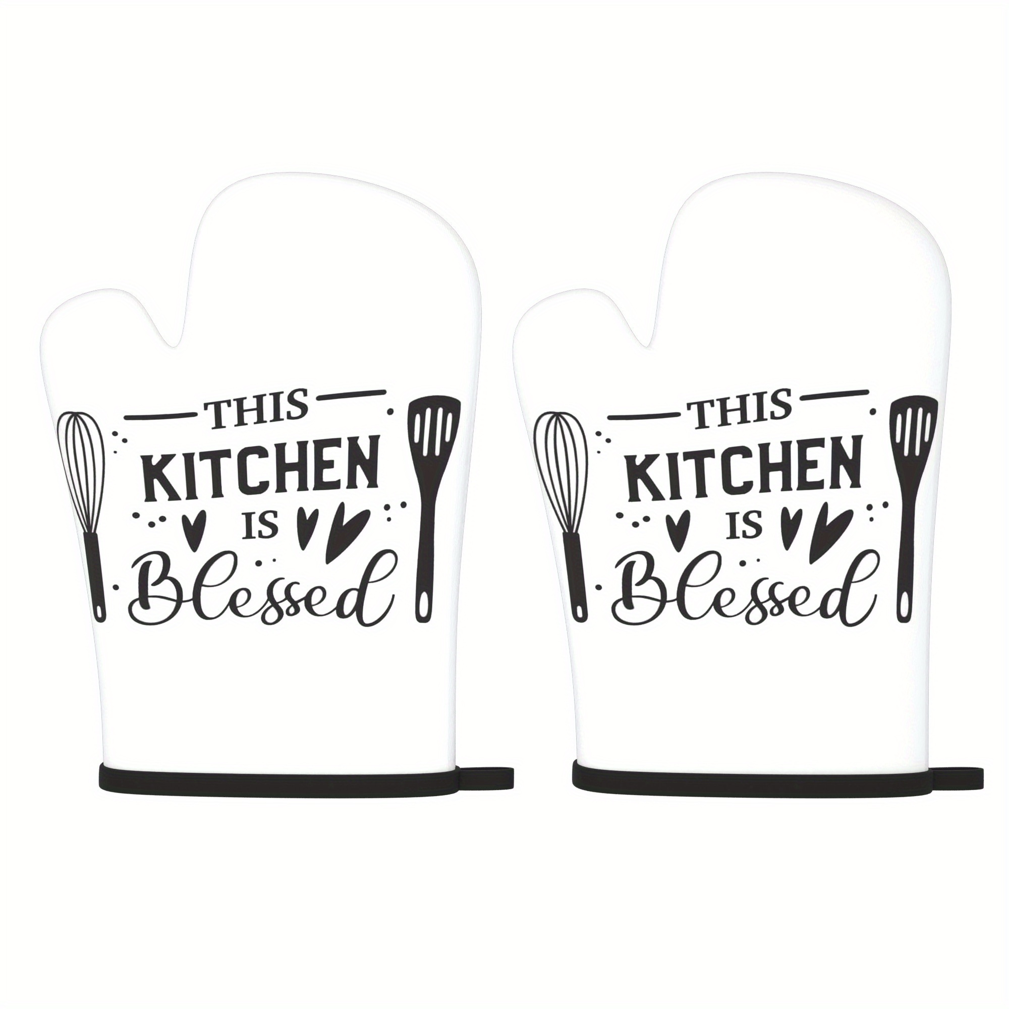 2pcs 26.92*17.02 cm Heat Resistant Kitchen Oven Gloves plaid simple slogan white