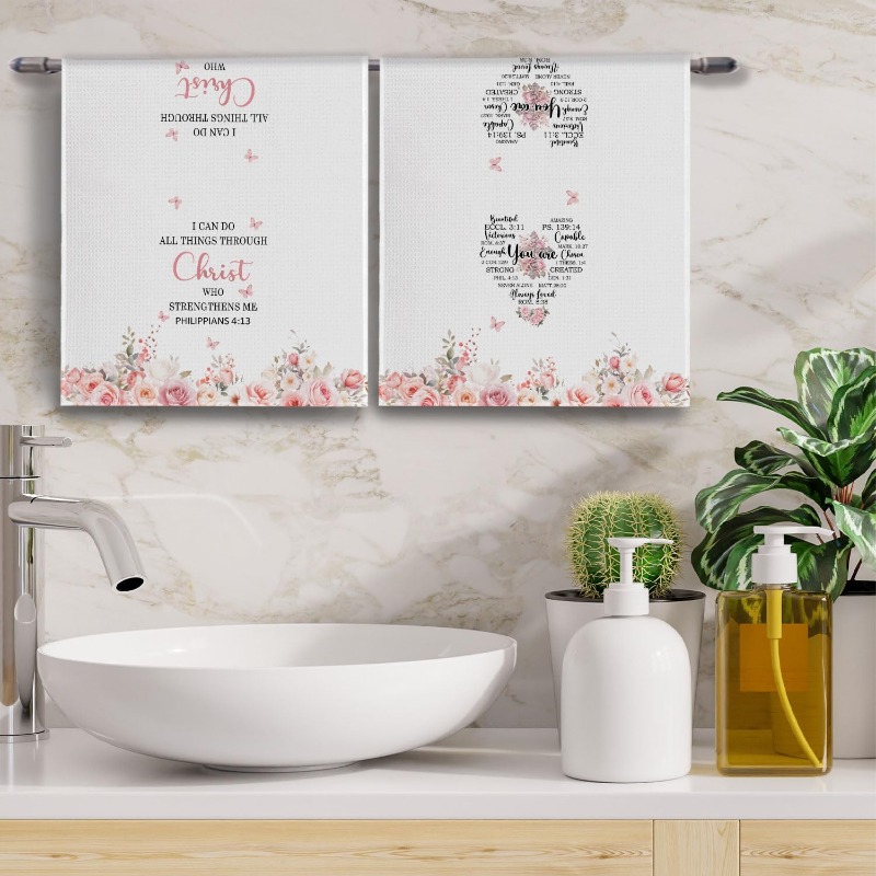 2pcs 45.72*66.04 cm Christian Kitchen Towels | Inspirational Bible Verse Floral