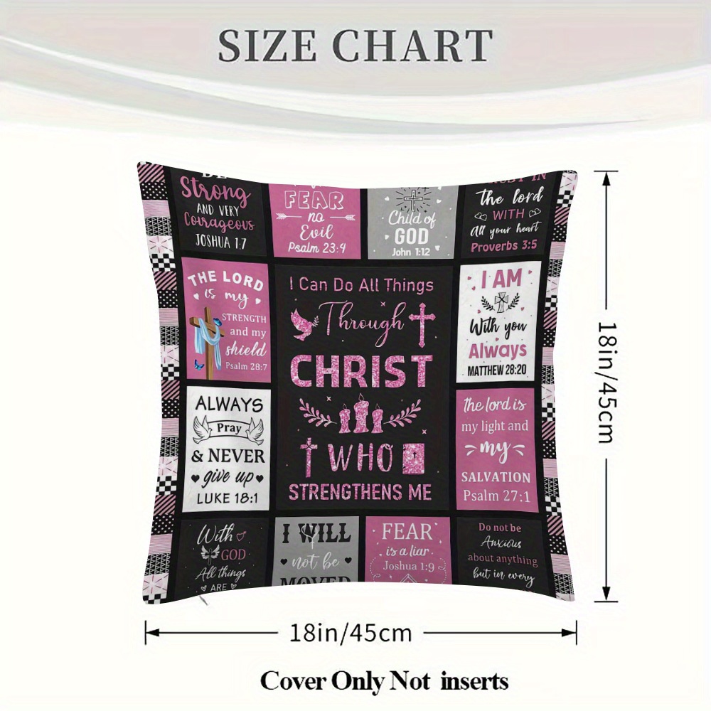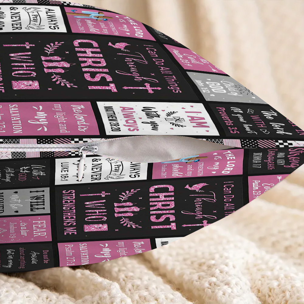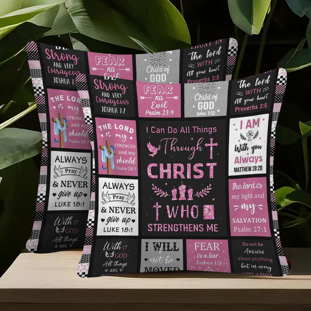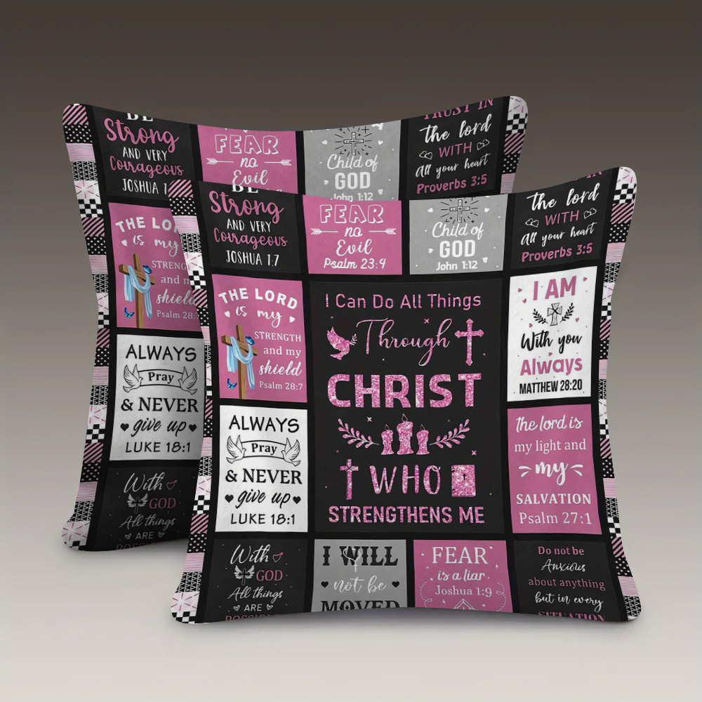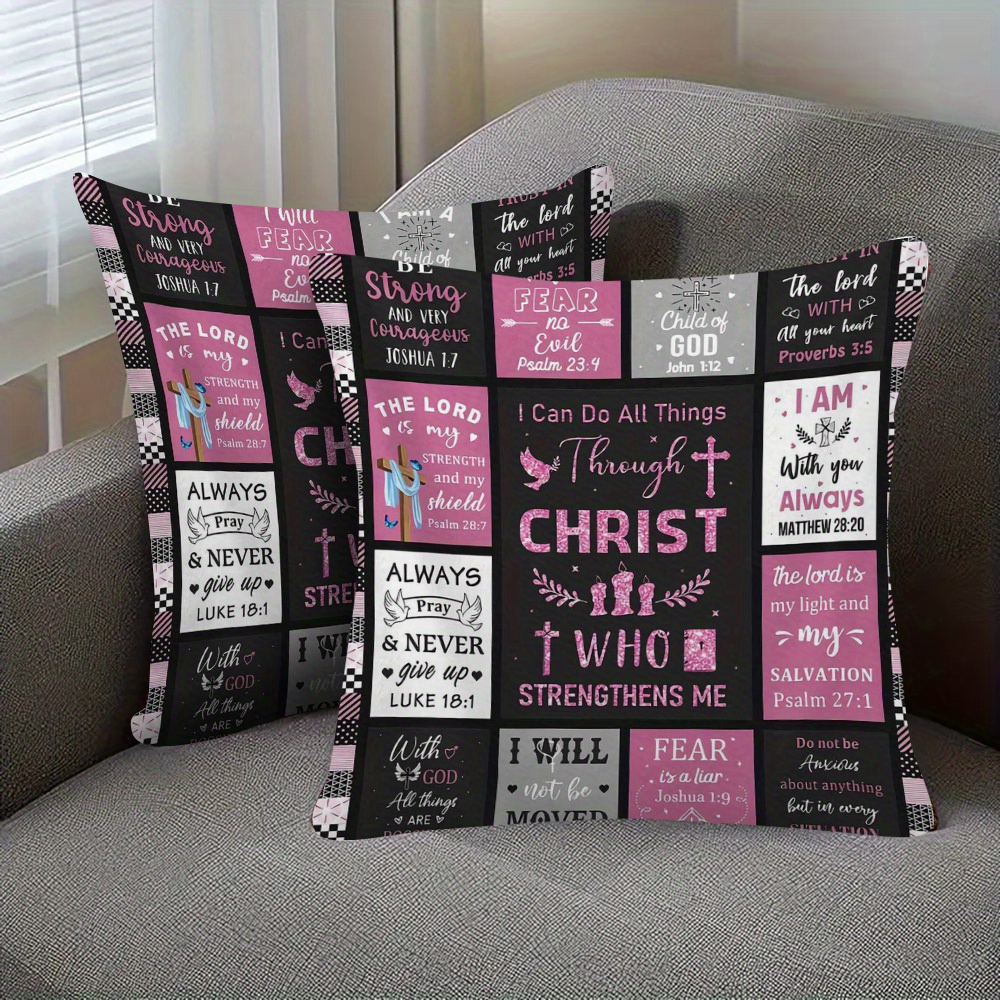 2pcs Christian Bible Verse Throw Pillow Covers - Pink & Black Plush Double-Sided