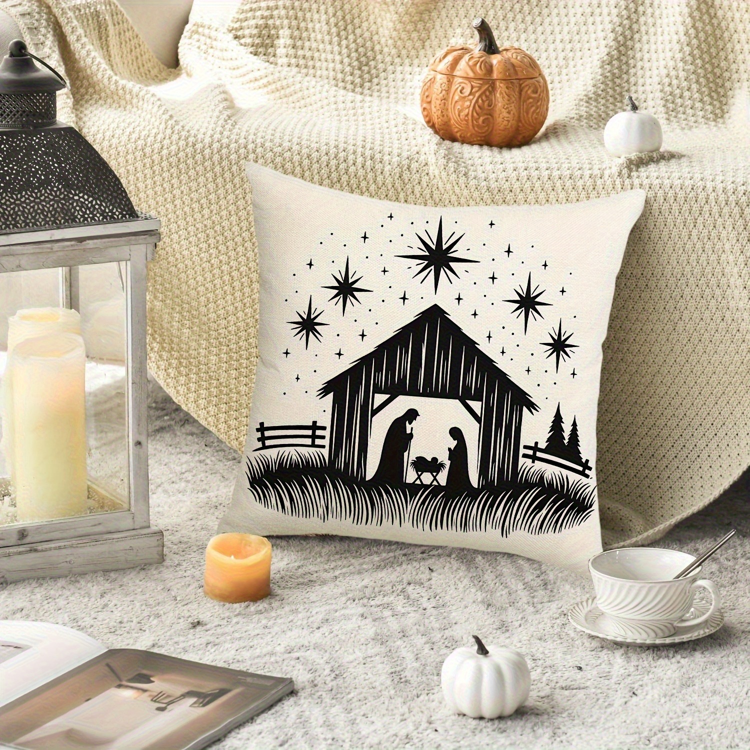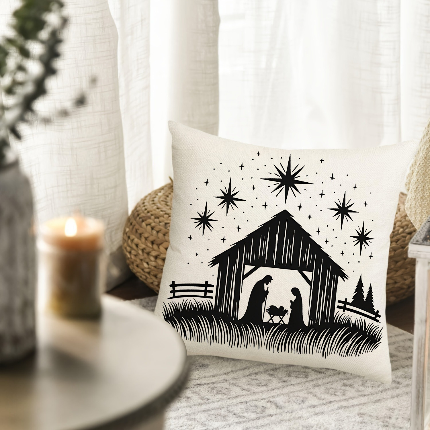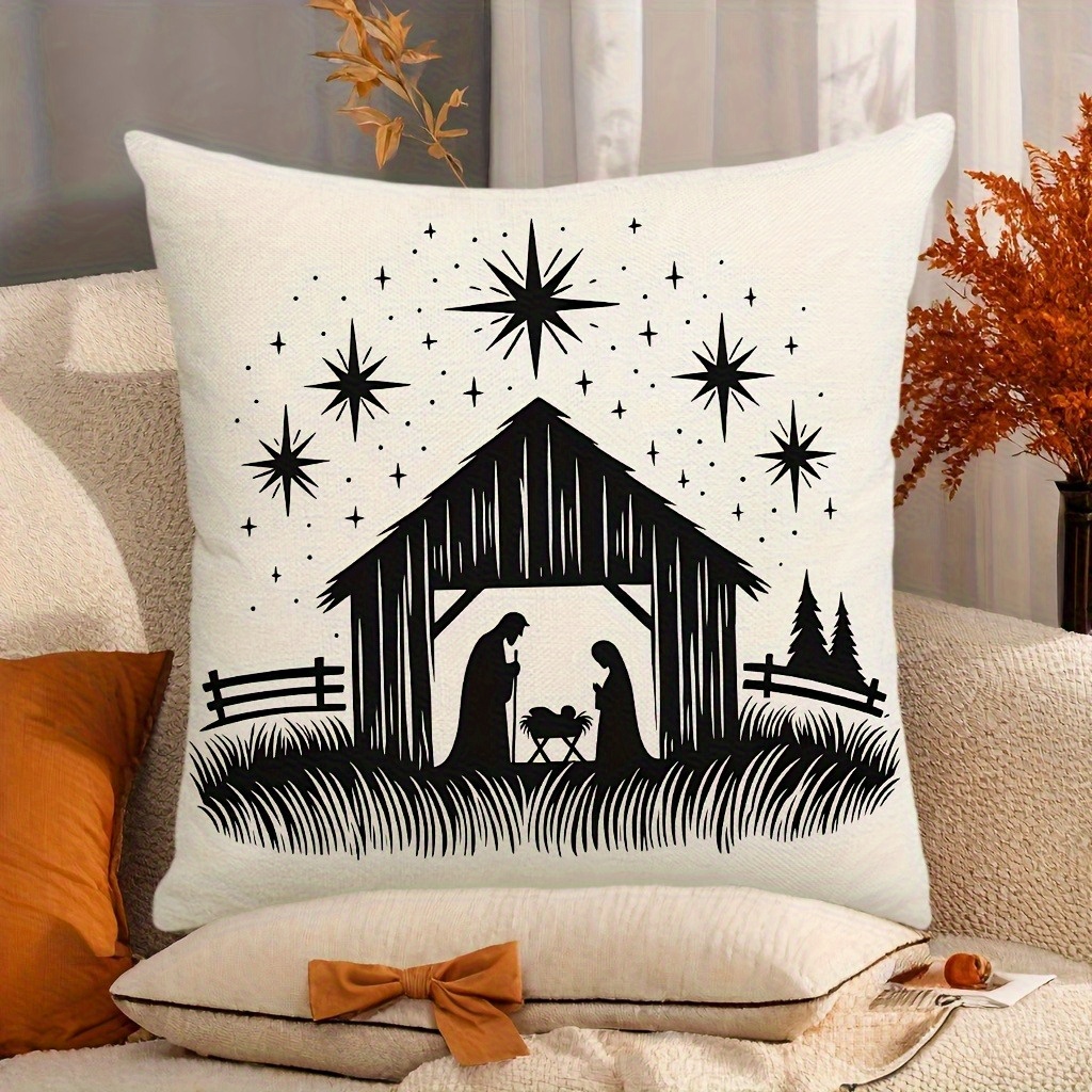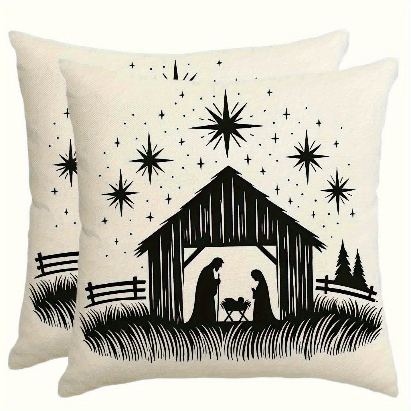 2pcs Christian Silhouette Pillow Covers - Black & White Starry Night Design with