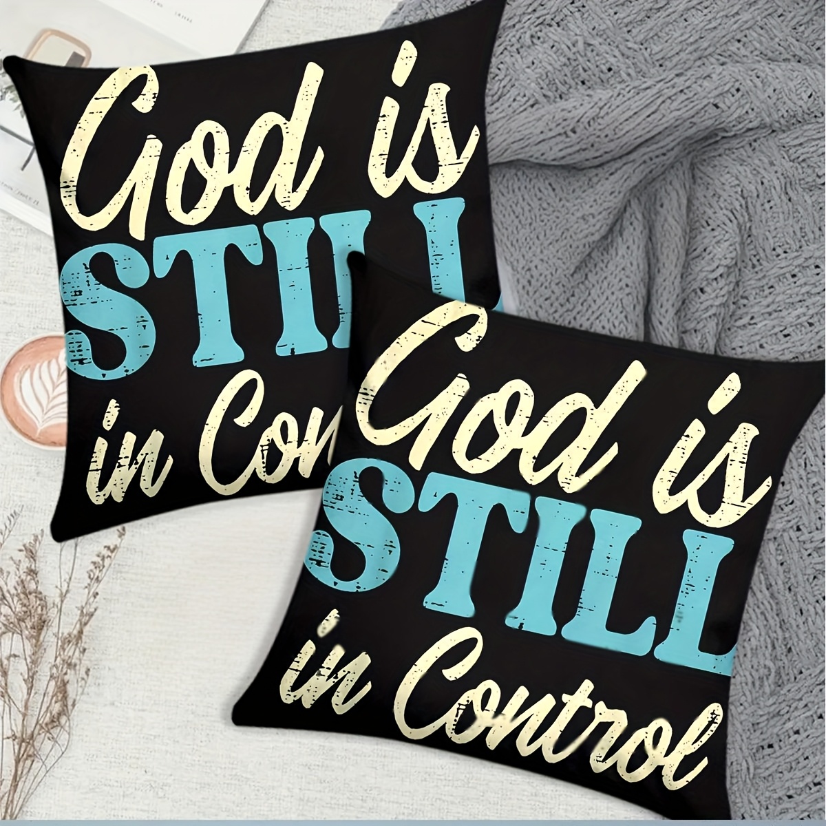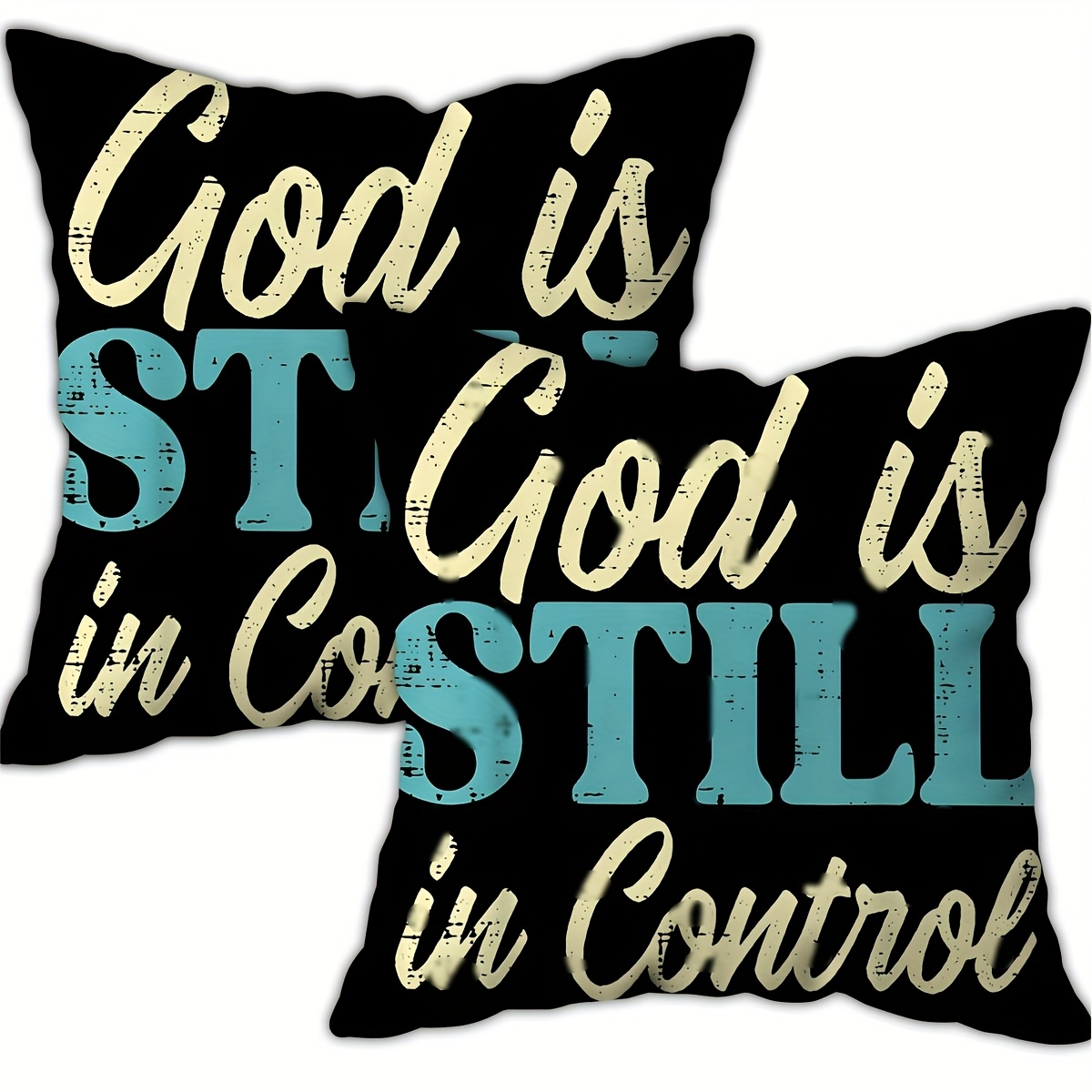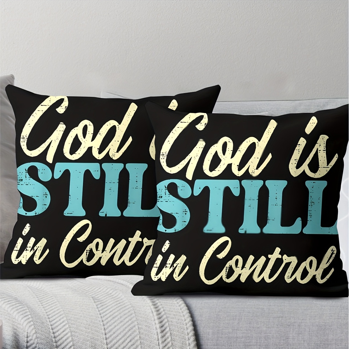 2pcs Christian Throw Pillow Covers - God is Still in Control & in Control Religi