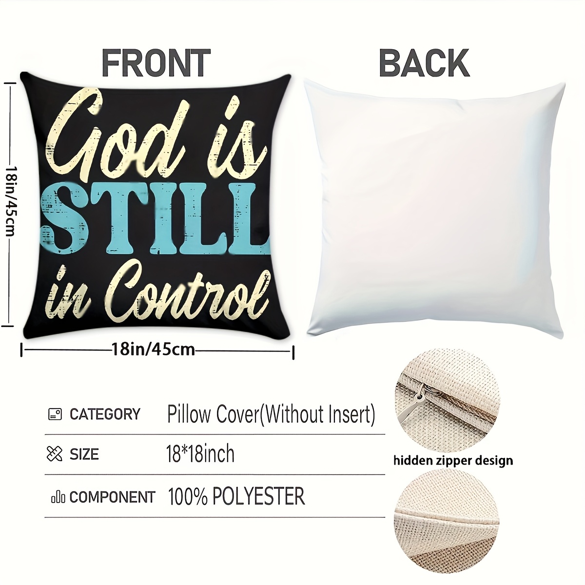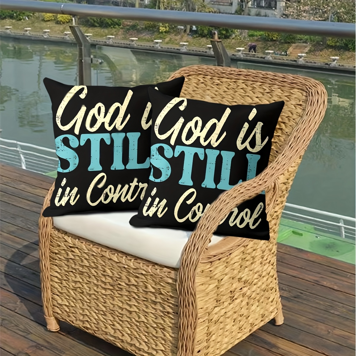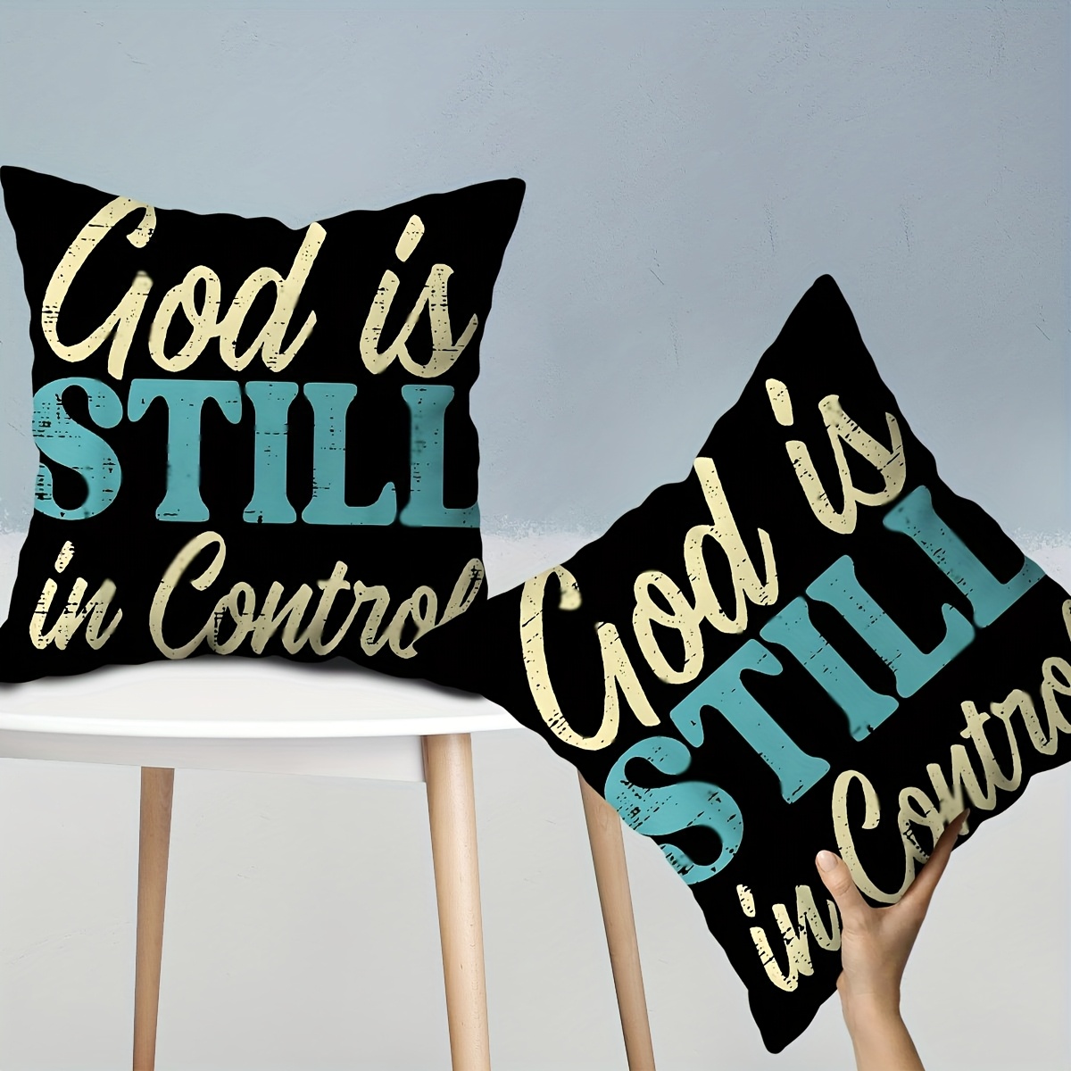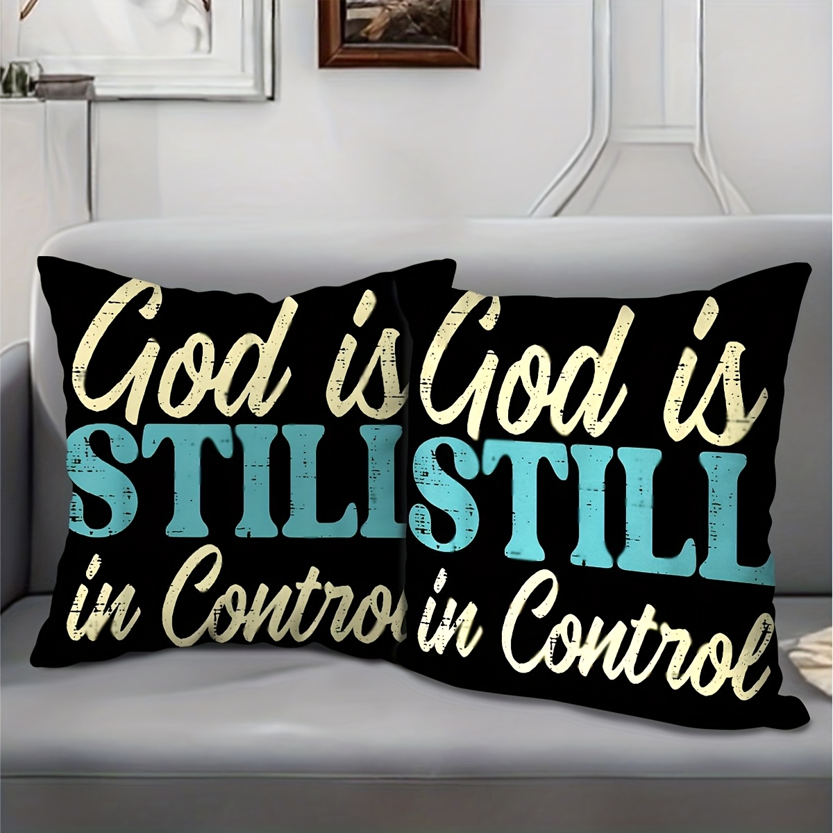 2pcs Christian Throw Pillow Covers - God is Still in Control & in Control Religi