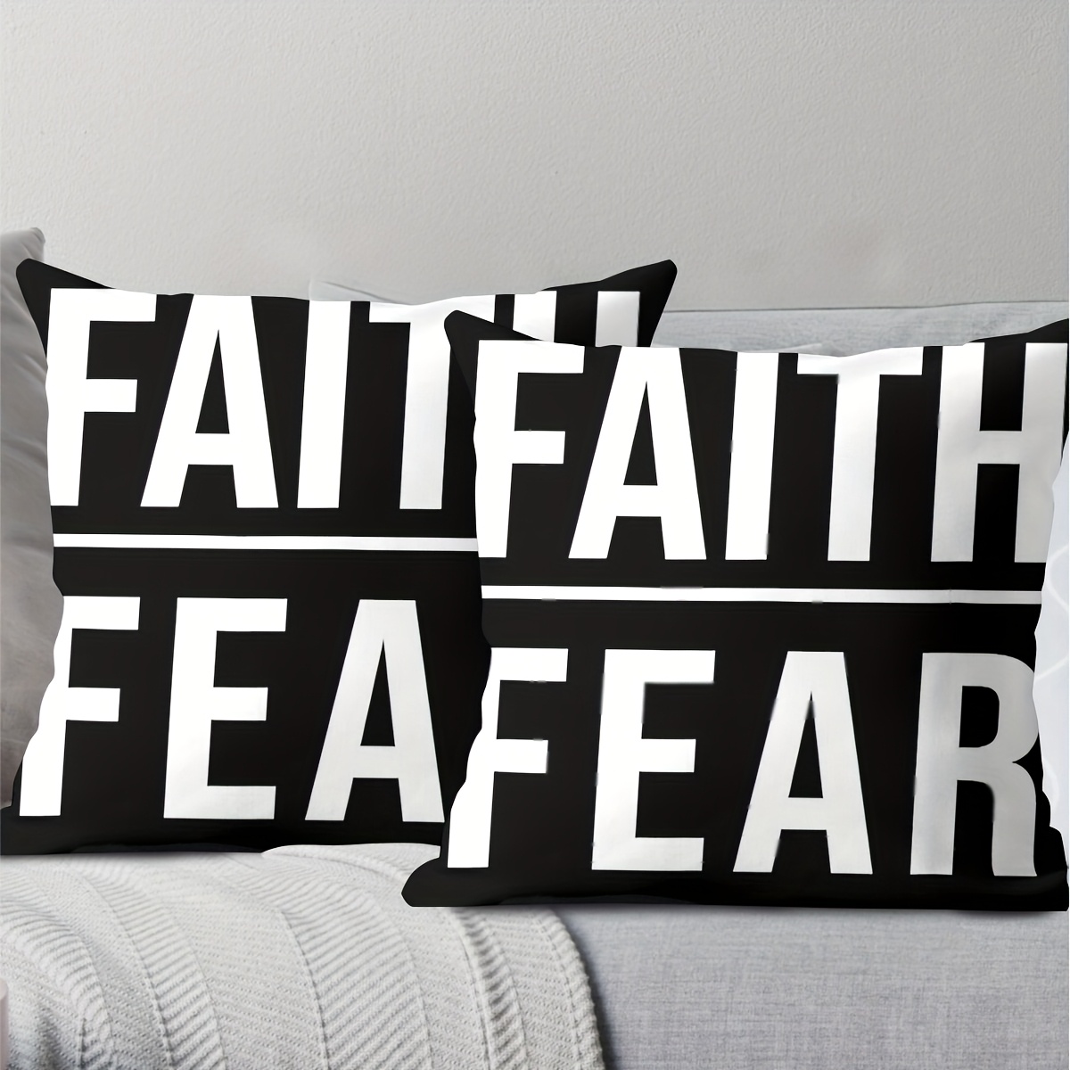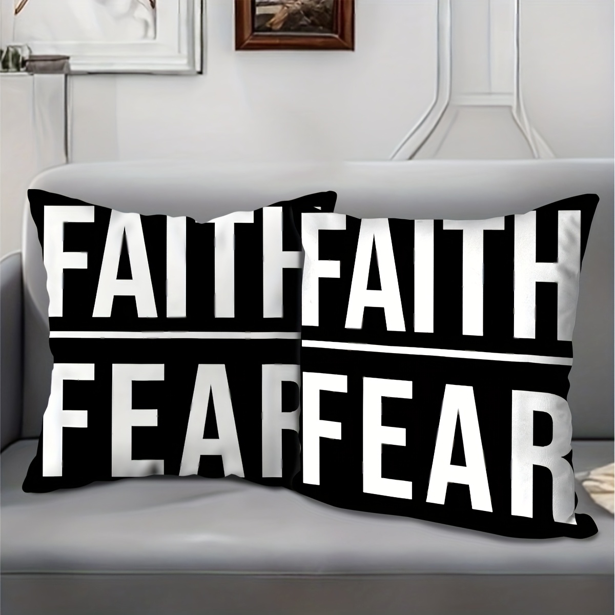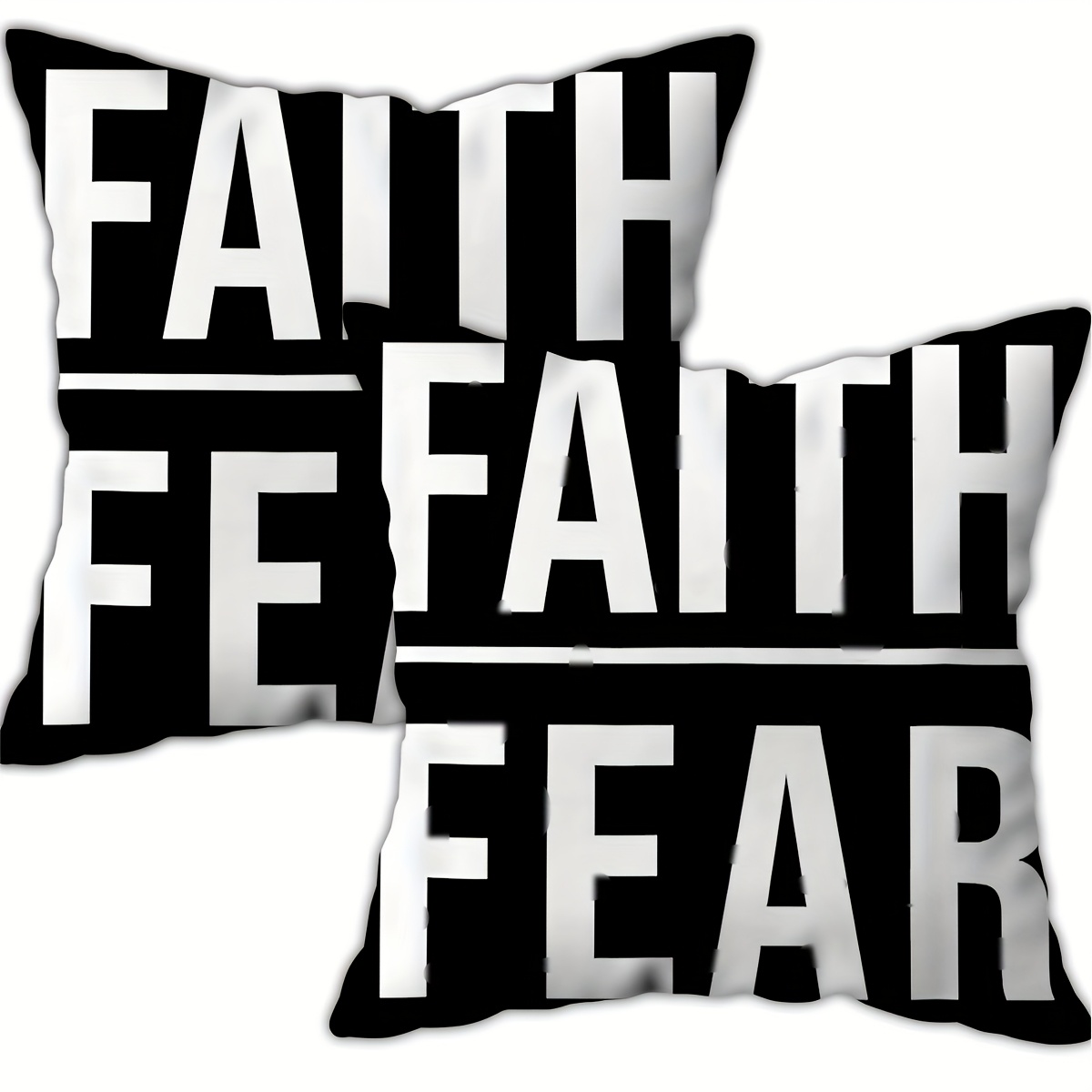 2pcs Faith Over Fear Christian Throw Pillow Covers - Faith-Based Bible Verse Hom