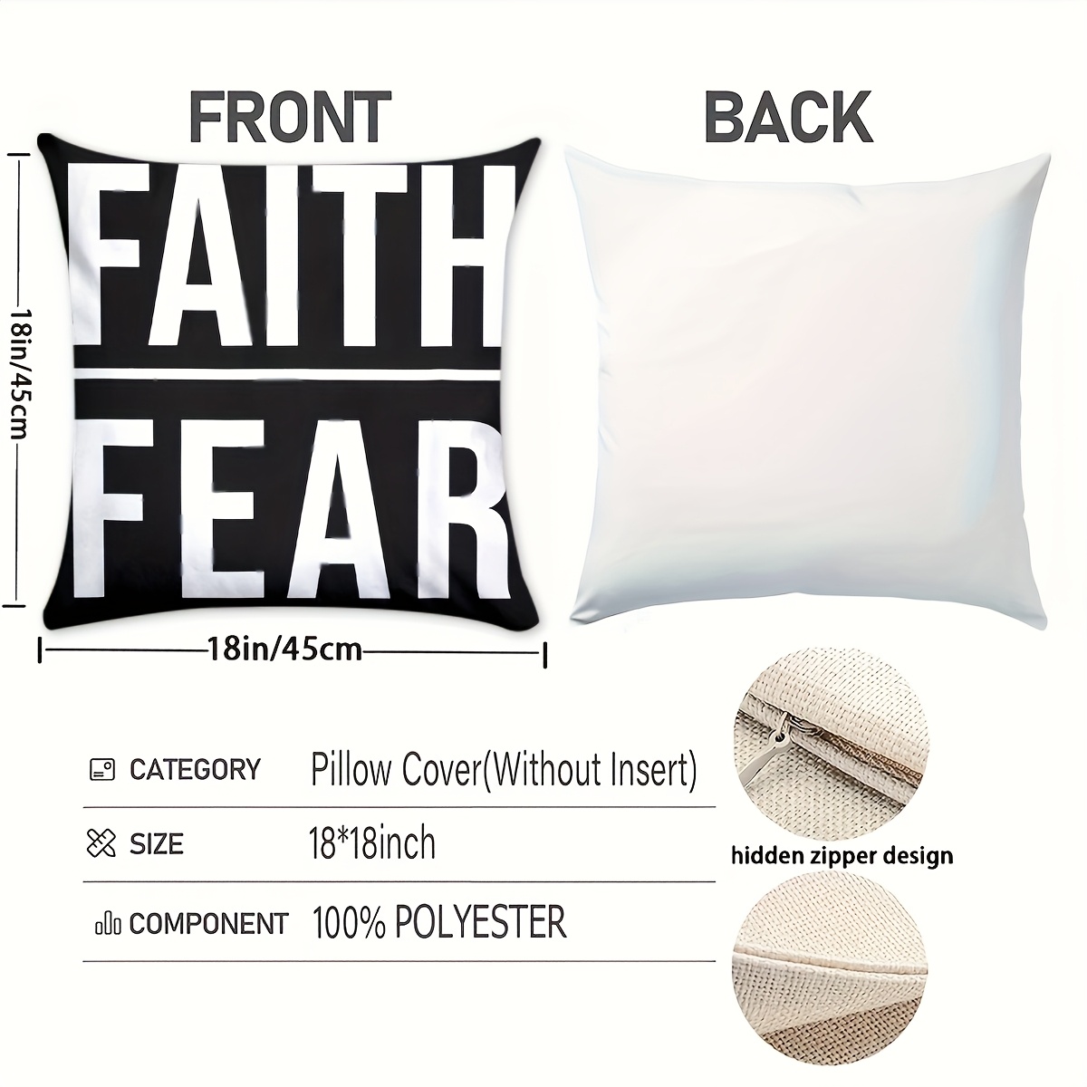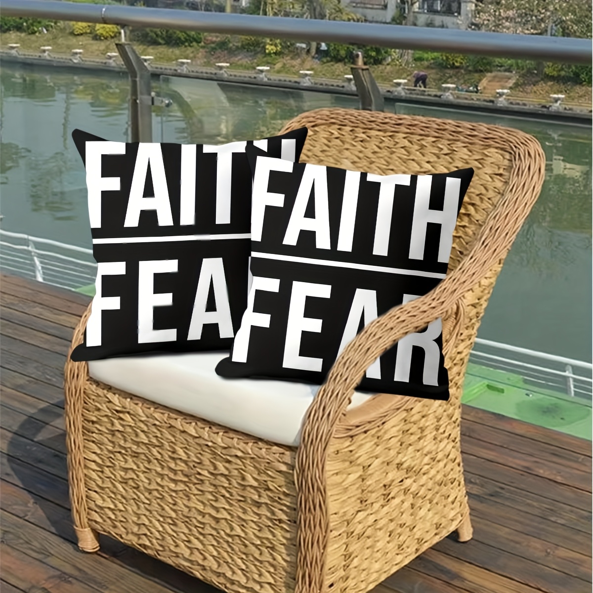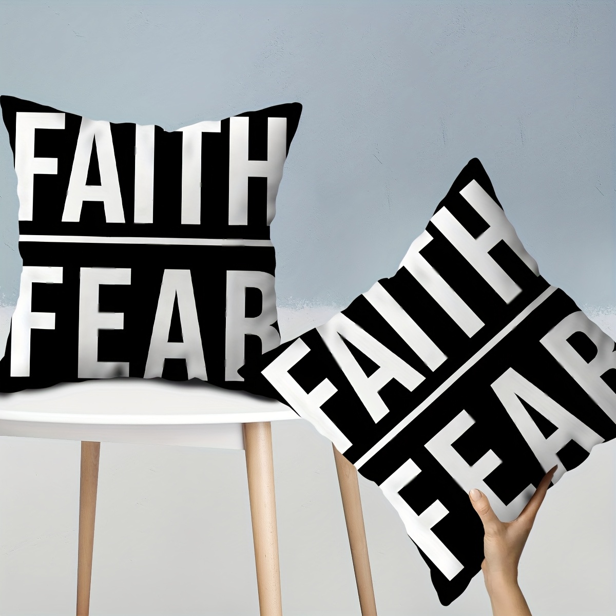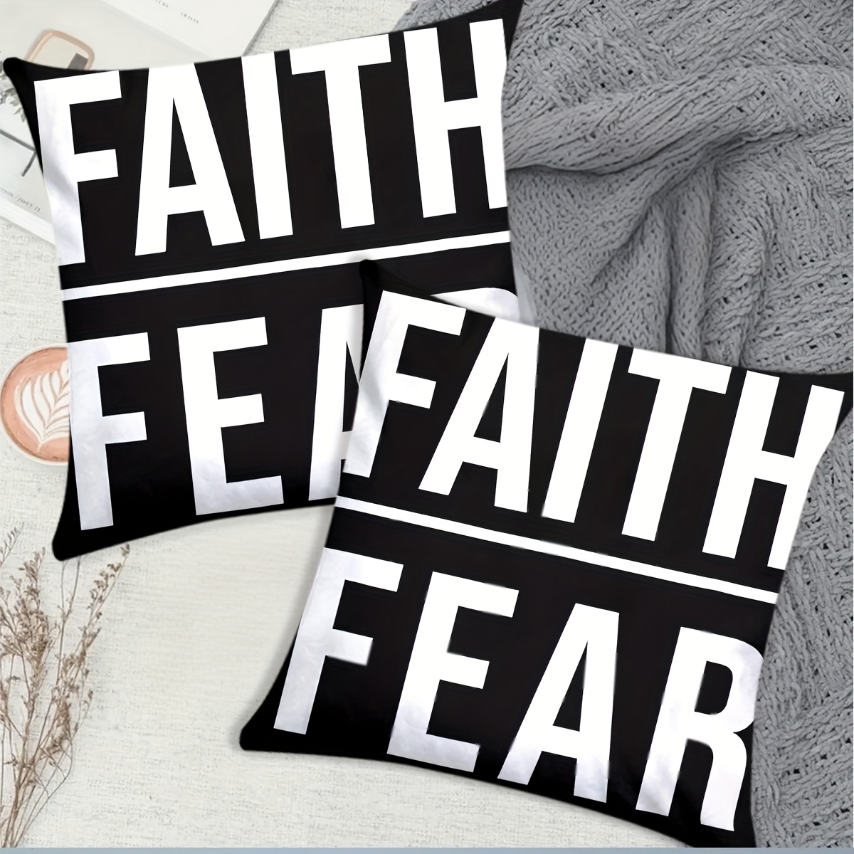 2pcs Faith Over Fear Christian Throw Pillow Covers - Faith-Based Bible Verse Hom