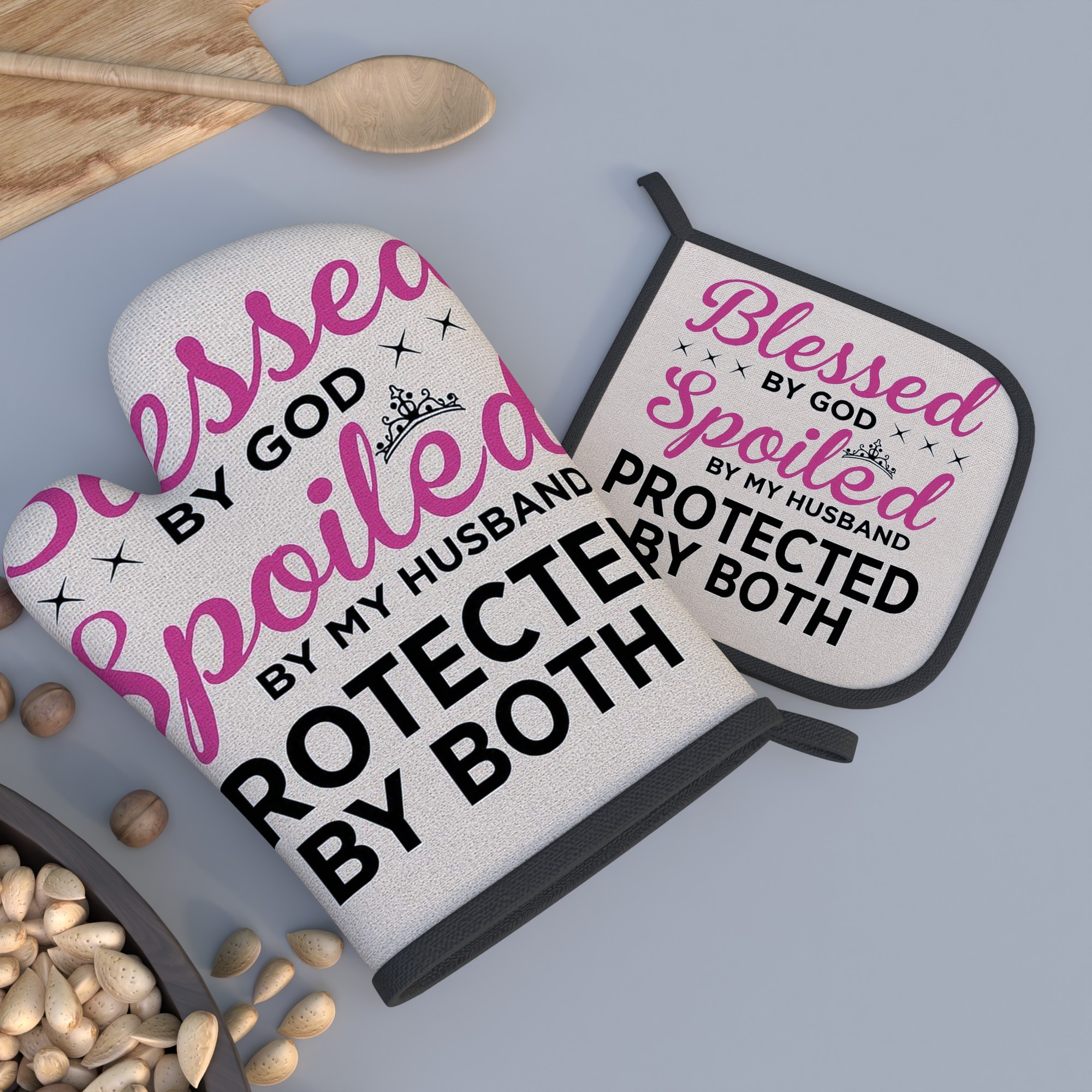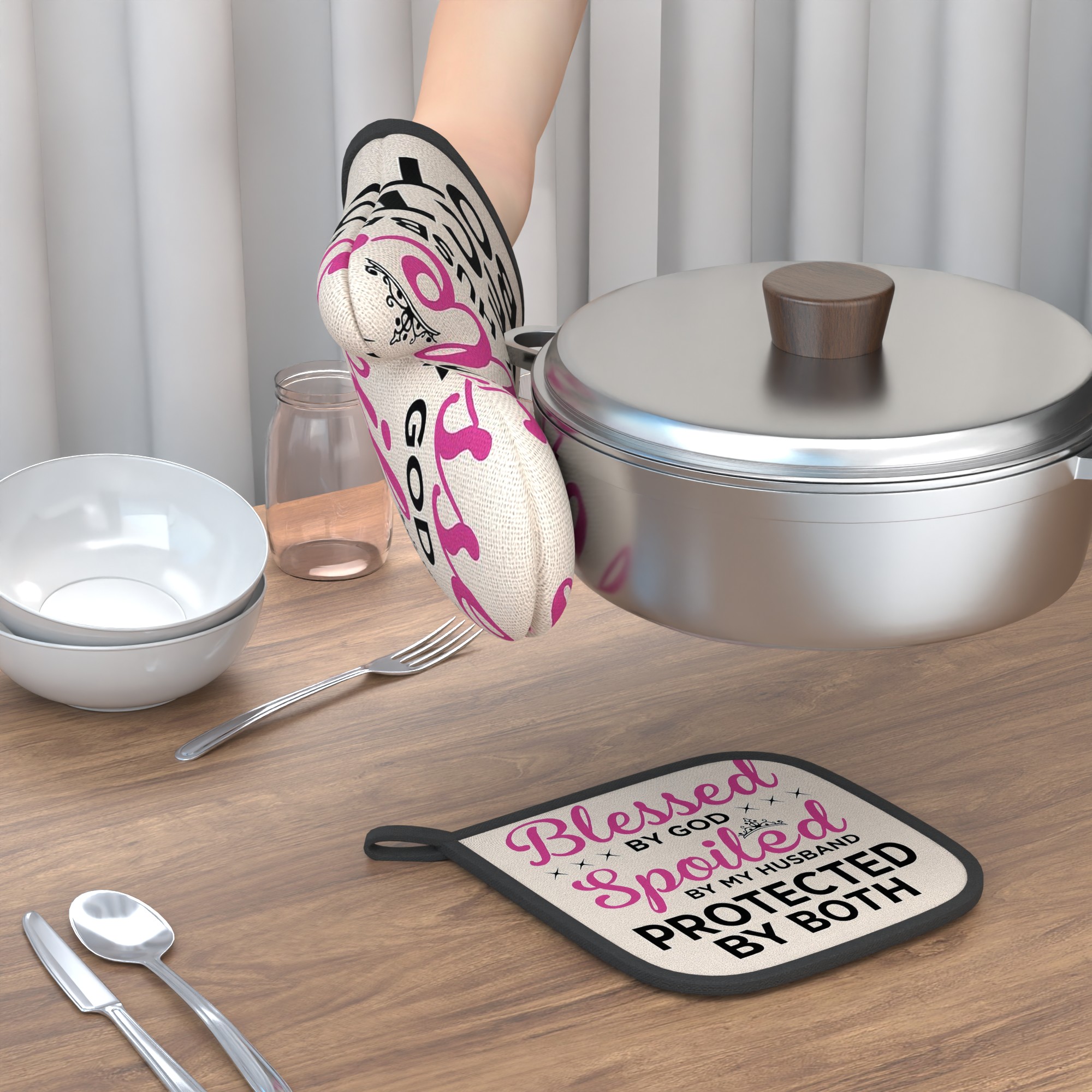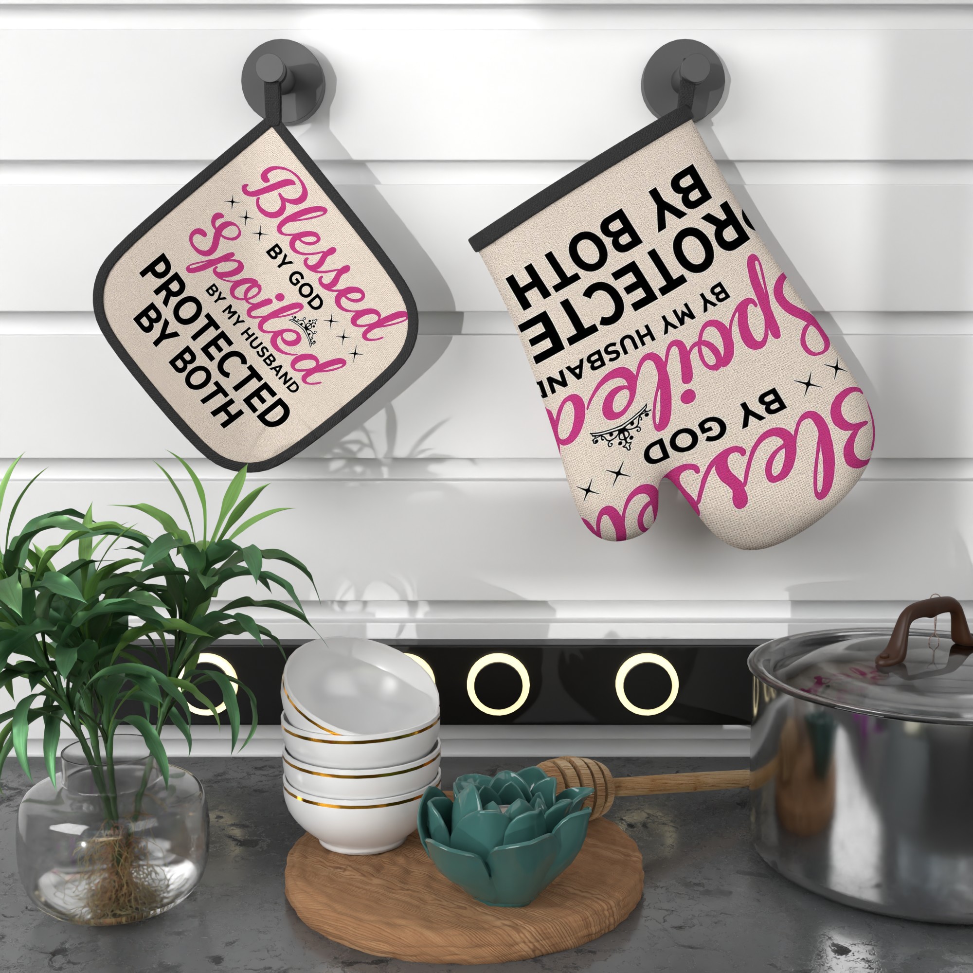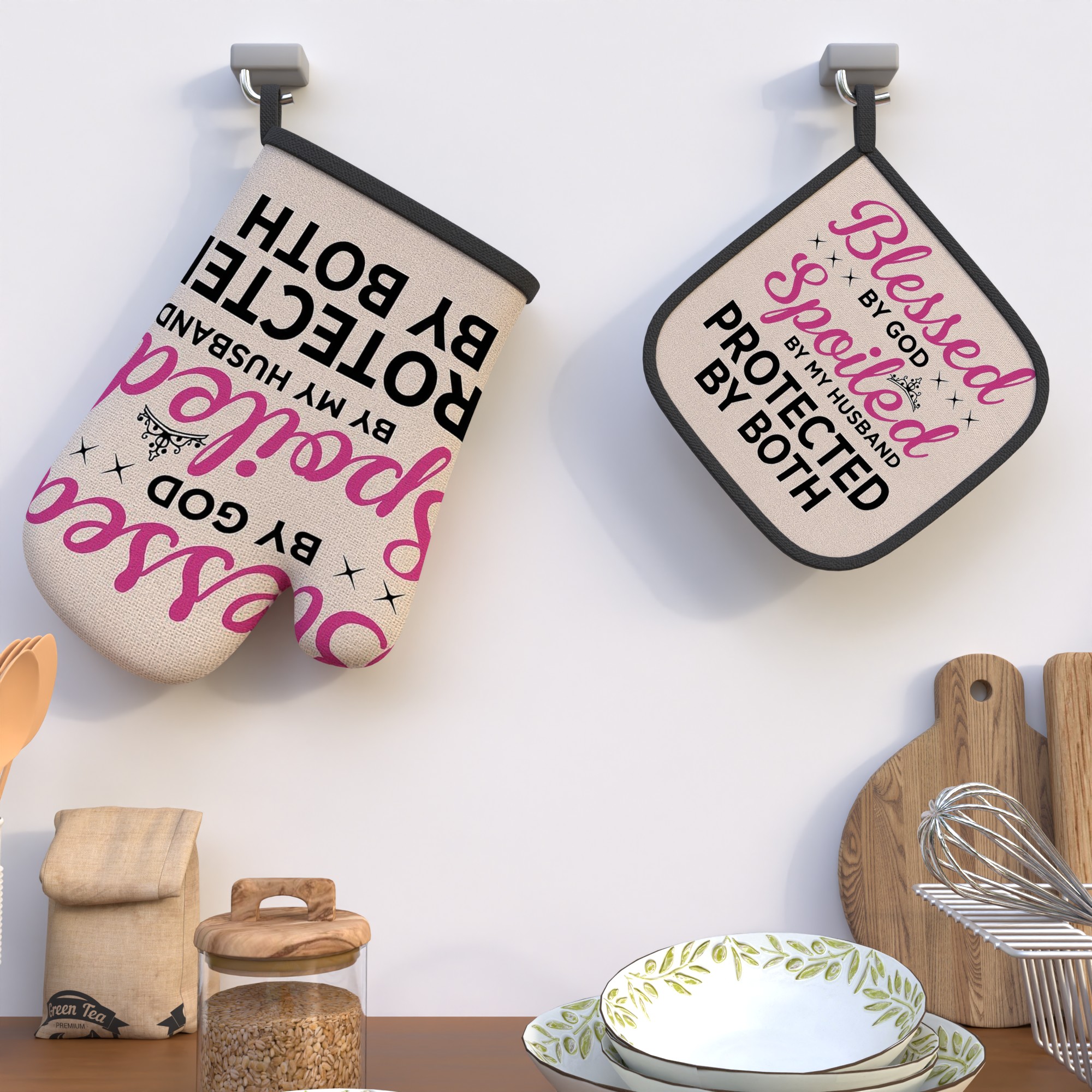 2pcs Heat-Resistant Oven Mitts & Pot Holders - 26.92x17.02 cm Black & Pink Kitch