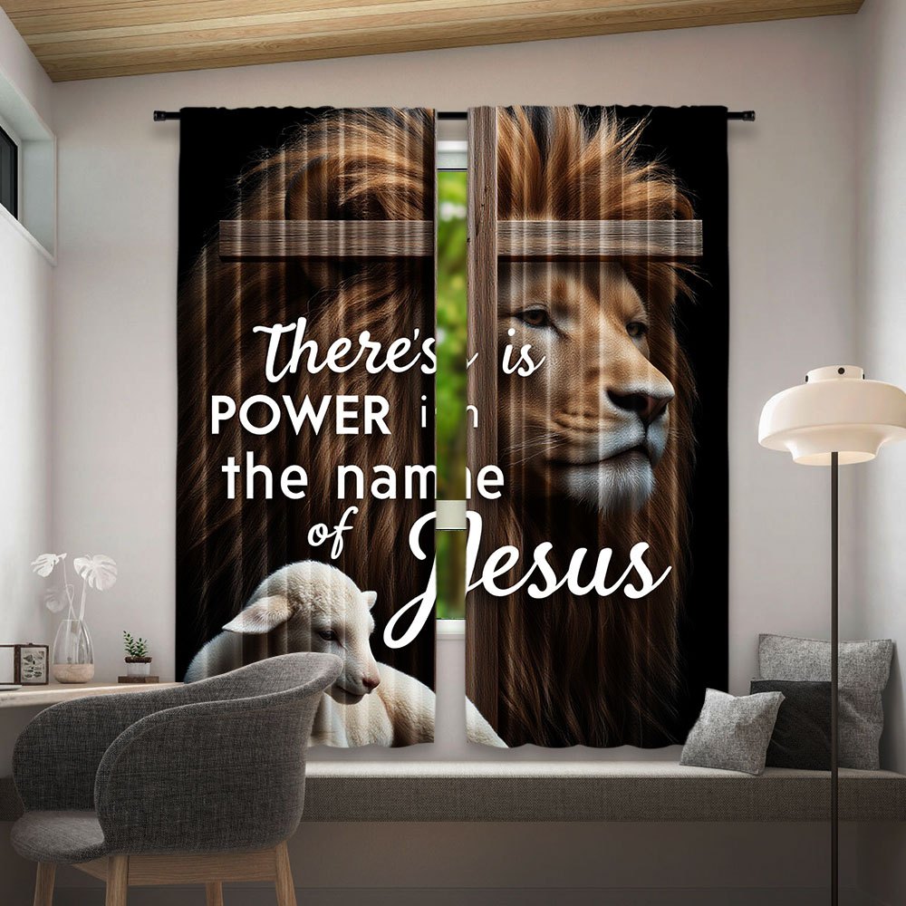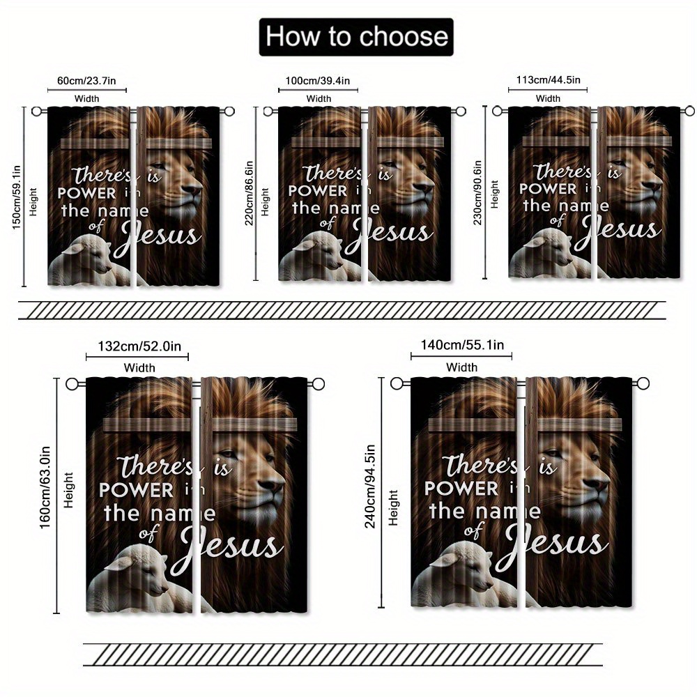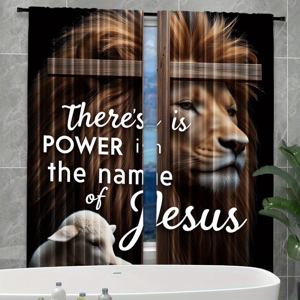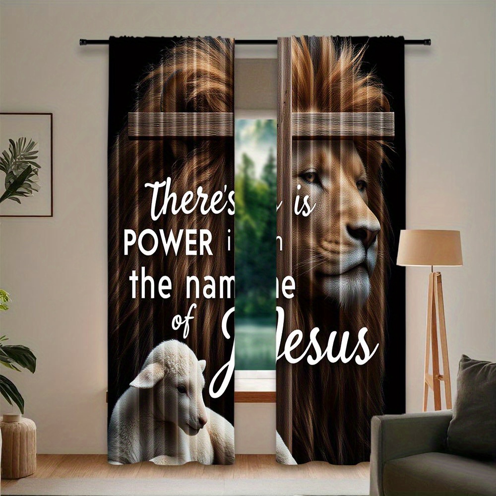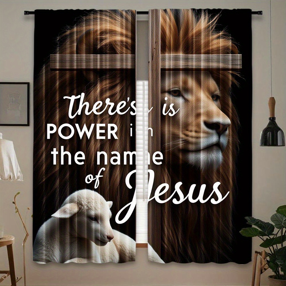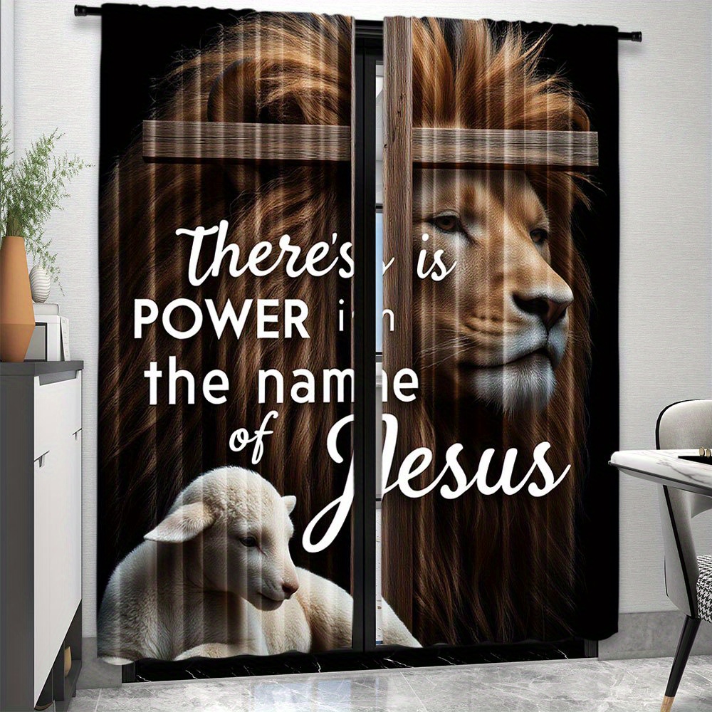 2pcs Lion & Lamb Jesus Christ Power Curtains - Stylish Black Polyester with Gold