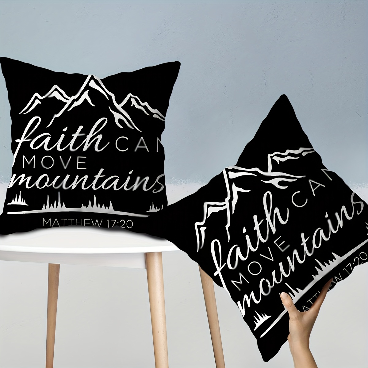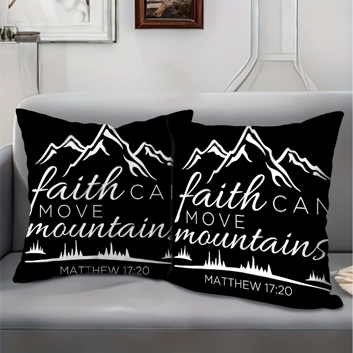 2pcs Matthew 17:20 Bible Verse Throw Pillow Covers - Faith Can Move Mountains Ch