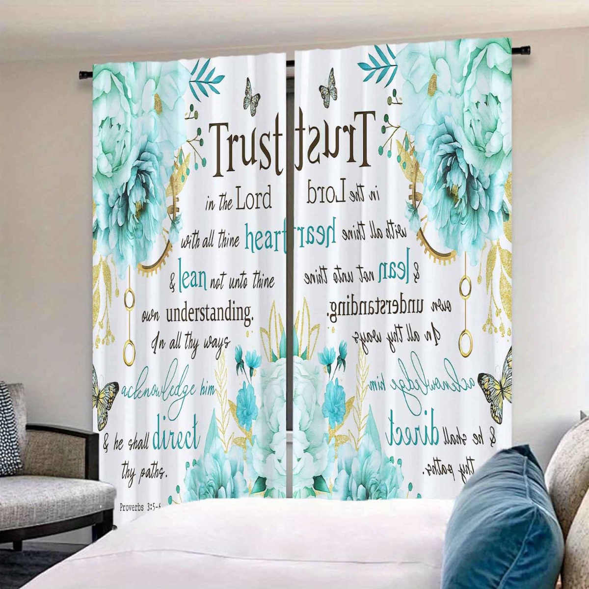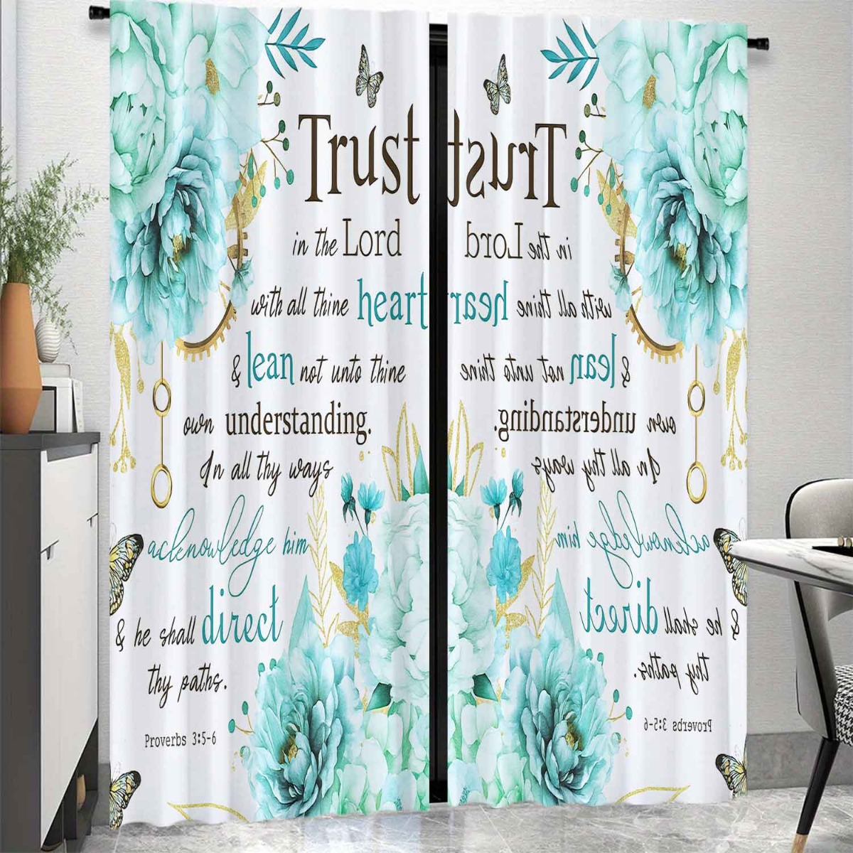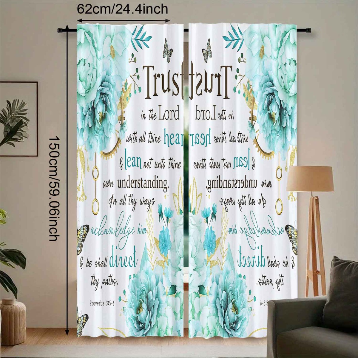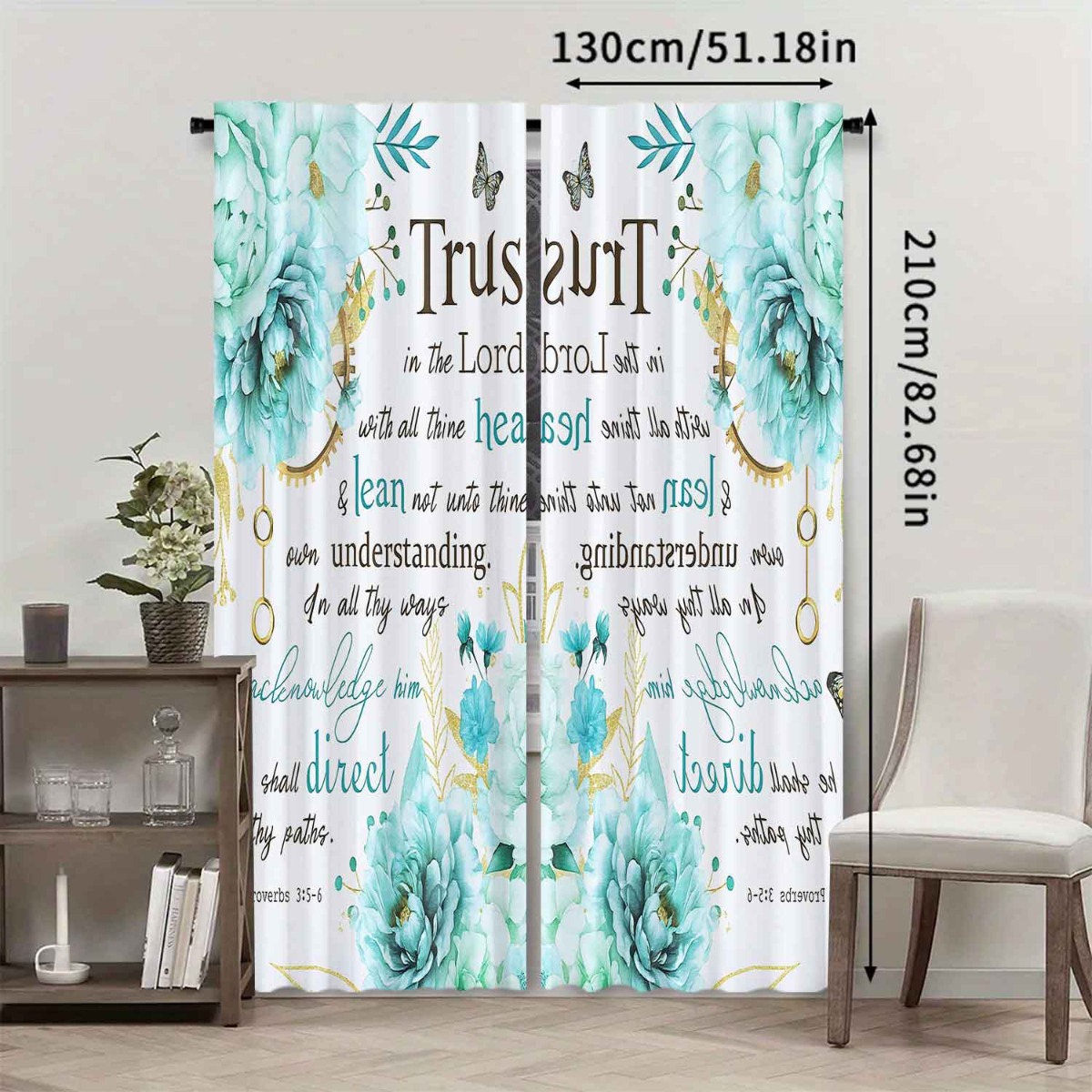 2pcs Verse Curtains with Trust in the Lord Scripture (Psalm 23) - Turquoise Blue