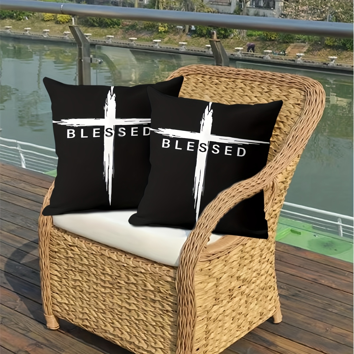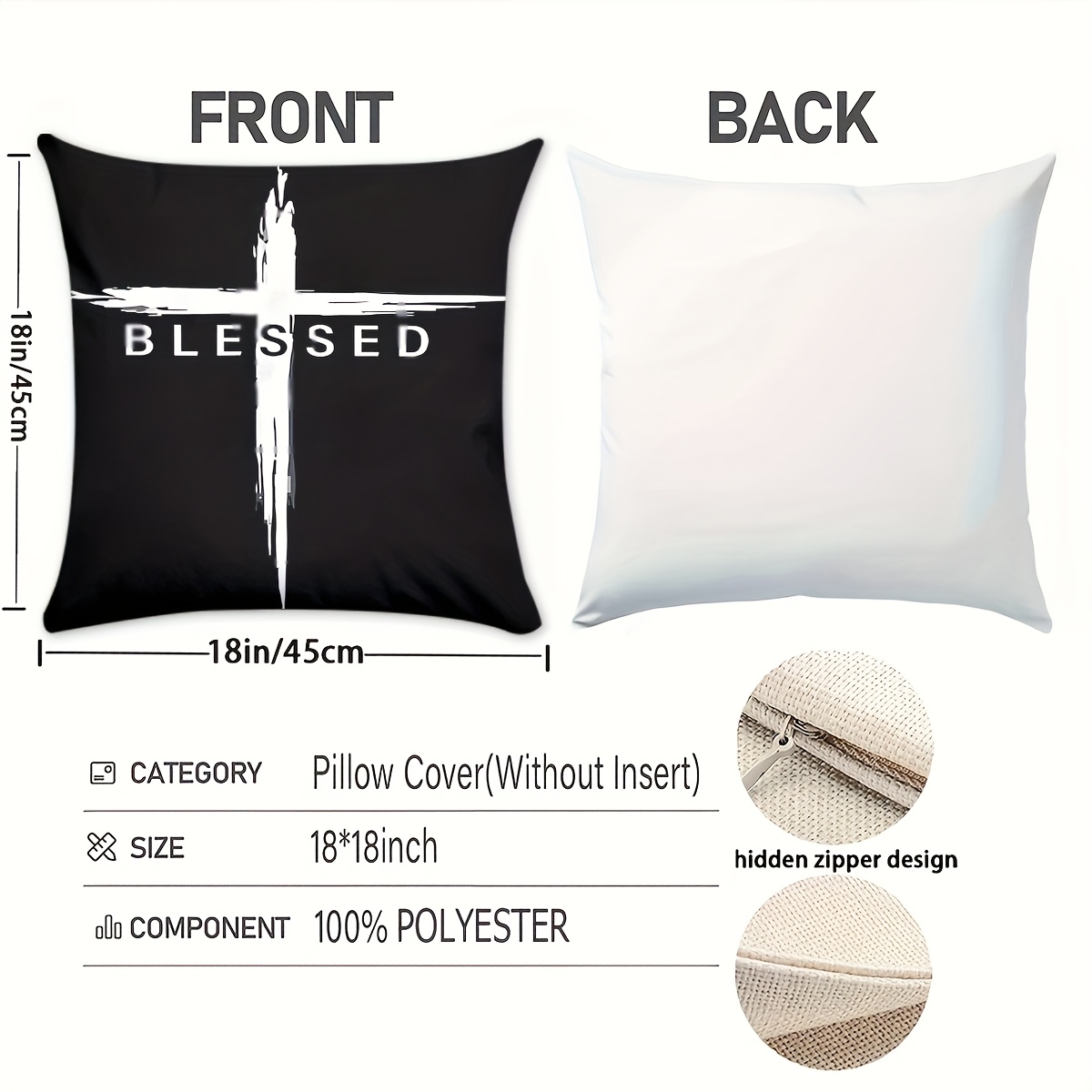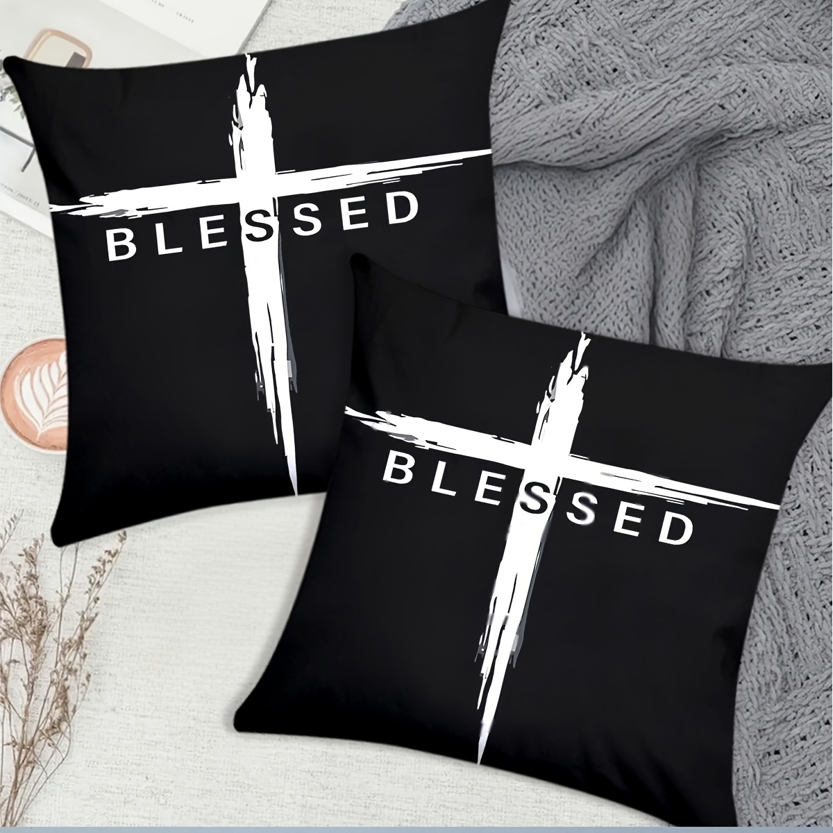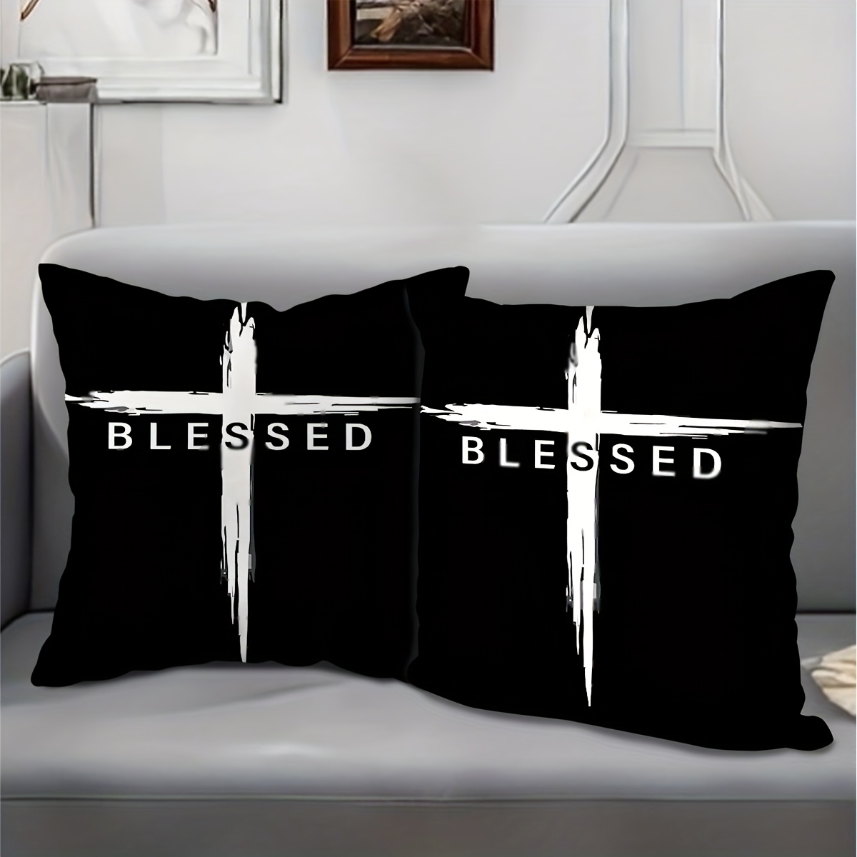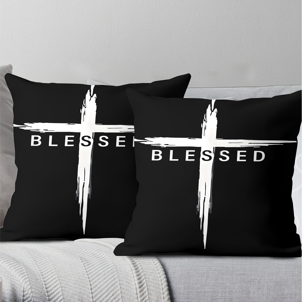 2pcs Vintage Christian Cross & Jesus Christ Blessed Print Pillowcases, 45.72cm S
