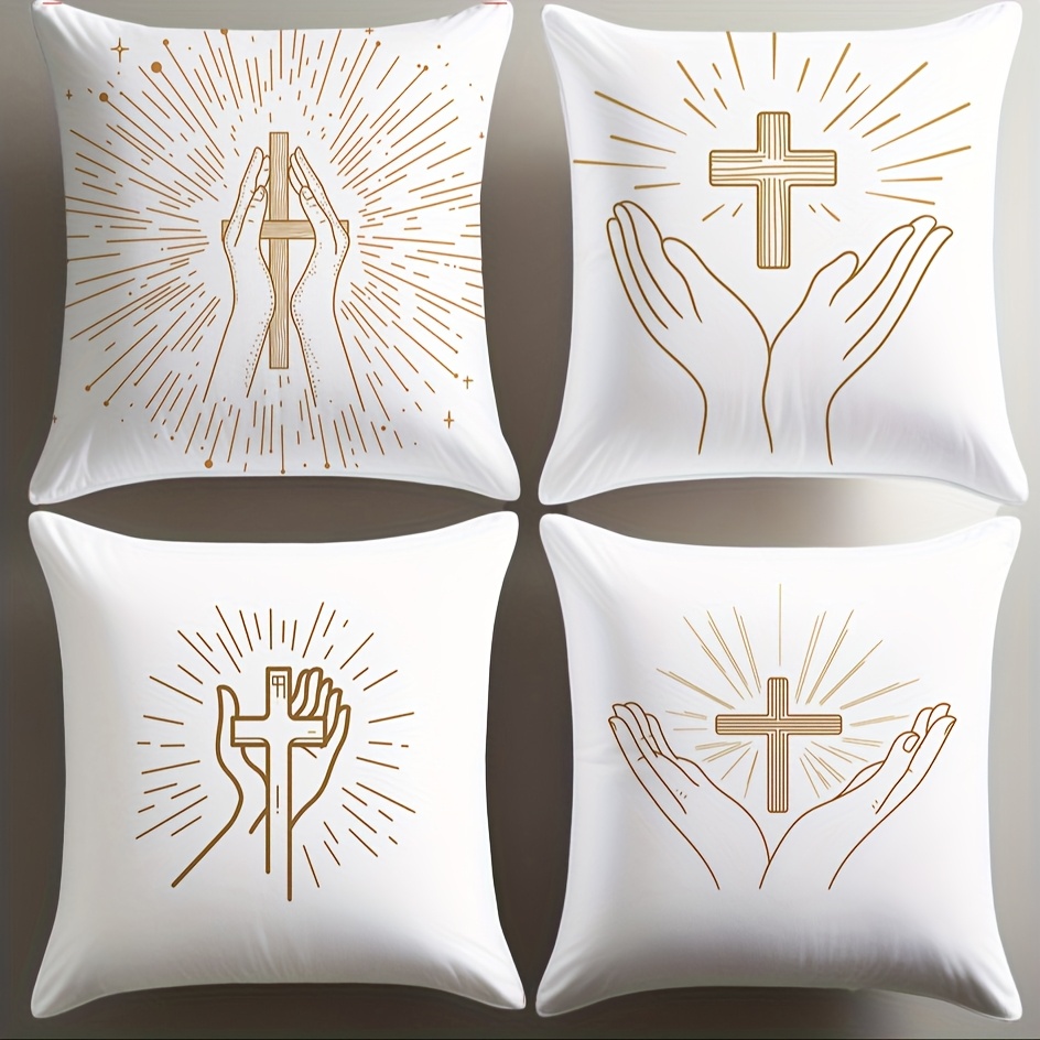 4pcs Christian Faith Pillow Covers, 45.01cm Square, Soft Polyester, Zippered, Ha