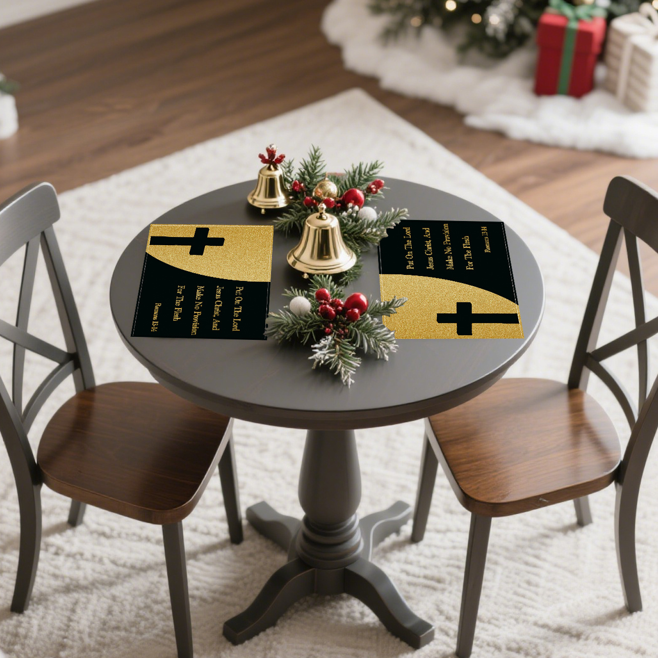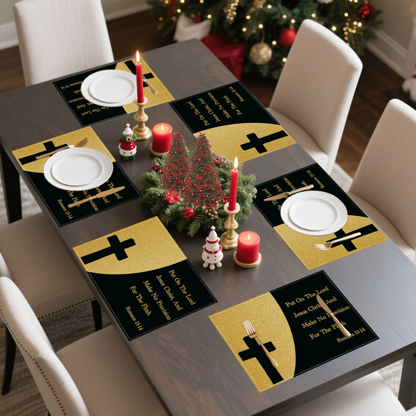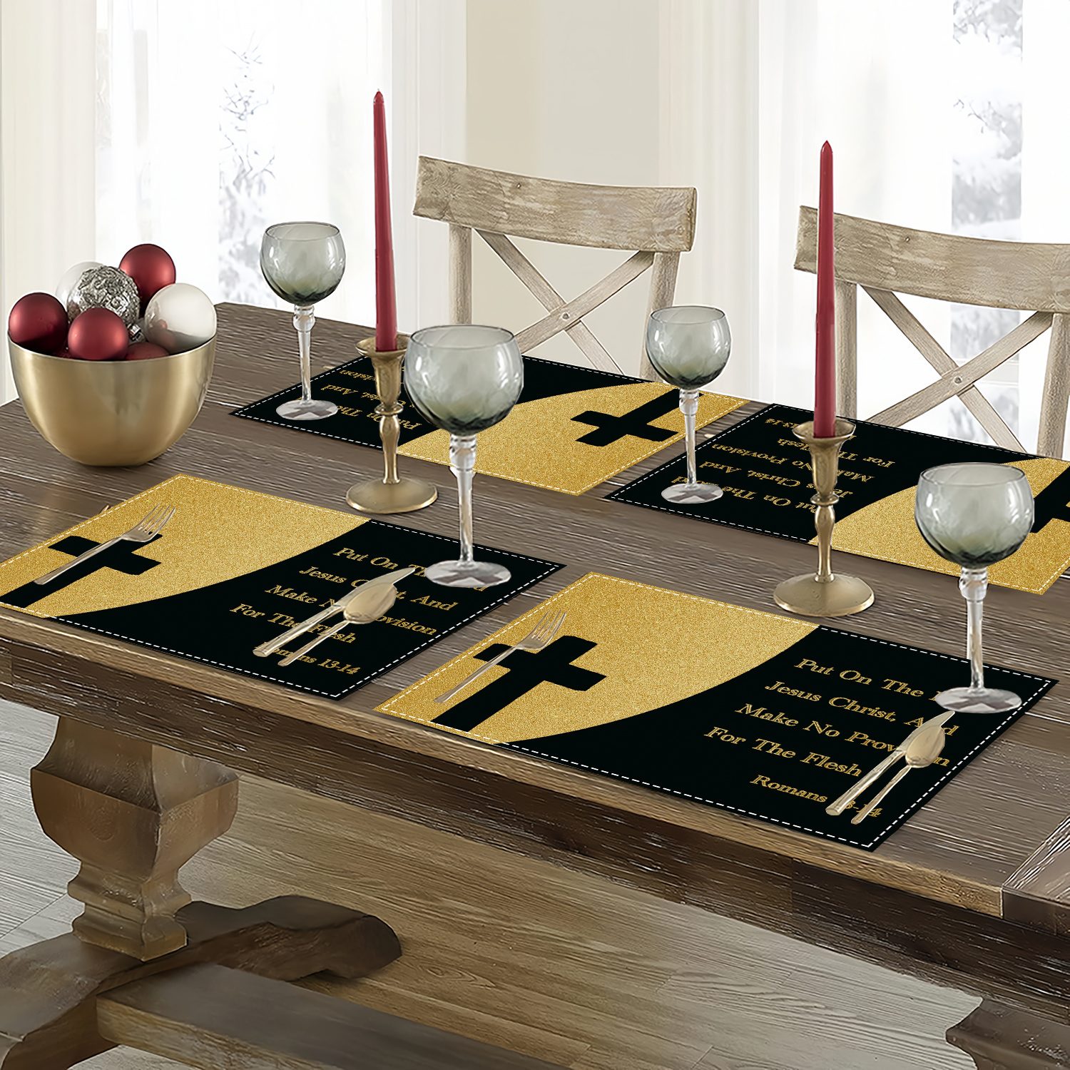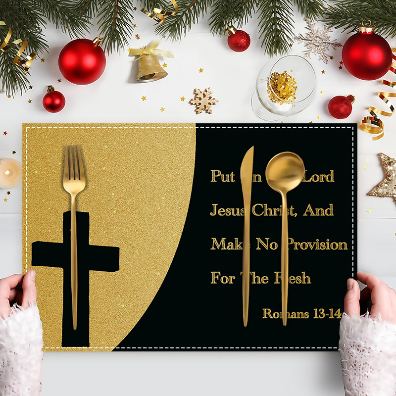 4pcs Christian Romans Bible Verse Cross Design Linen Placemats, 12x18in/30x45cm,