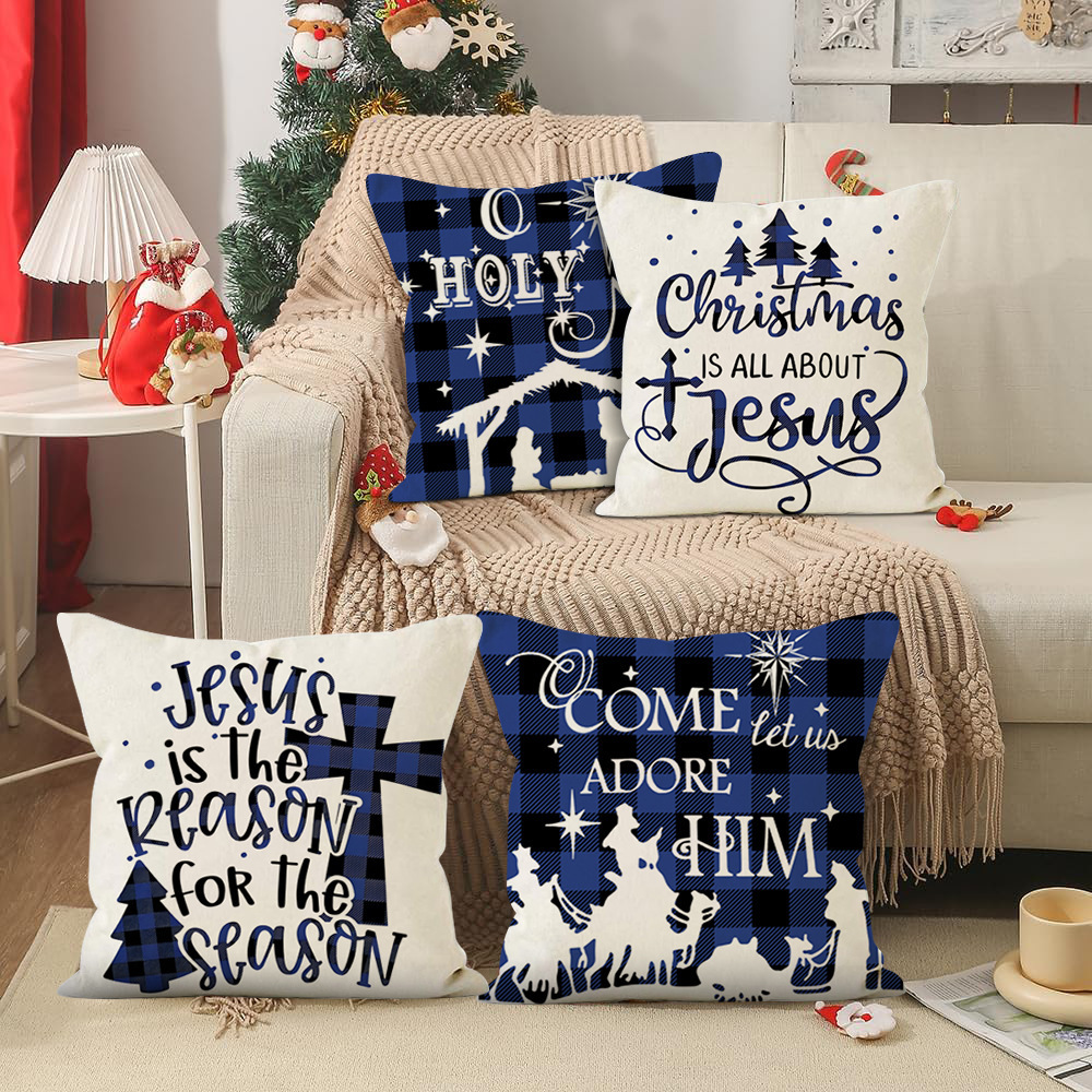 4pcs Christmas Pillow Covers - -Centered Designs with Bible Verse, Scripture & P