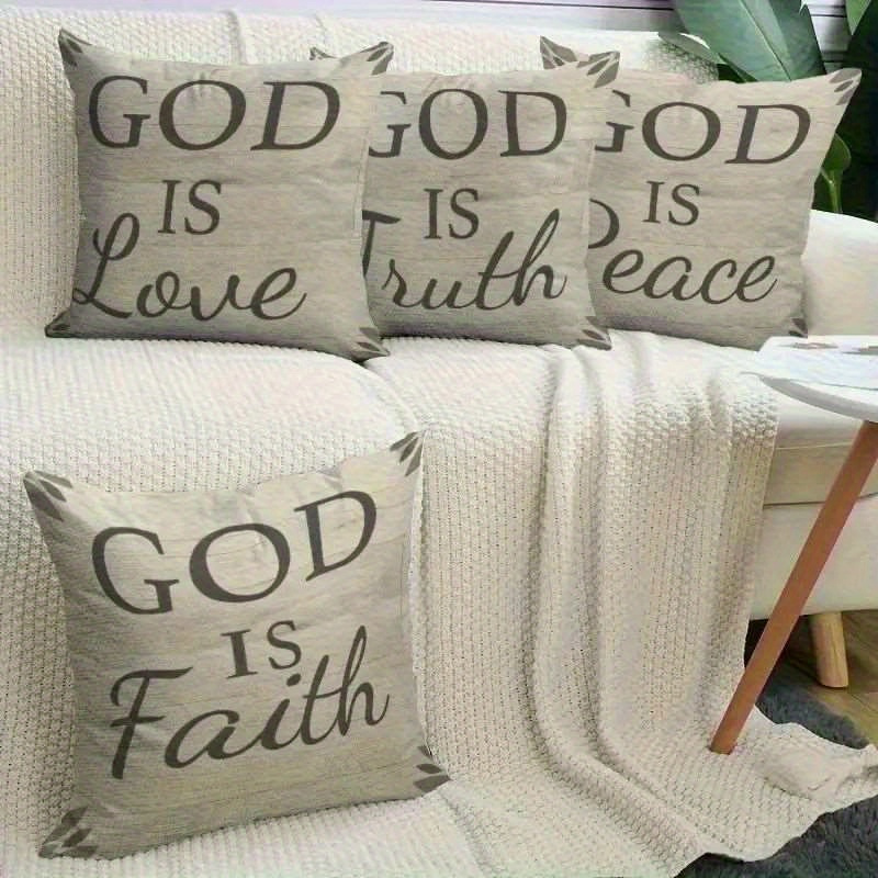 4pcs Set, 2D Flat Printing, GOD IS Series Covers for Love and Faith, Polyester M