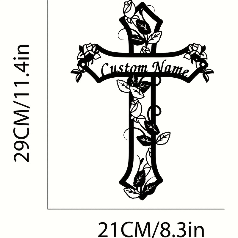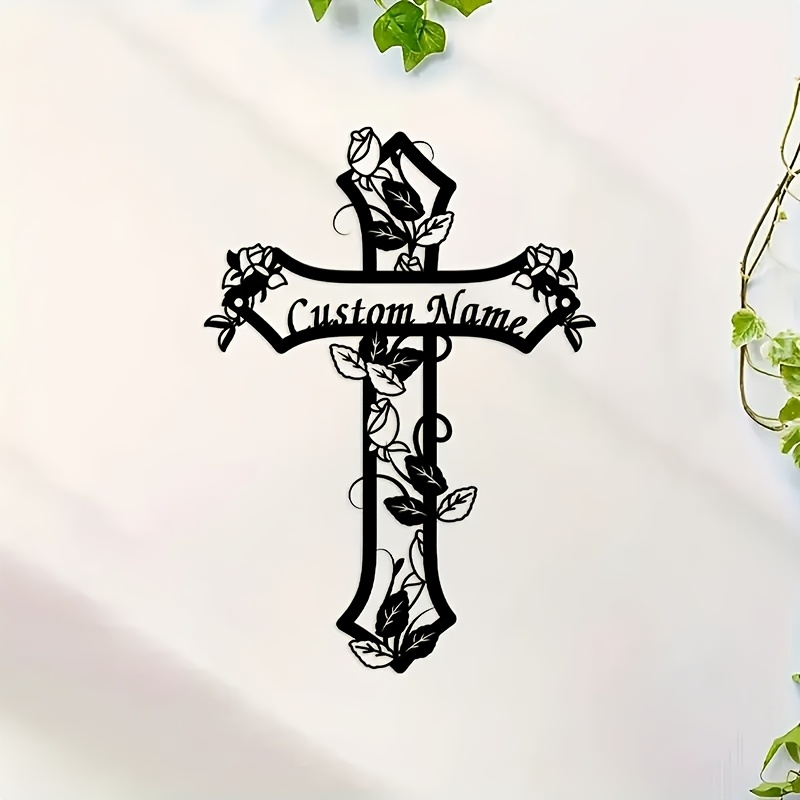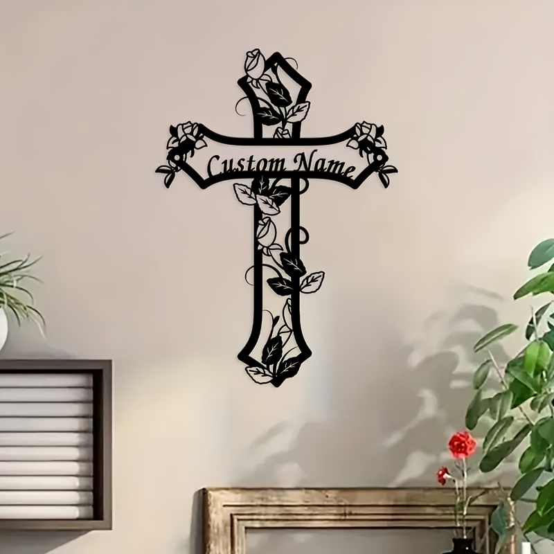 A personalized metal cross wall decor featuring floral designs - a tribute for remembrance, adorned with a rose, suitable for home decor, versatile wall panel, does not require electricity.