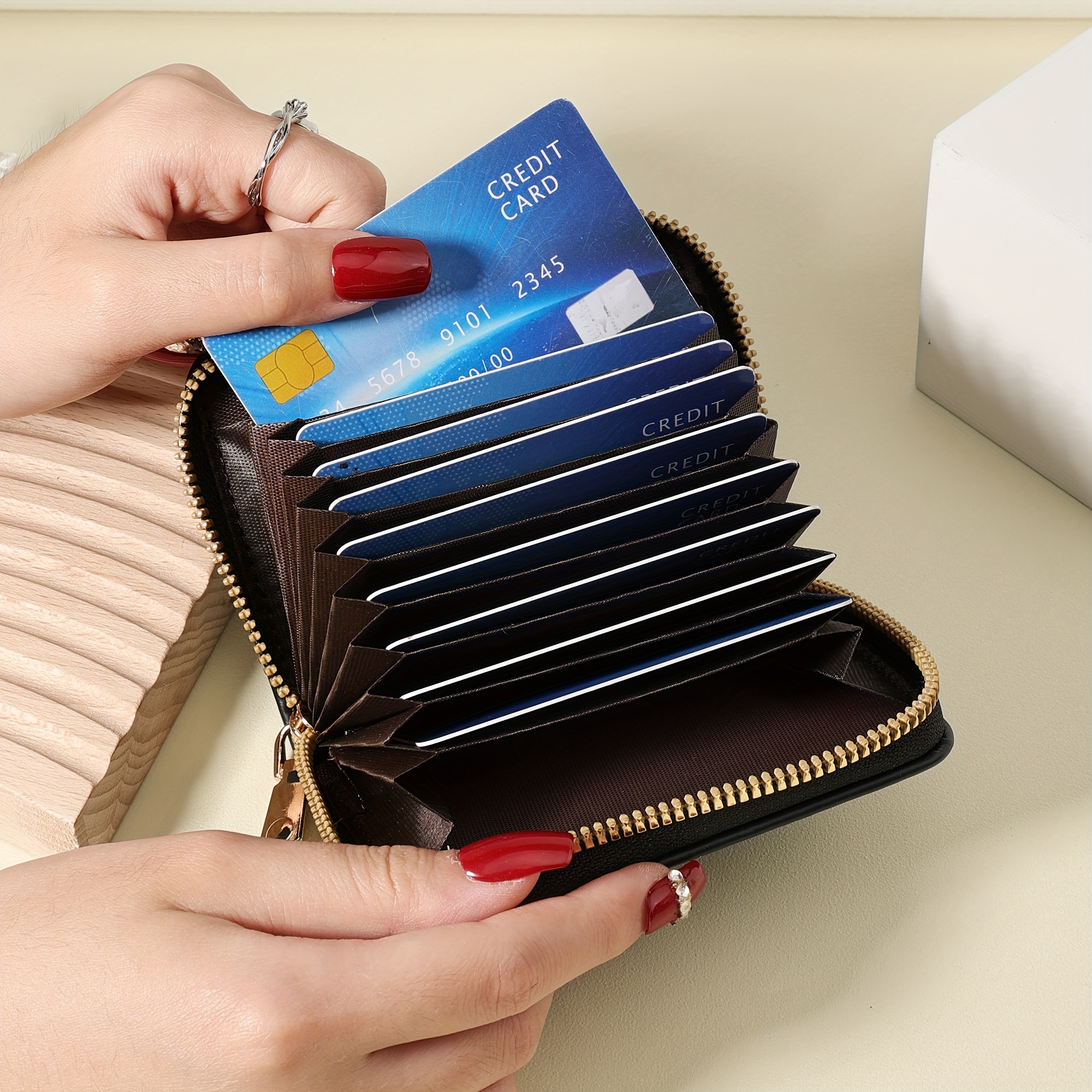 A Minimalist Wallet Featuring a Zipper, Designed for Holding Credit Cards with S