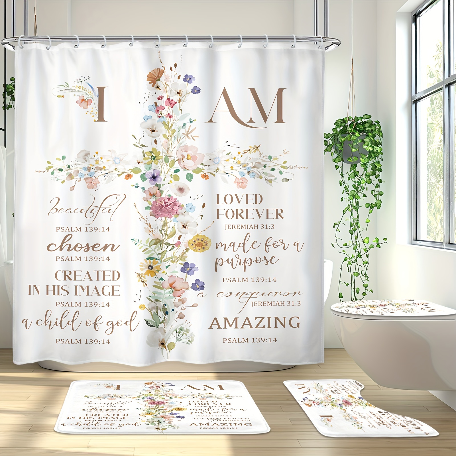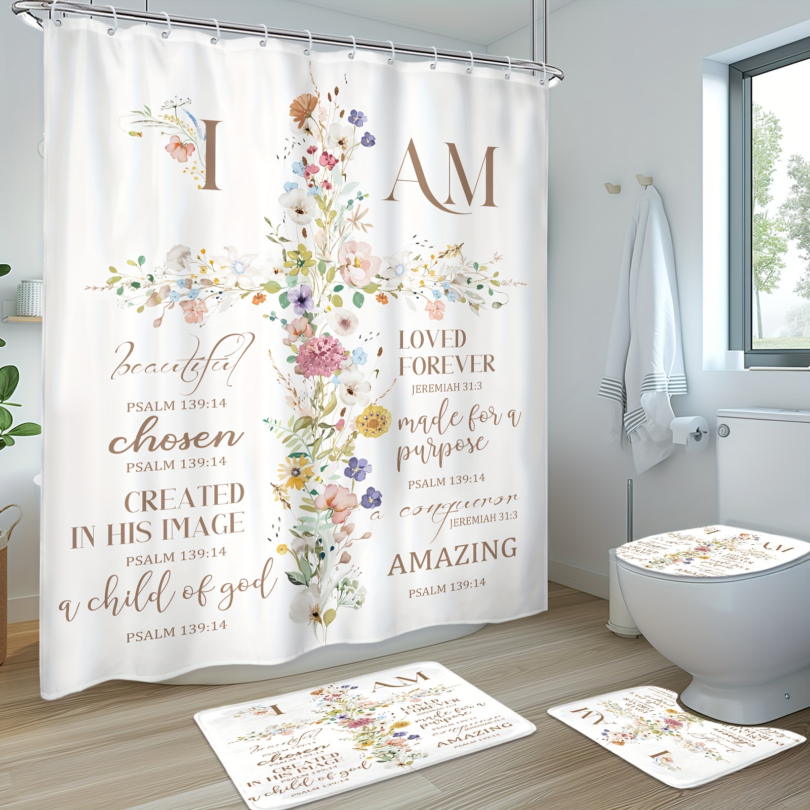 A Set of Inspirational Scripture Shower Curtains, Including a Shower Curtain wit
