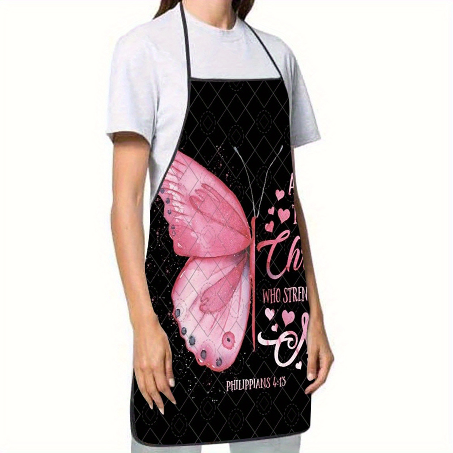 An Inspirational Religious Apron Featuring a Butterfly And Floral Pattern, with