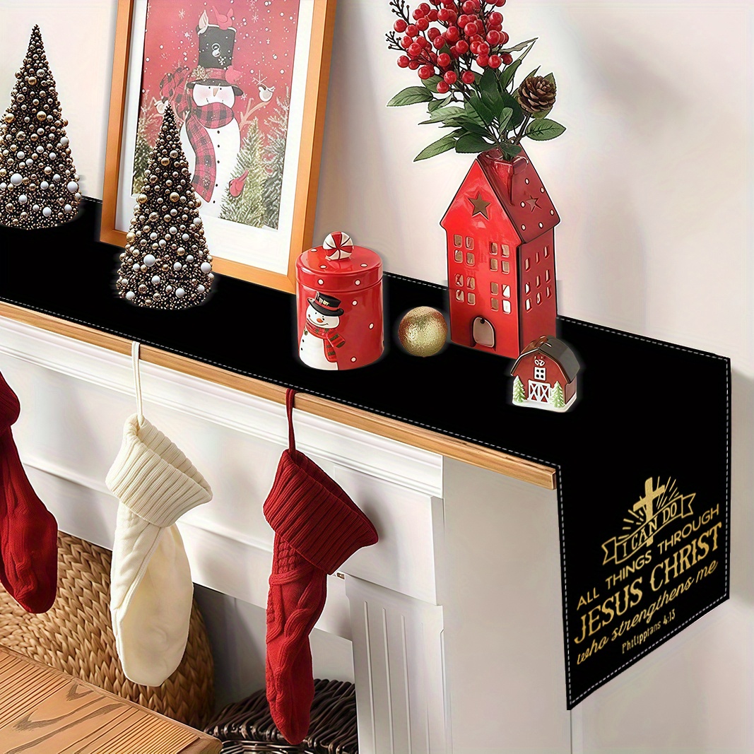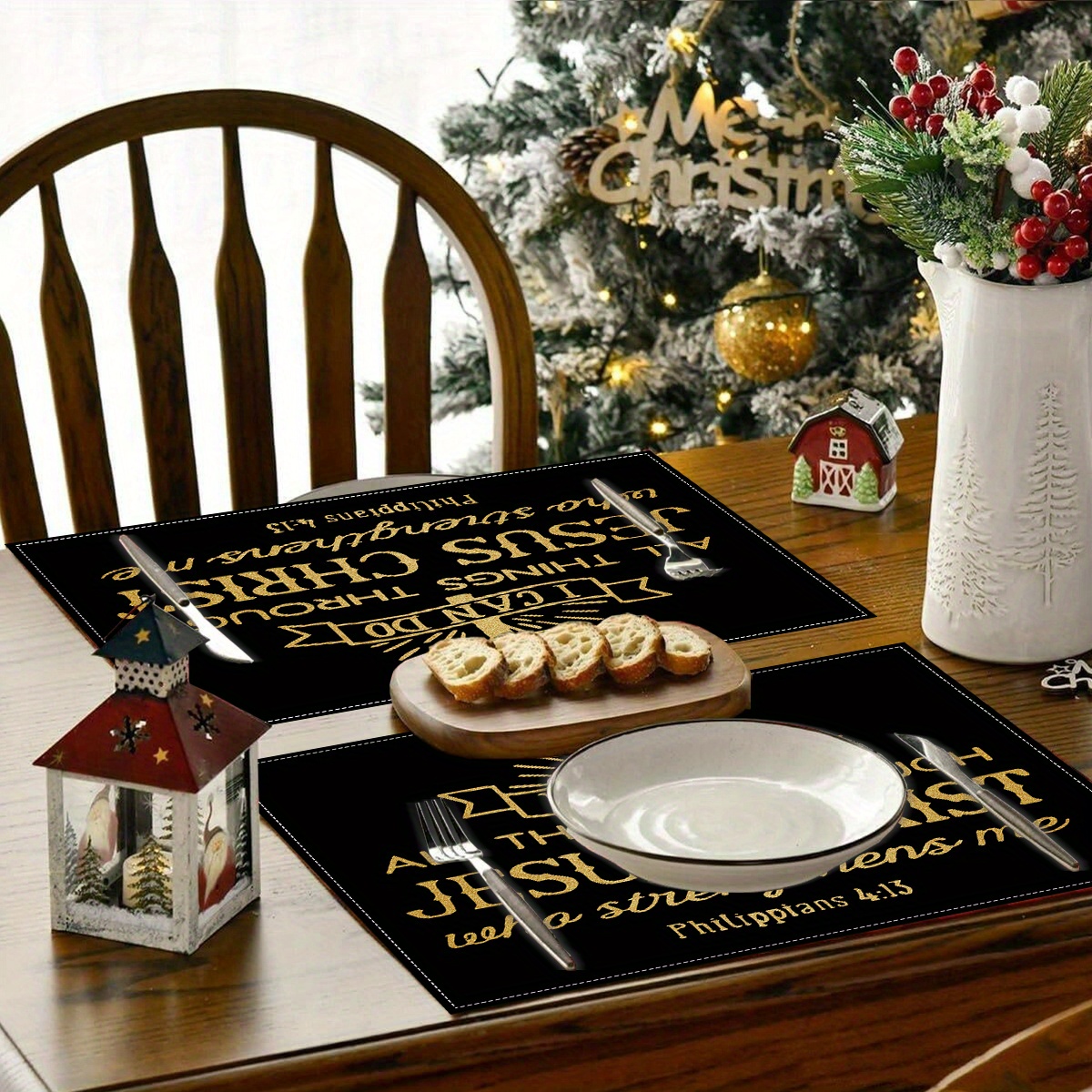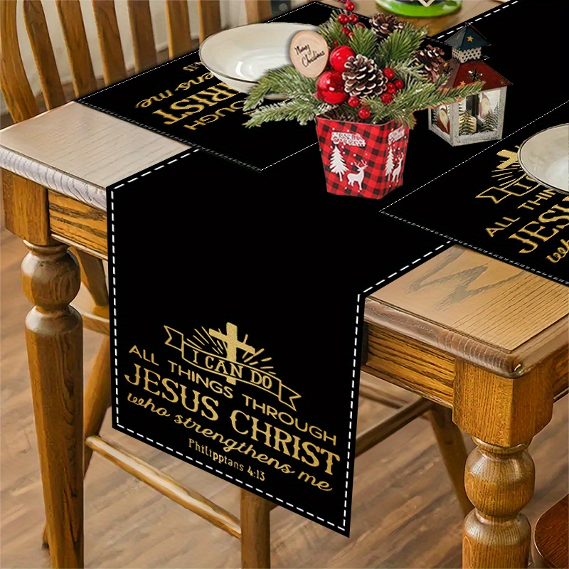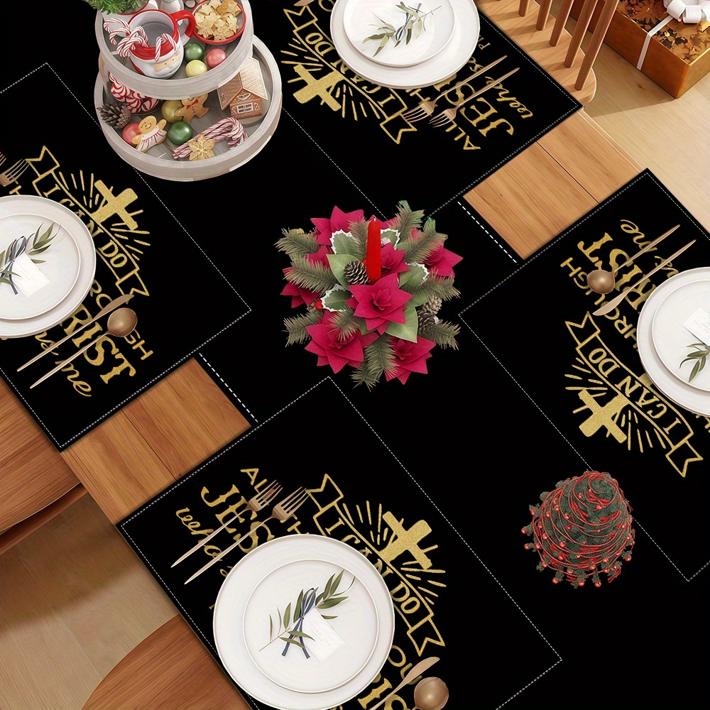 Black Table Runner and Placemats Set of 5/7pcs - Inspirational Christian Theme w