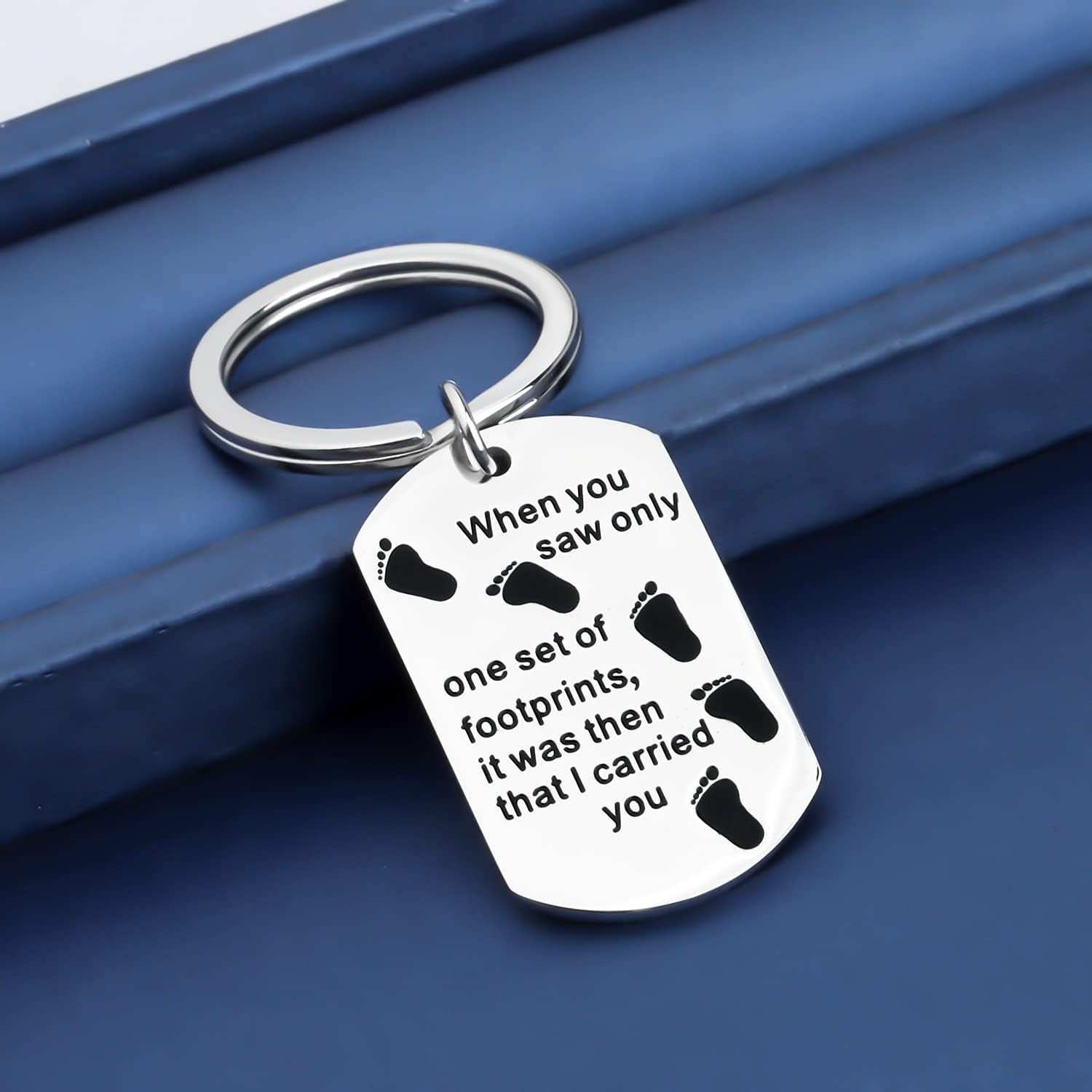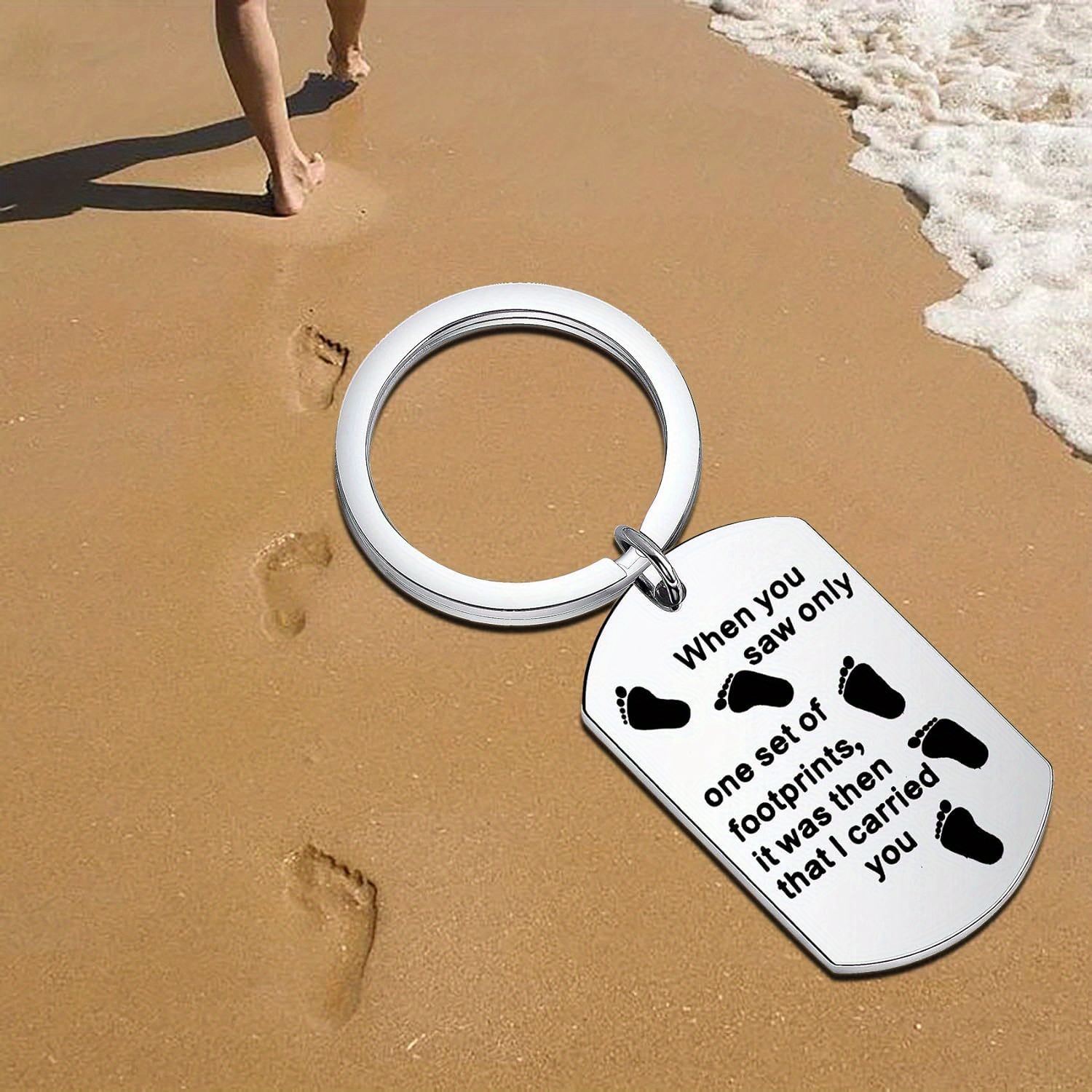 Footprints In The Sand Prayer Cross Keychain For Men, Religious Christian Gift