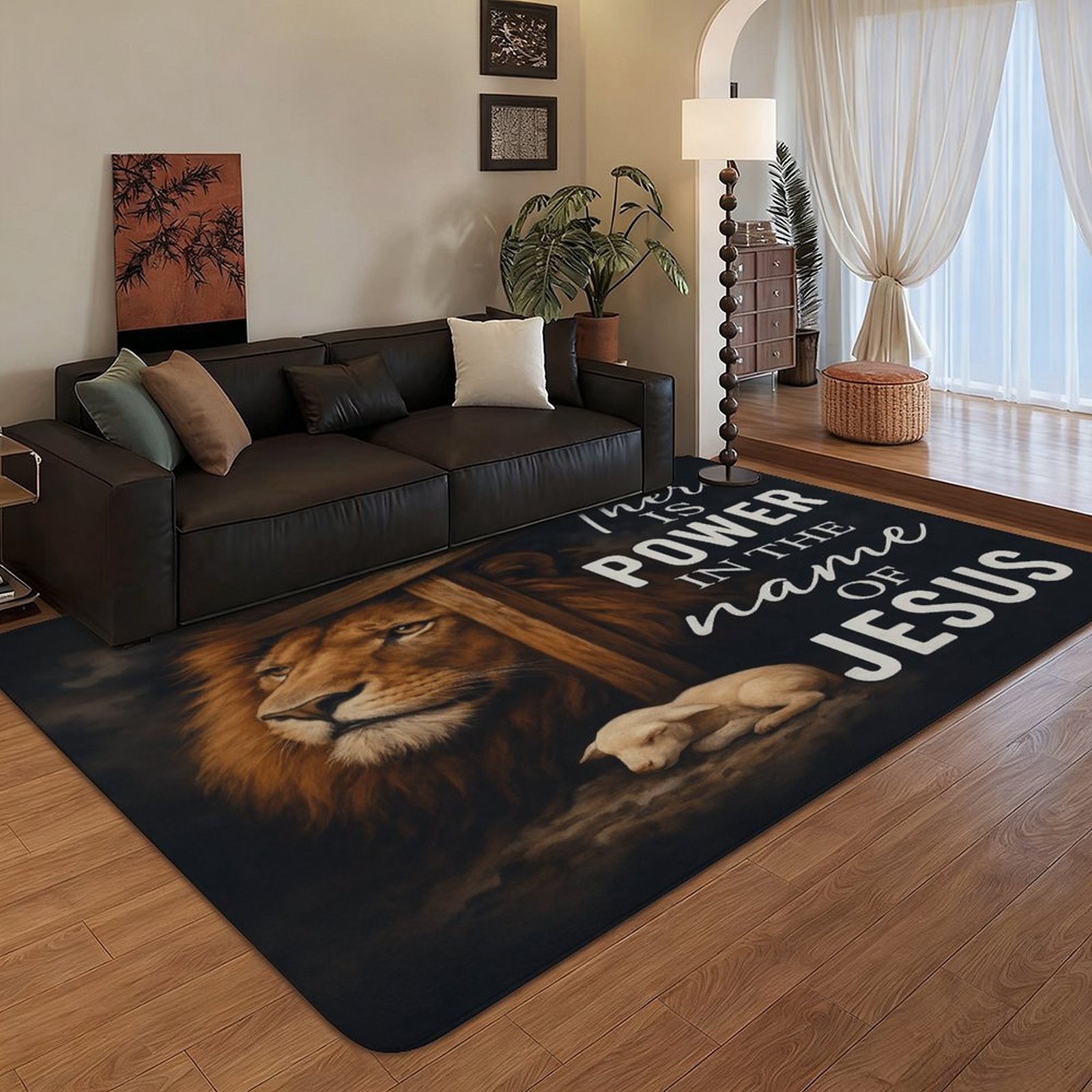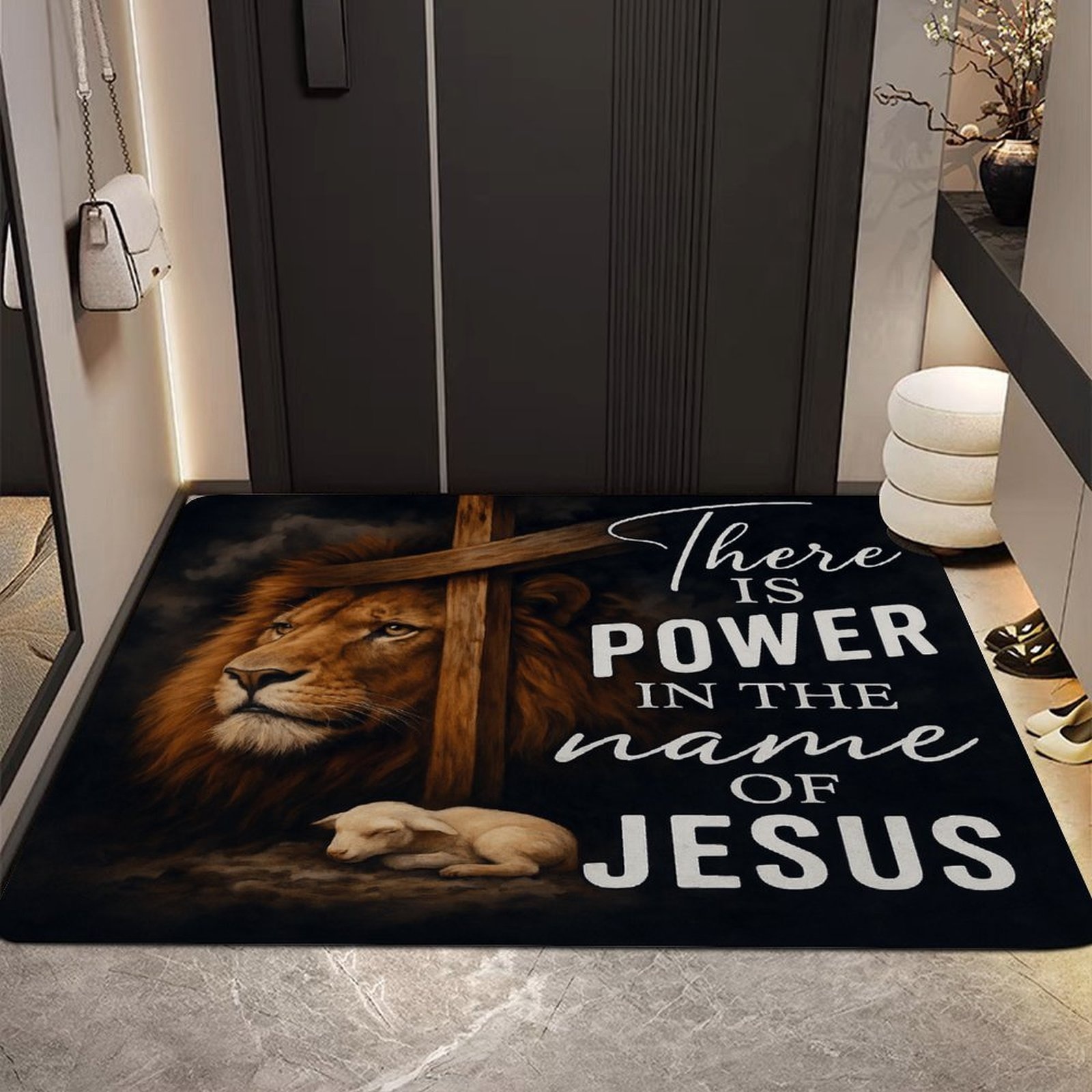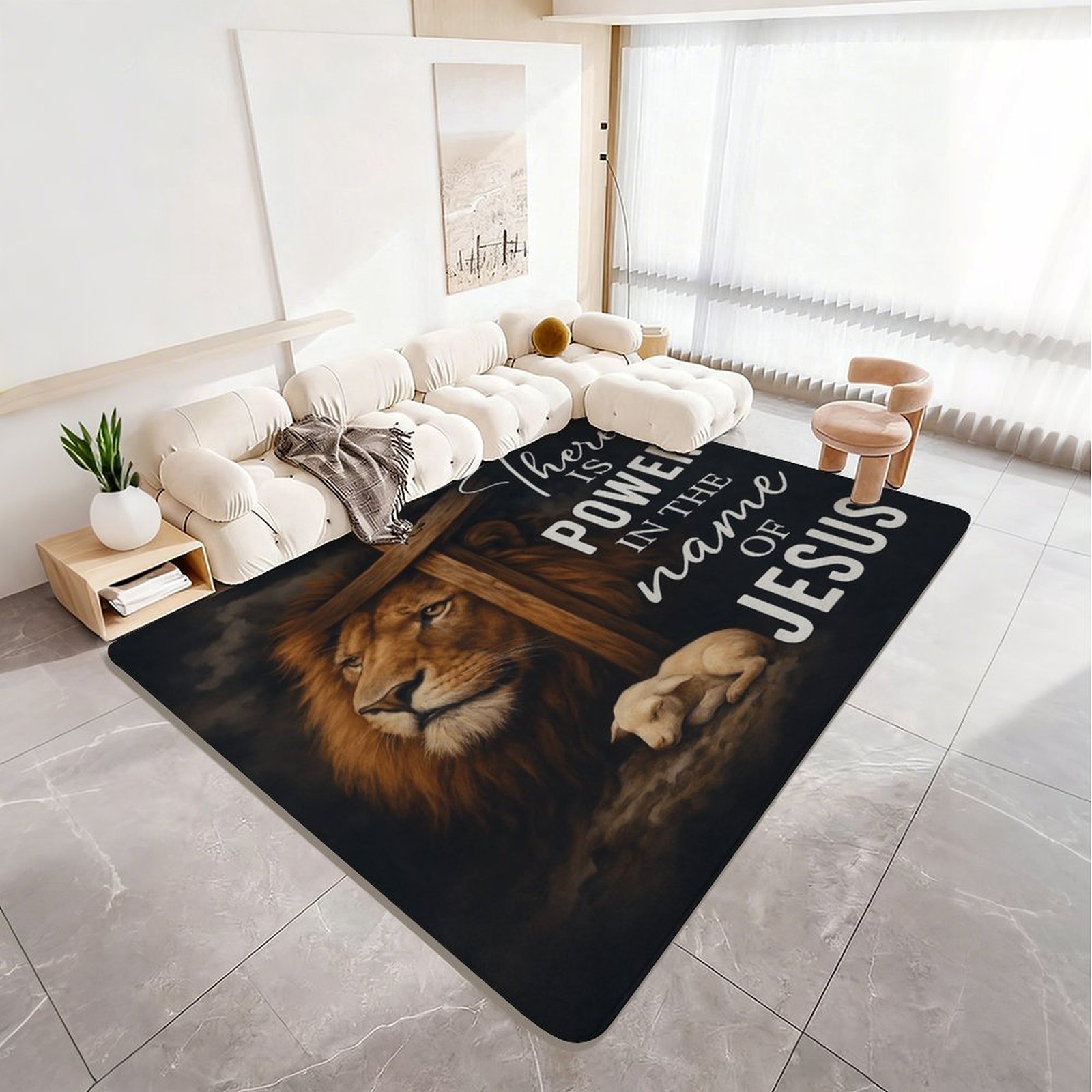 Large Christian Lion & Cross Religious Floor Mat - Non-Slip Area Mat with "There