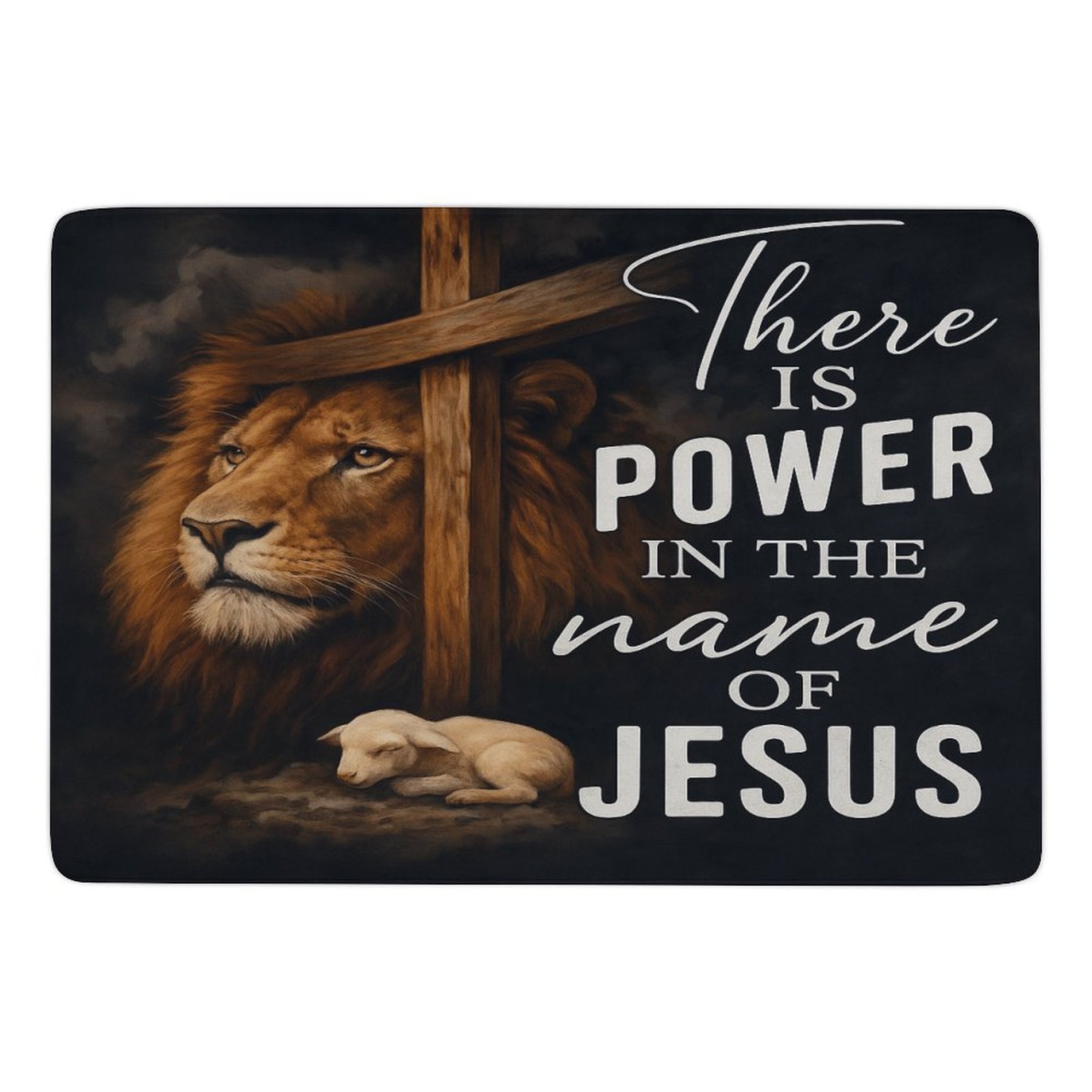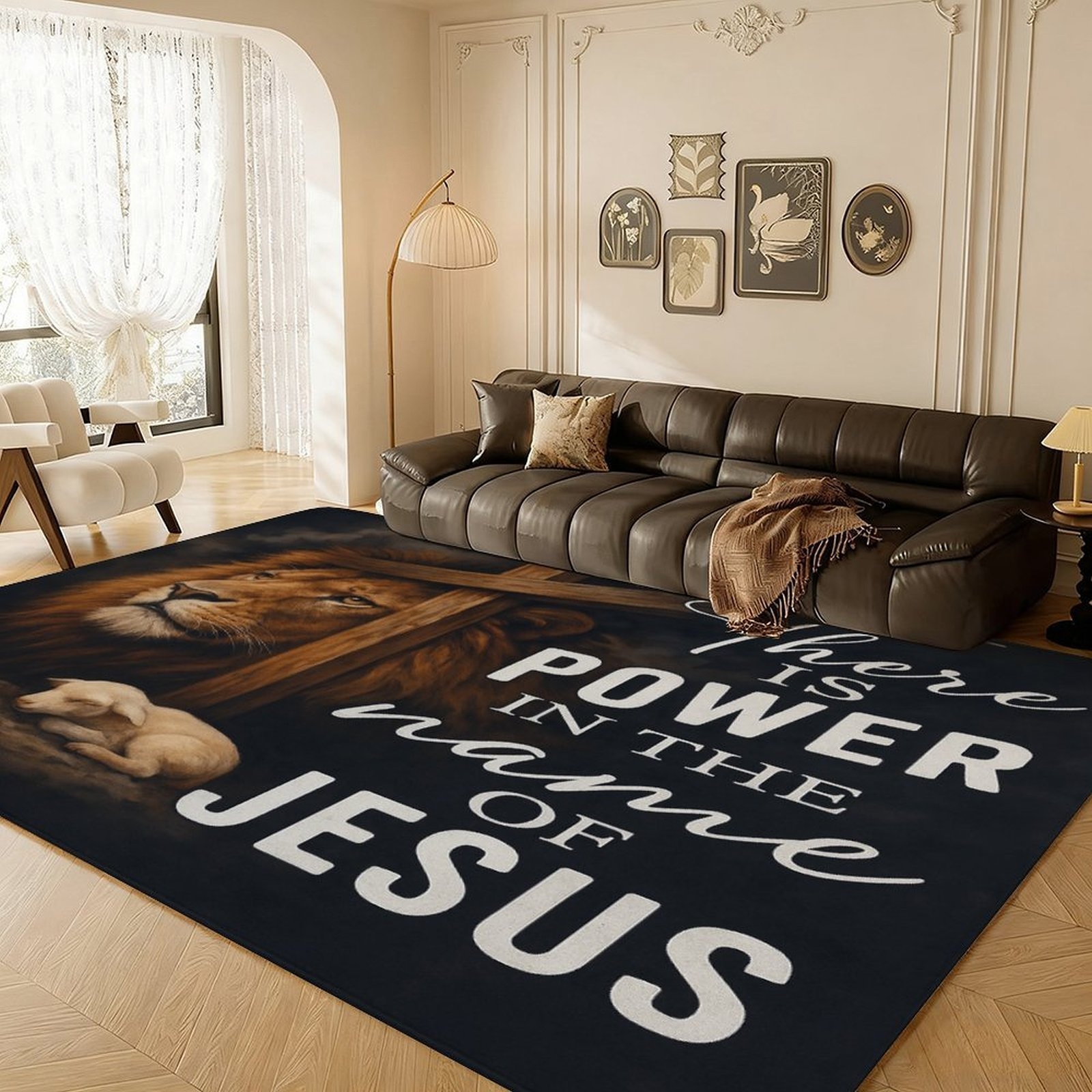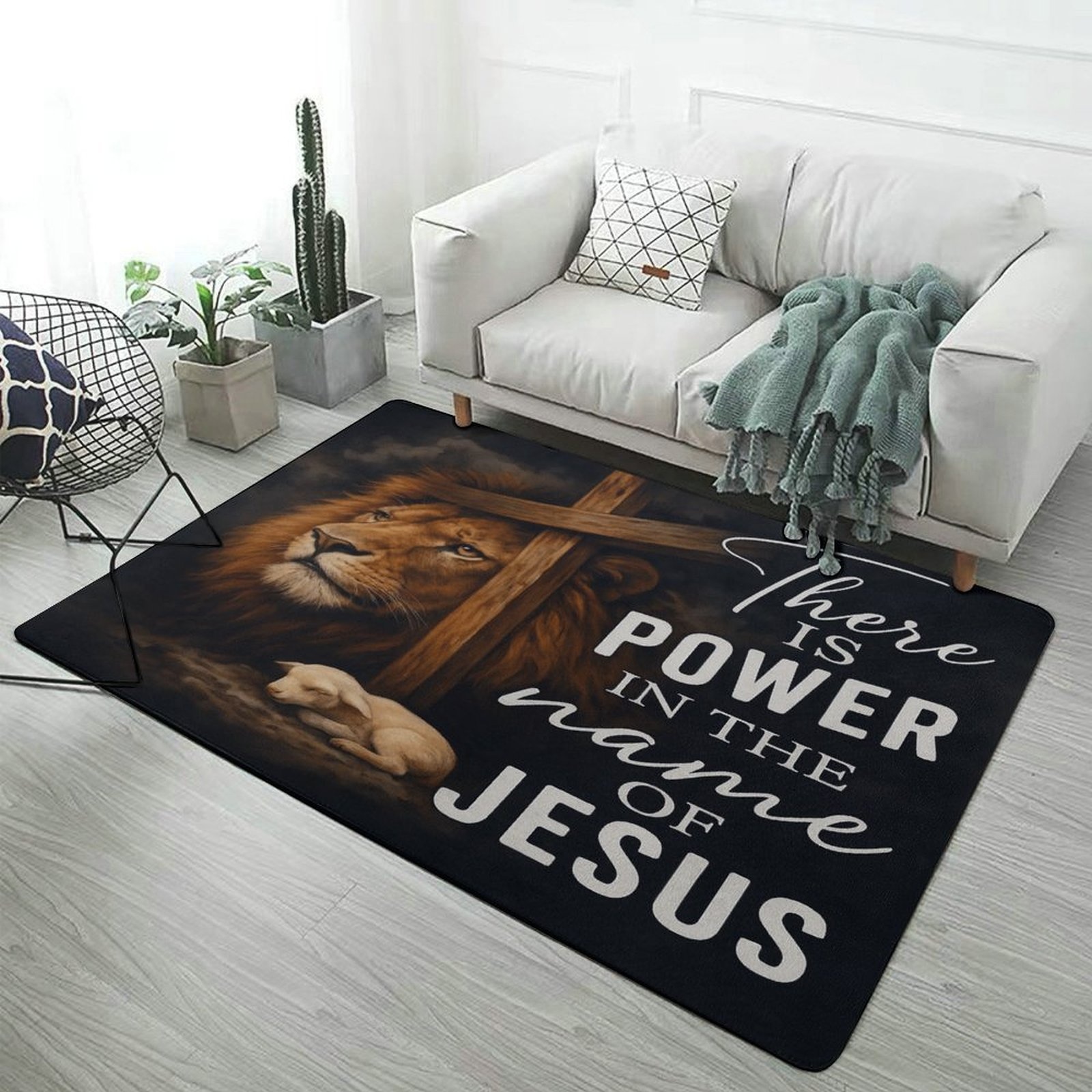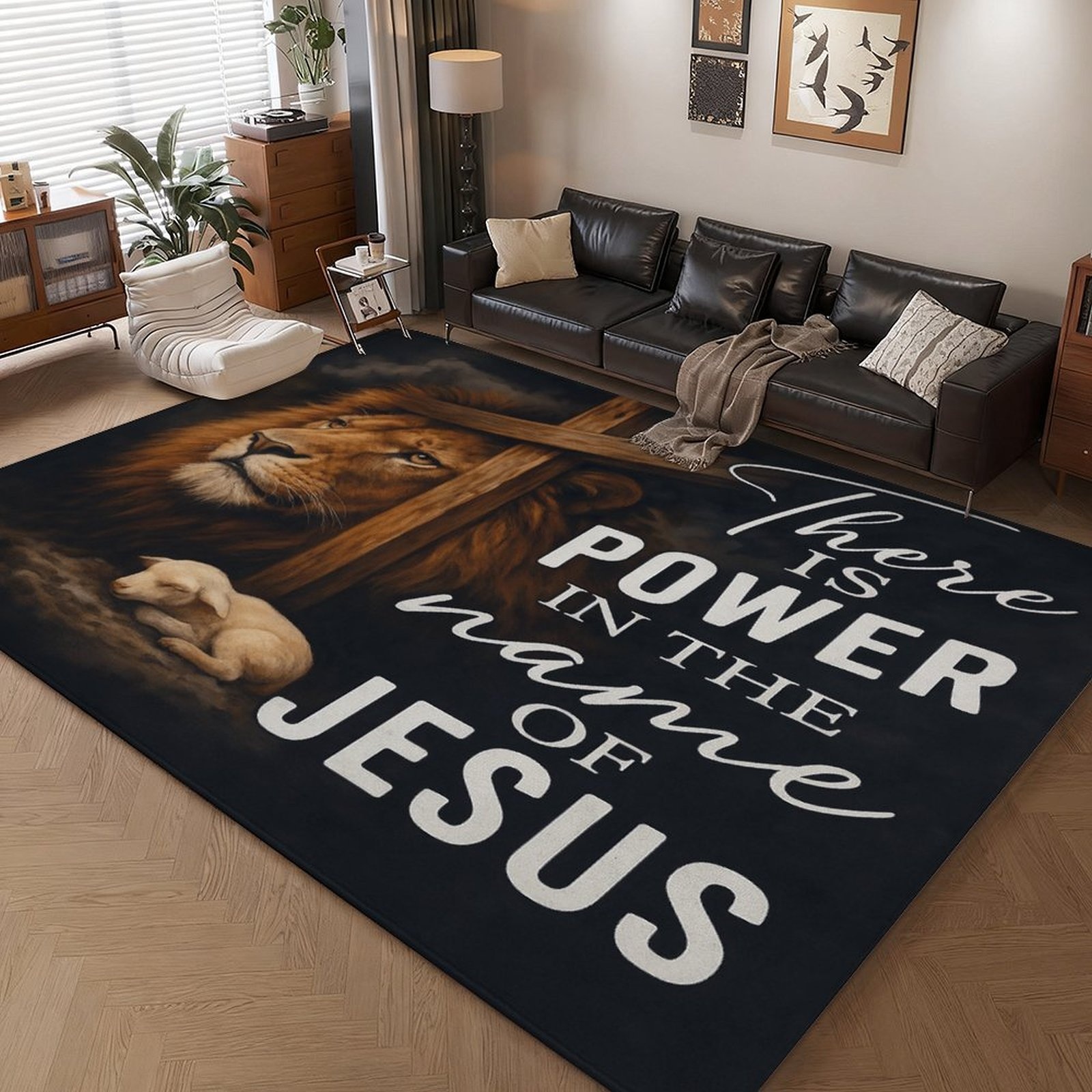 Large Christian Lion & Cross Religious Floor Mat - Non-Slip Area Mat with "There