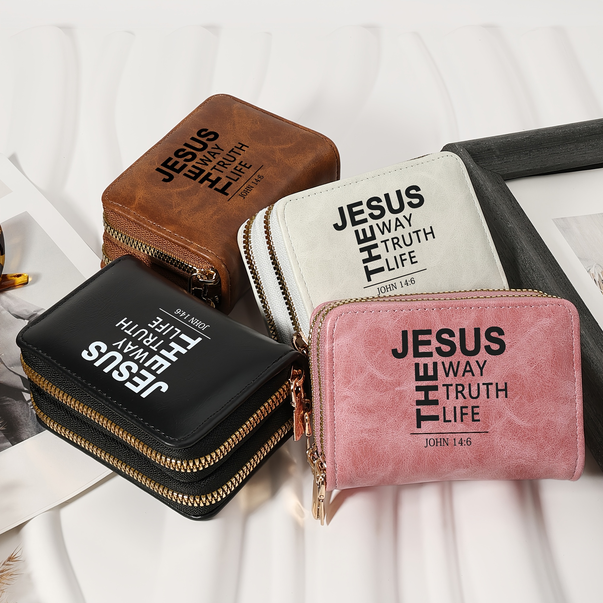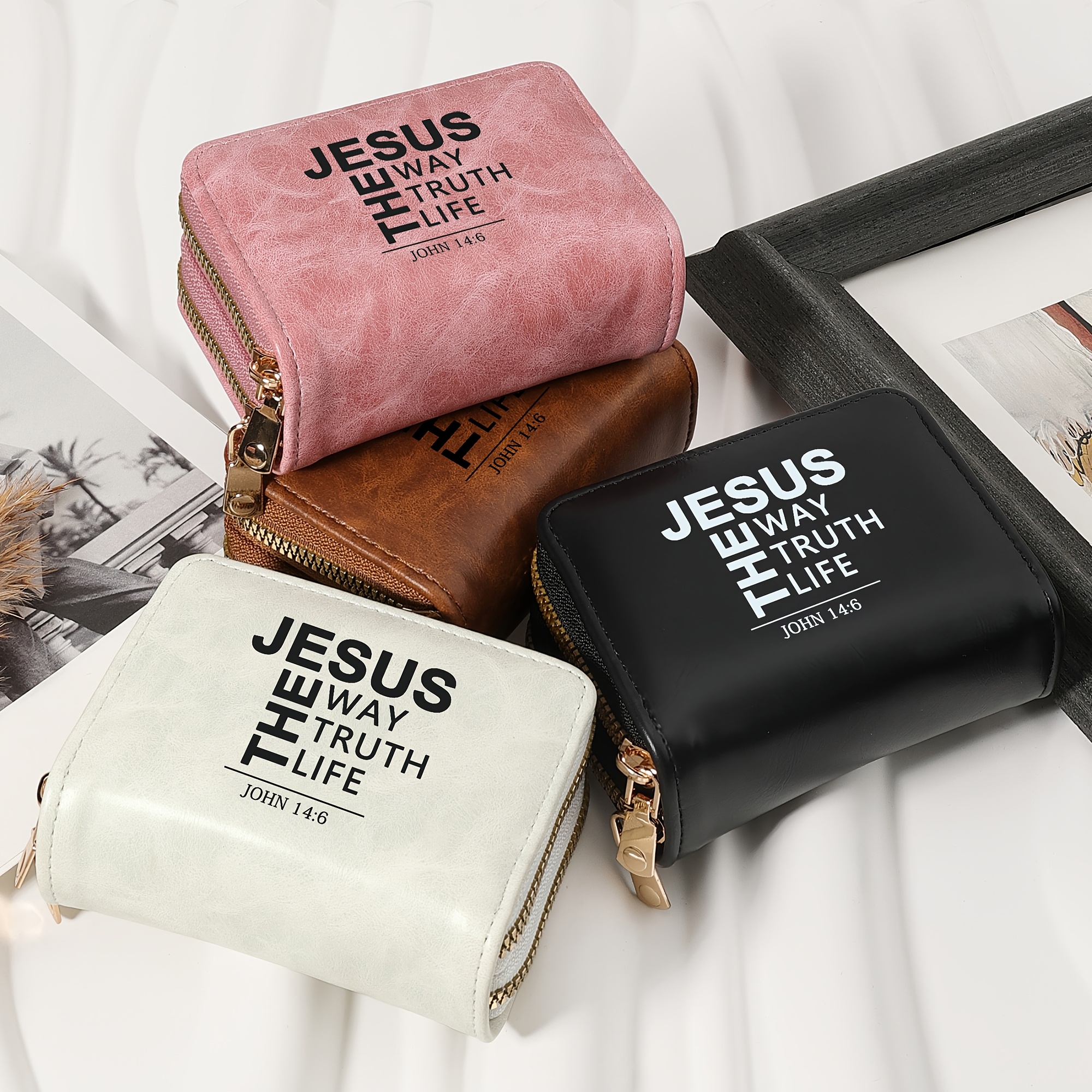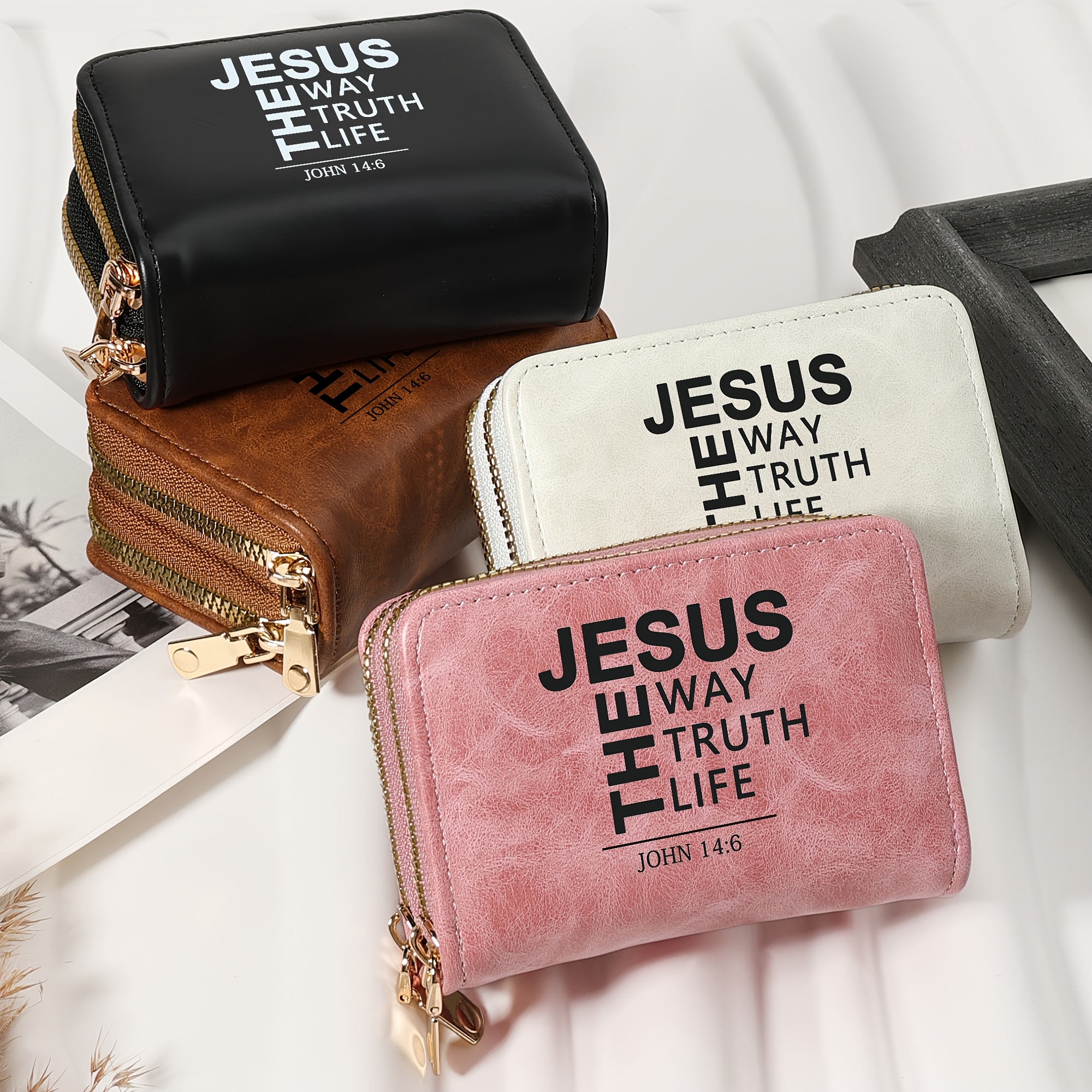 Minimalist Letter Printed Double Zipper Credit Card Clip Bag, Trendy Card Short